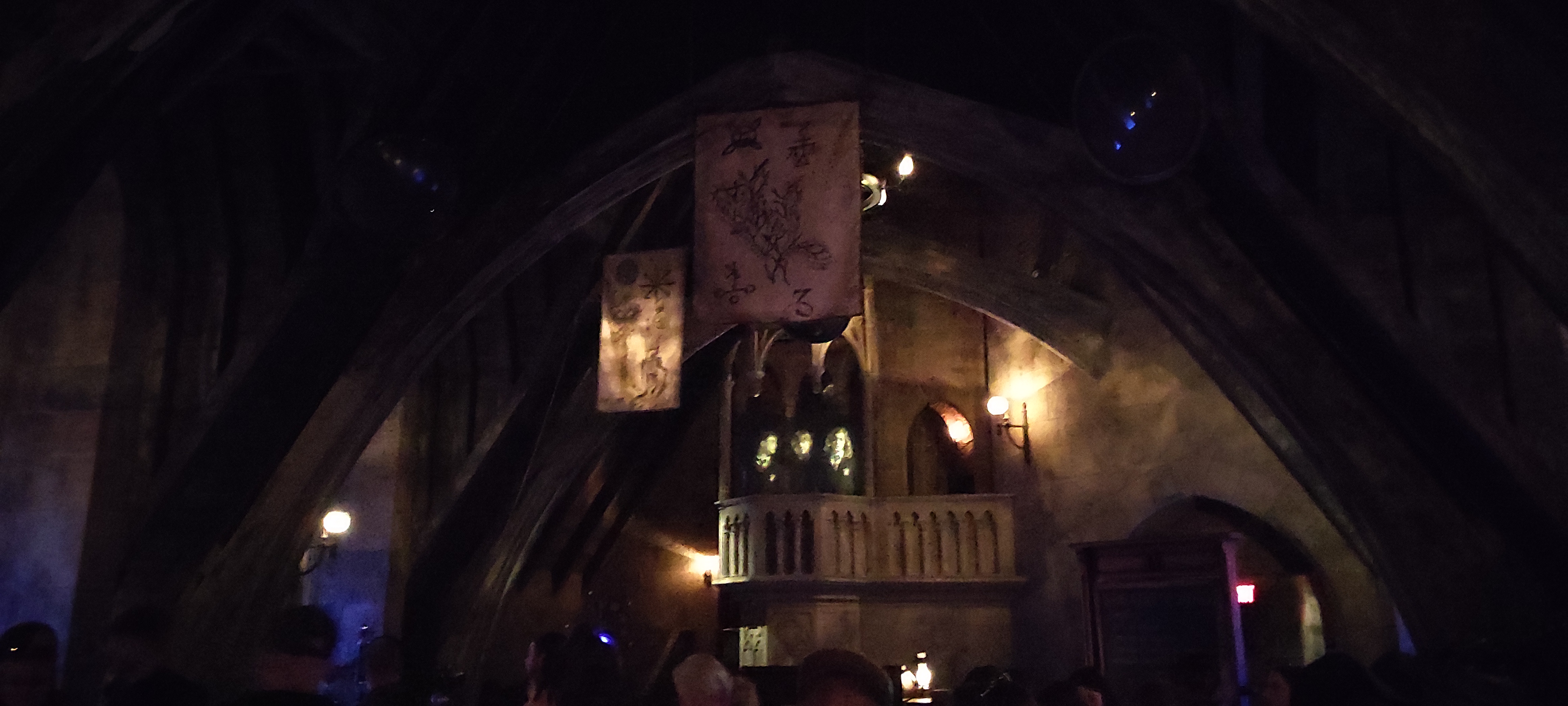 Weiter ging es in den gefühlt endlos langen Innenbereich der Warteschlange, der war jedoch zum Glück klimatisiert und führte durch Teile von Hogwarts und als Höhlen thematisiert Bereiche.