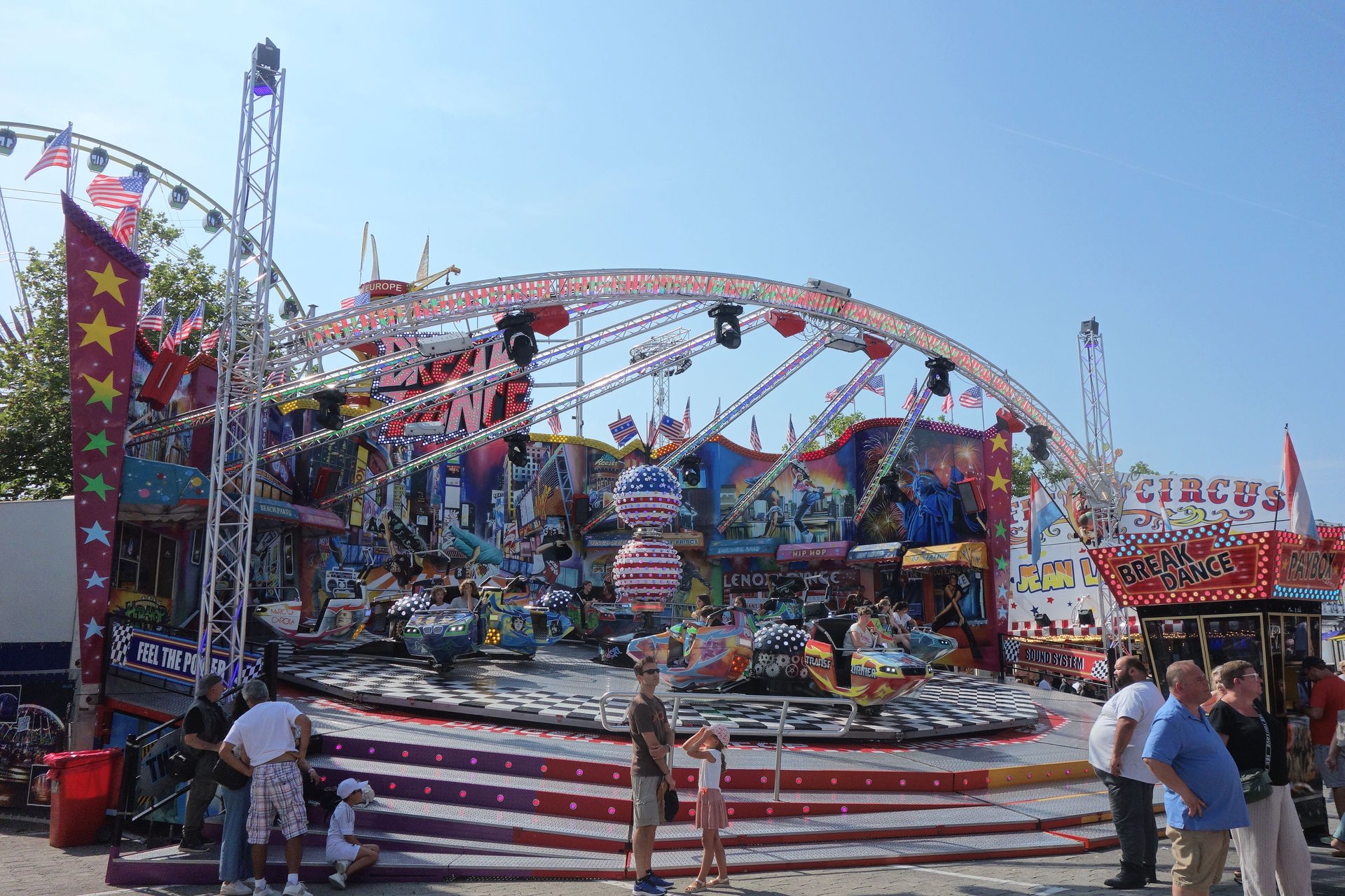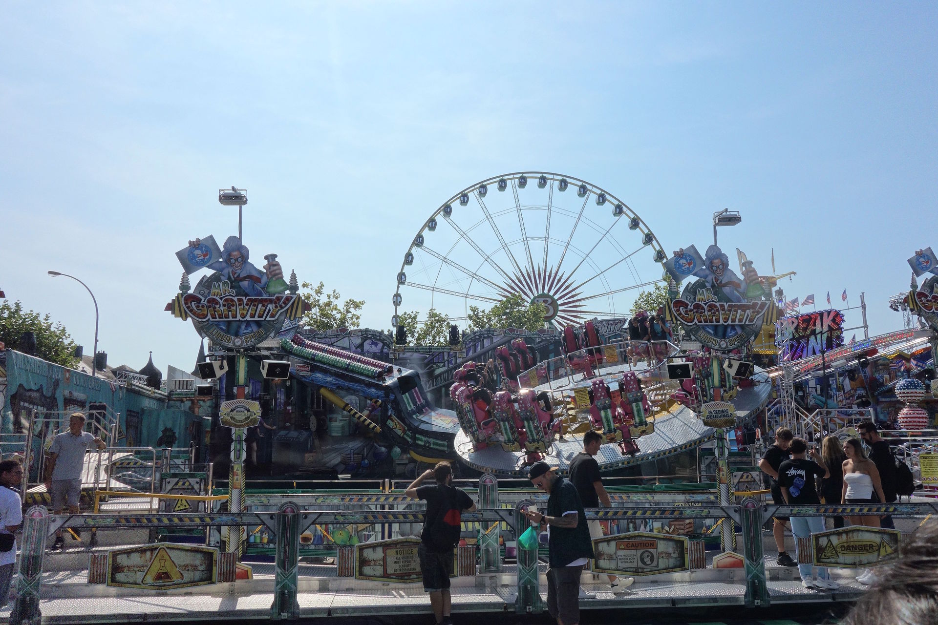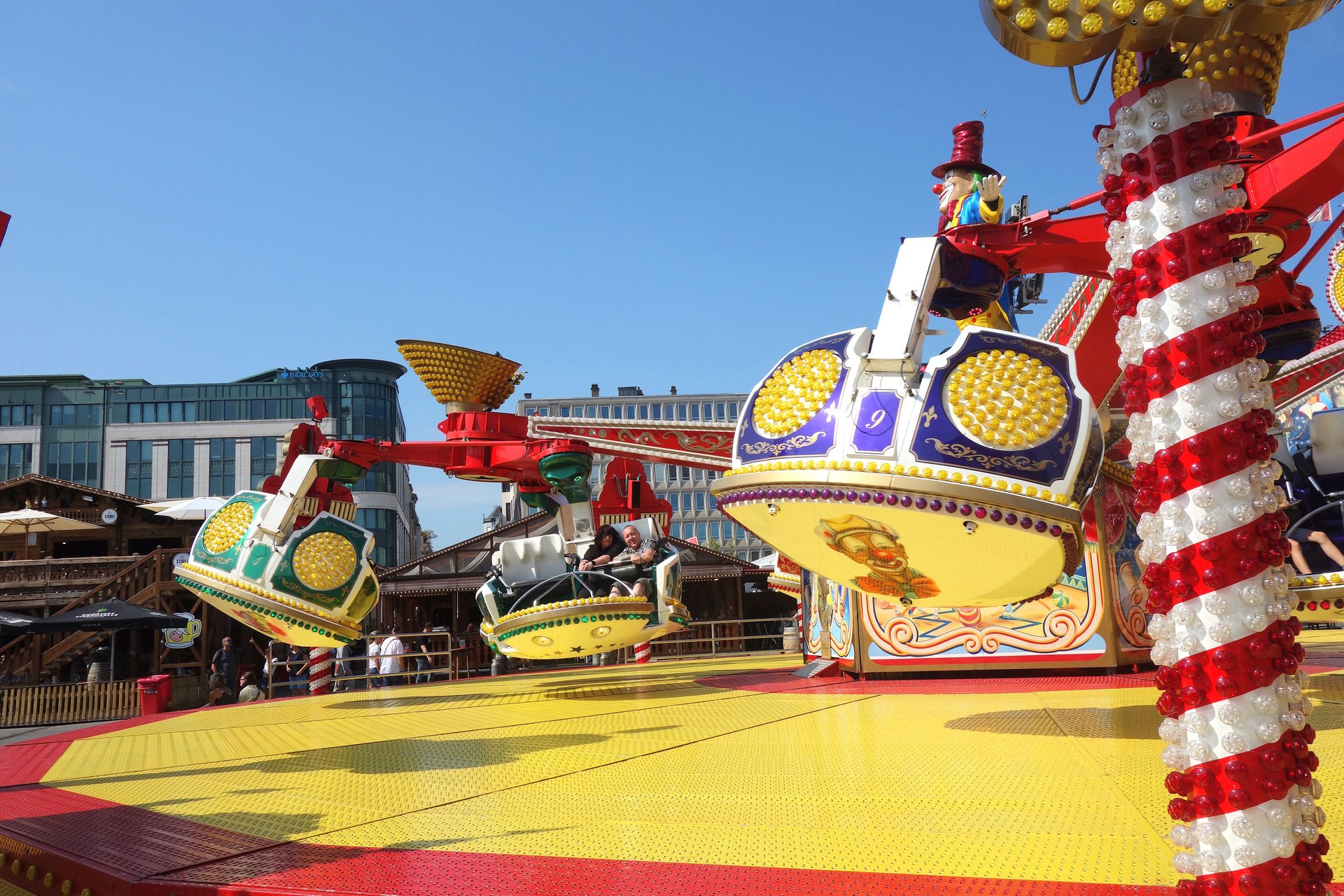 Am südlichen Ende des Platzes dominierte das nicht abgebildete Riesenrad die Szenerie, umgeben von einigen Karussells.