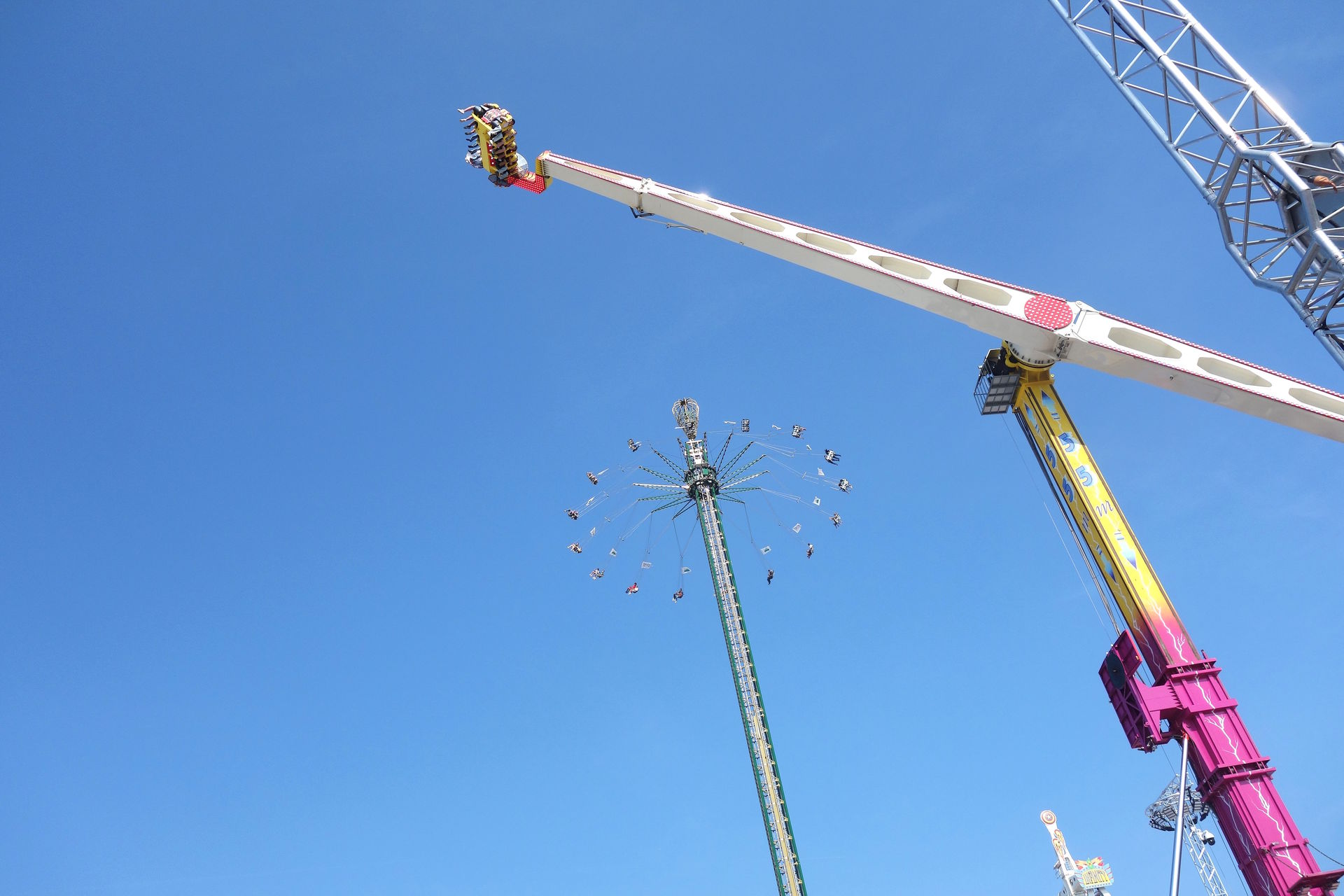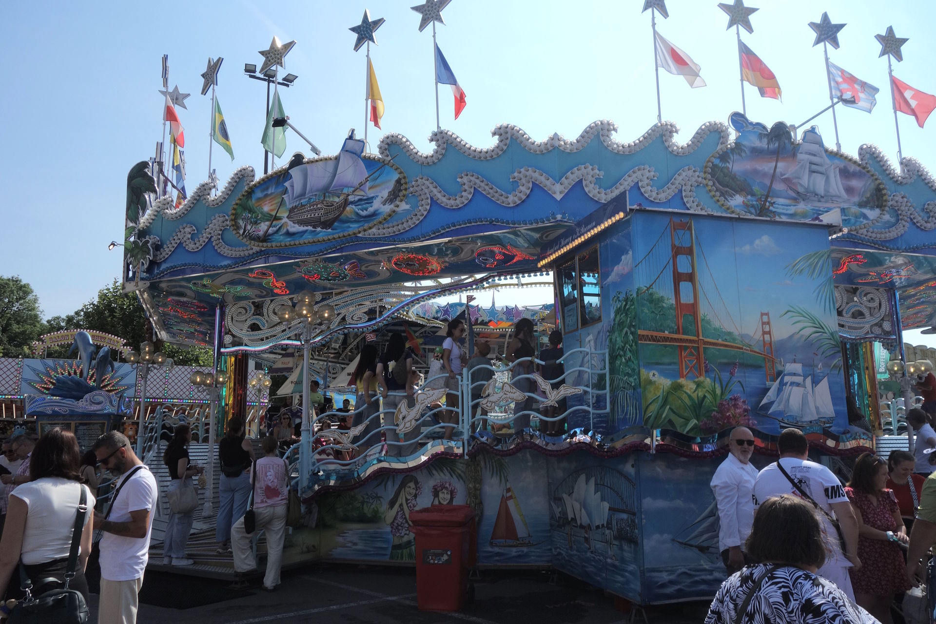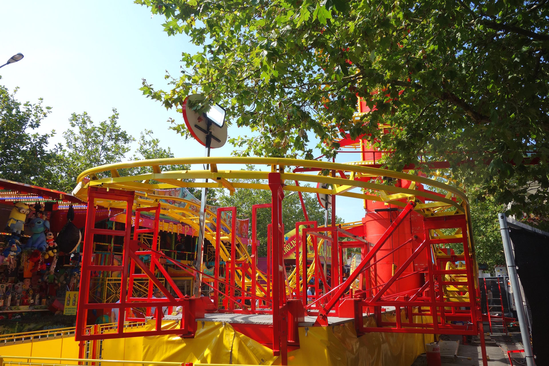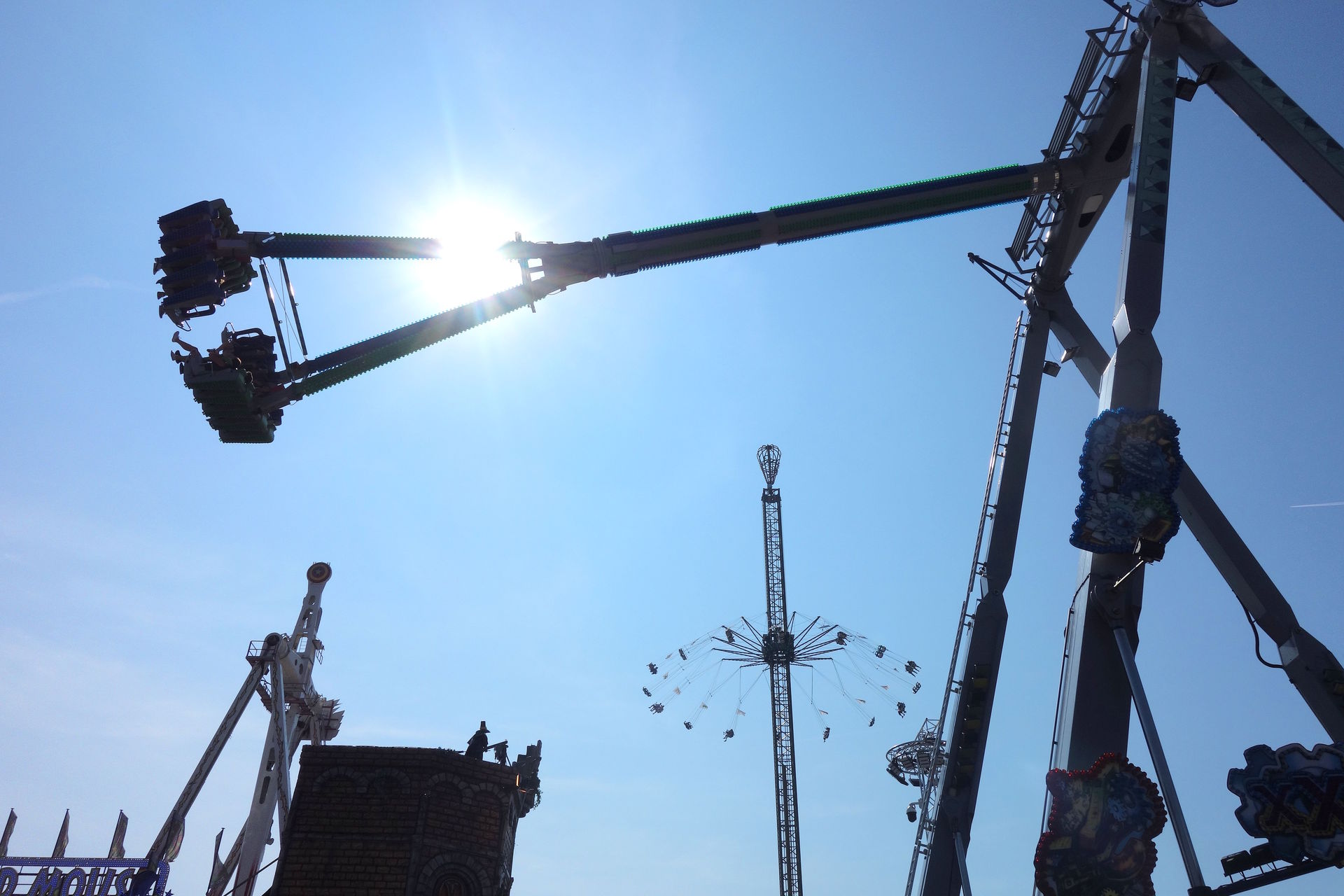 Am südlichen Ende des Platzes dominierte das nicht abgebildete Riesenrad die Szenerie, umgeben von einigen Karussells.