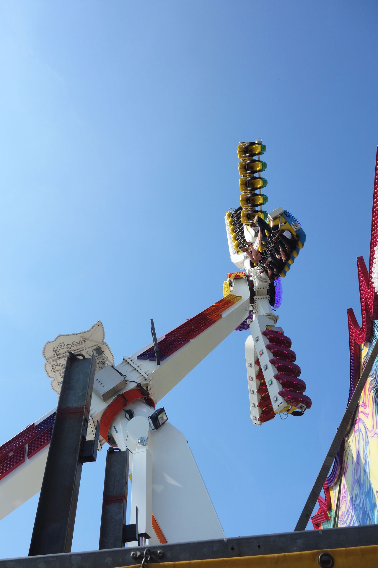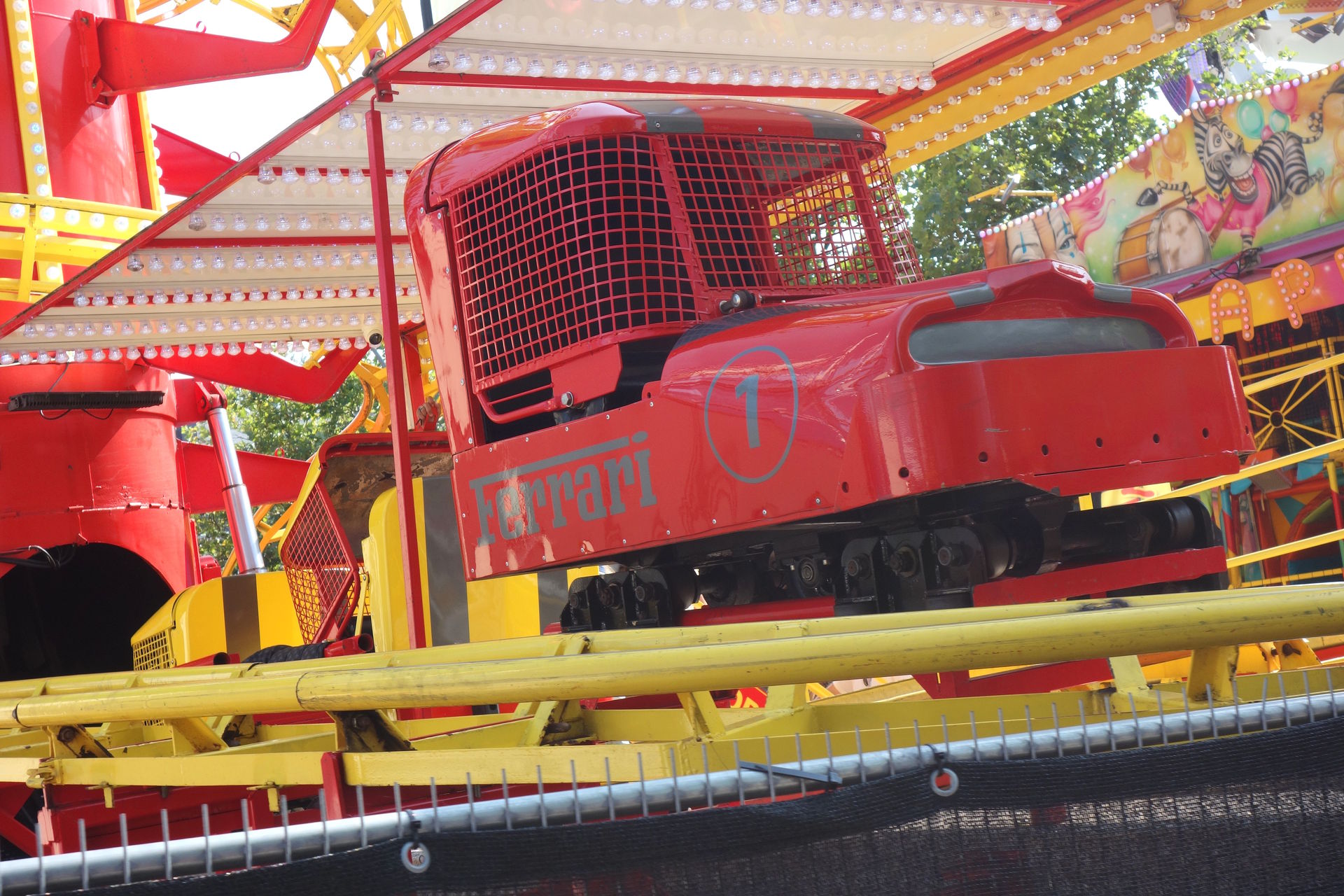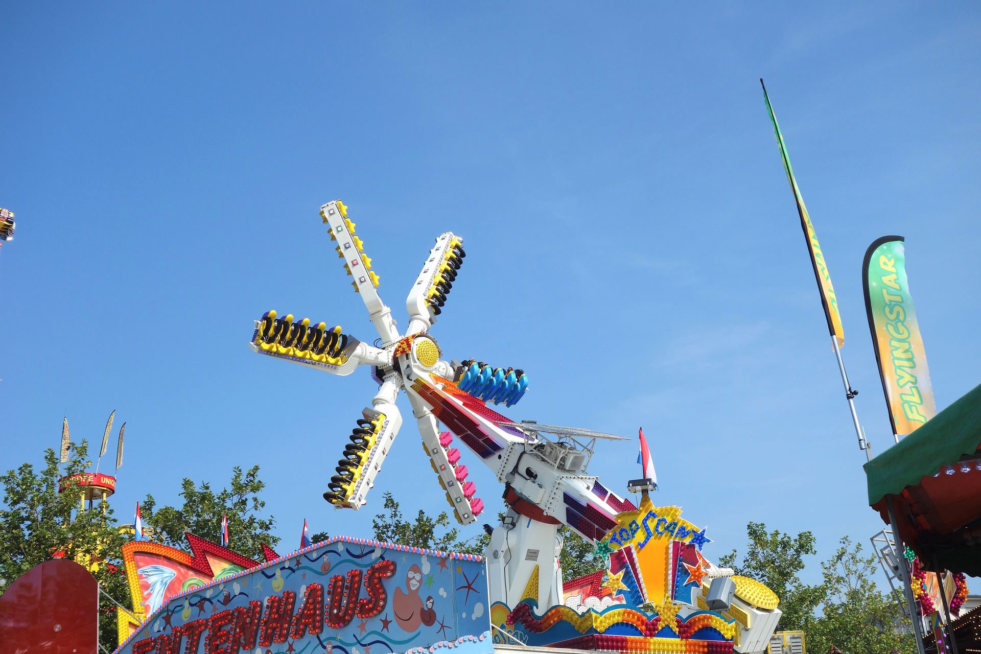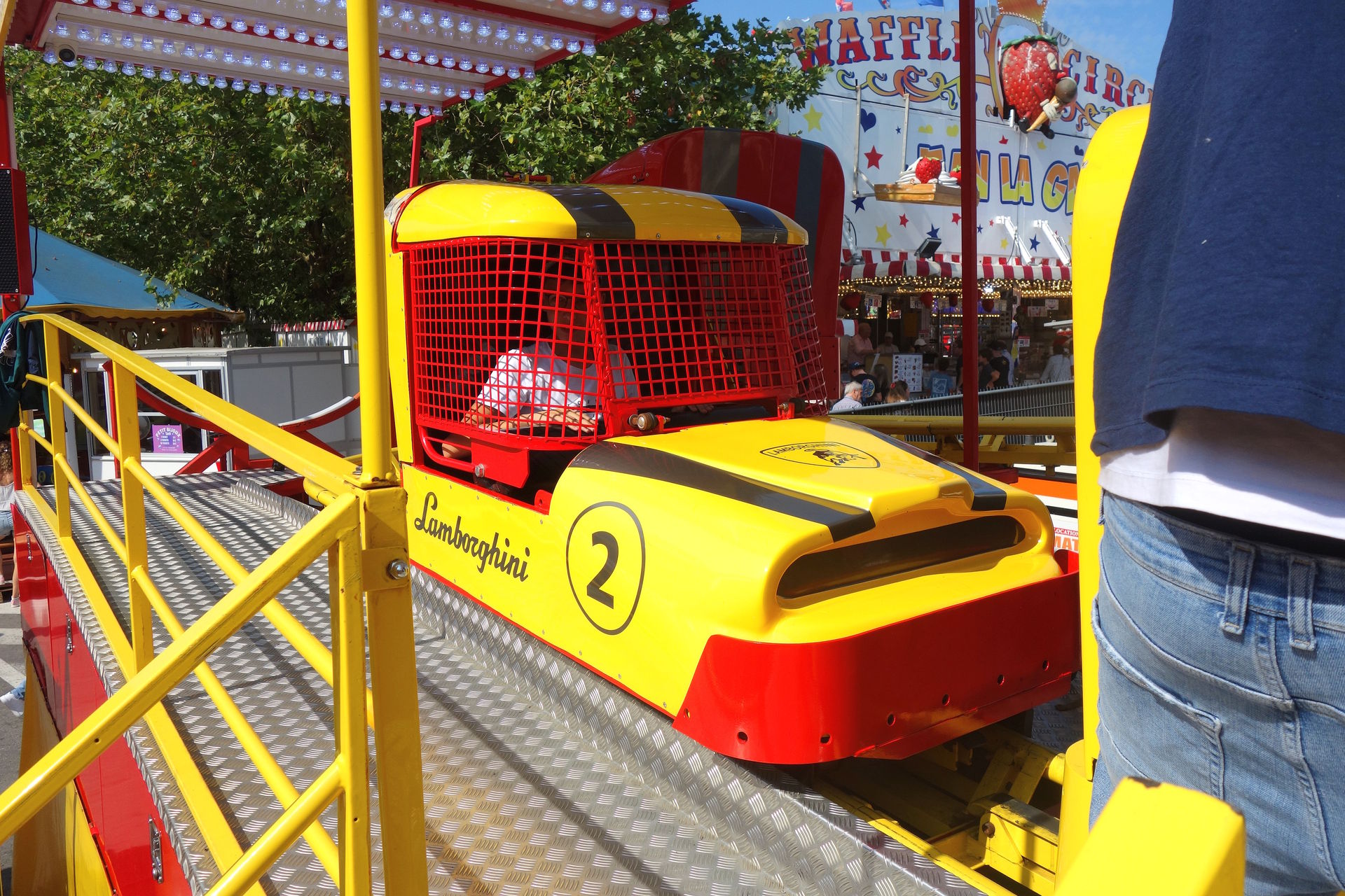 Beziehungsweise dem ersten, denn während jener in Metz erst 2023 importiert wurde, reist dieser hier bereits seit 2007 unter französischer Flagge (auch wenn eine Quelle ihn schon ab 1981 unter Chauvet listet, aber alle anderen sind sich einig, dass diese Anlage bis 2006 in den USA unterwegs war). Lespinasse brachte die Bahn nach Frankreich und ließ sie für den Einsatz auf den hiesigen Kirmesplätzen generalüberholen. Dazu gehörte auch die Werbeaufschrift "Unique en Europe" (also Einzigartig in an der Spitze des Turms, die auch heute noch dort prankt - neben den diversen Fahnen, die gleiches behaupten. Selbst wenn man die Aussage auf Festland-Europa beschränkt (der Toboggan in Großbritannien reist schließlich schon seit Anfang der 90er), ist sie seit Ankunft des zweiten Toboggans in Frankreich überholt. 2018 übernahm Landgraf die Bahn, hatte damit aber wenig Glück. Im Oktober 2019 verunglückte das Gespann auf der A29 westlich von Saint-Quentin. Zugmaschine samt Kassenhäuschen fanden sich im Graben wieder, der Stationsanhänger mitsamt Liftturm lag auf der Seite und die übrigen Achterbahnschienen wurden quer über die Autobahn verteilt. Wer das Bild des verunglückten Transports gesehen hat, war sich eigentlich recht sicher, dass dies das Ende der kuriosen Achterbahn sei. Aber Chance hat wohl eine sehr robuste Achterbahn gebaut, denn vier Monate später stand der Toboggan schon wieder auf einem Kirmesplatz, ehe er an den Schausteller Pfausser verkauft wurde.