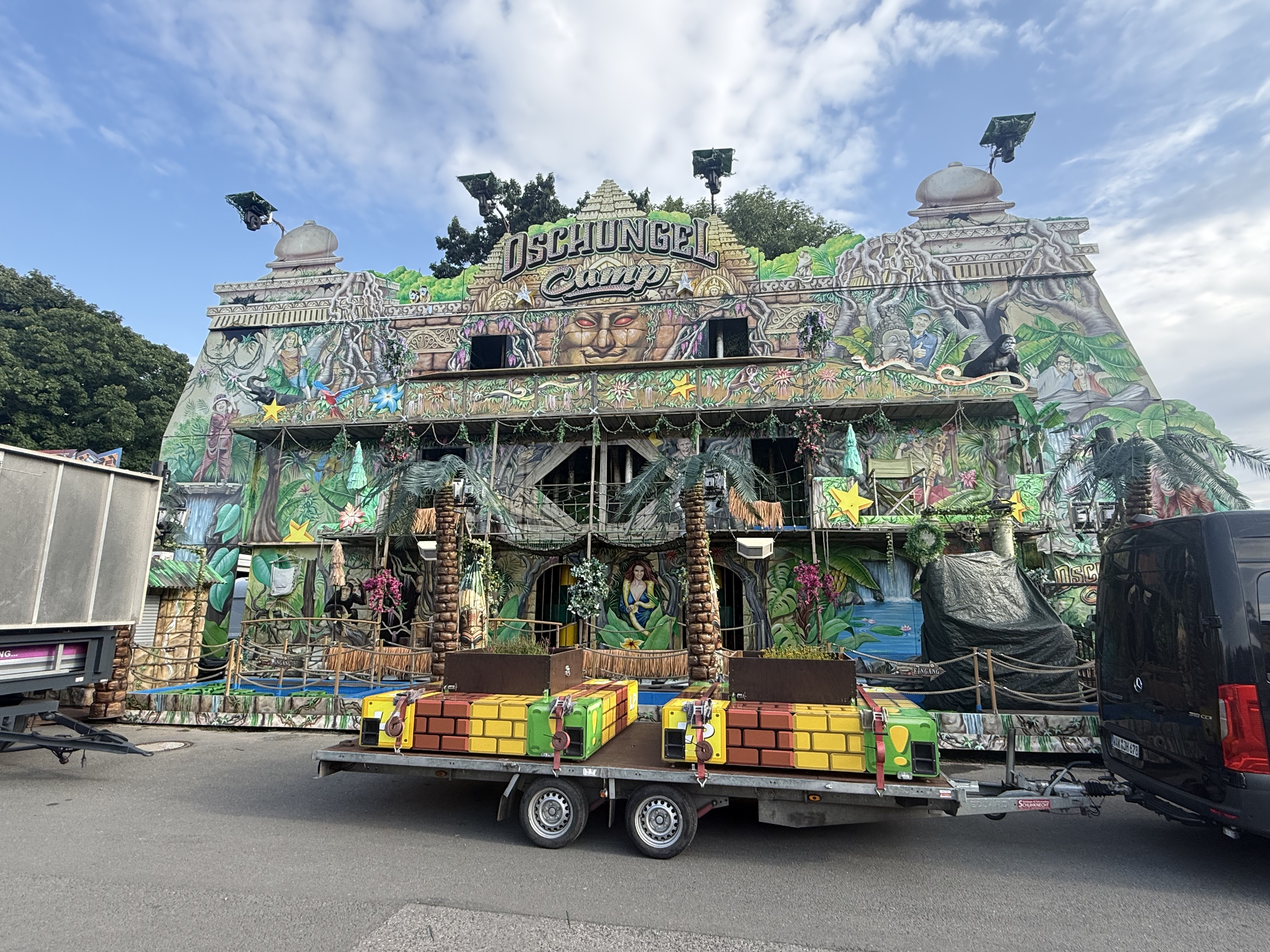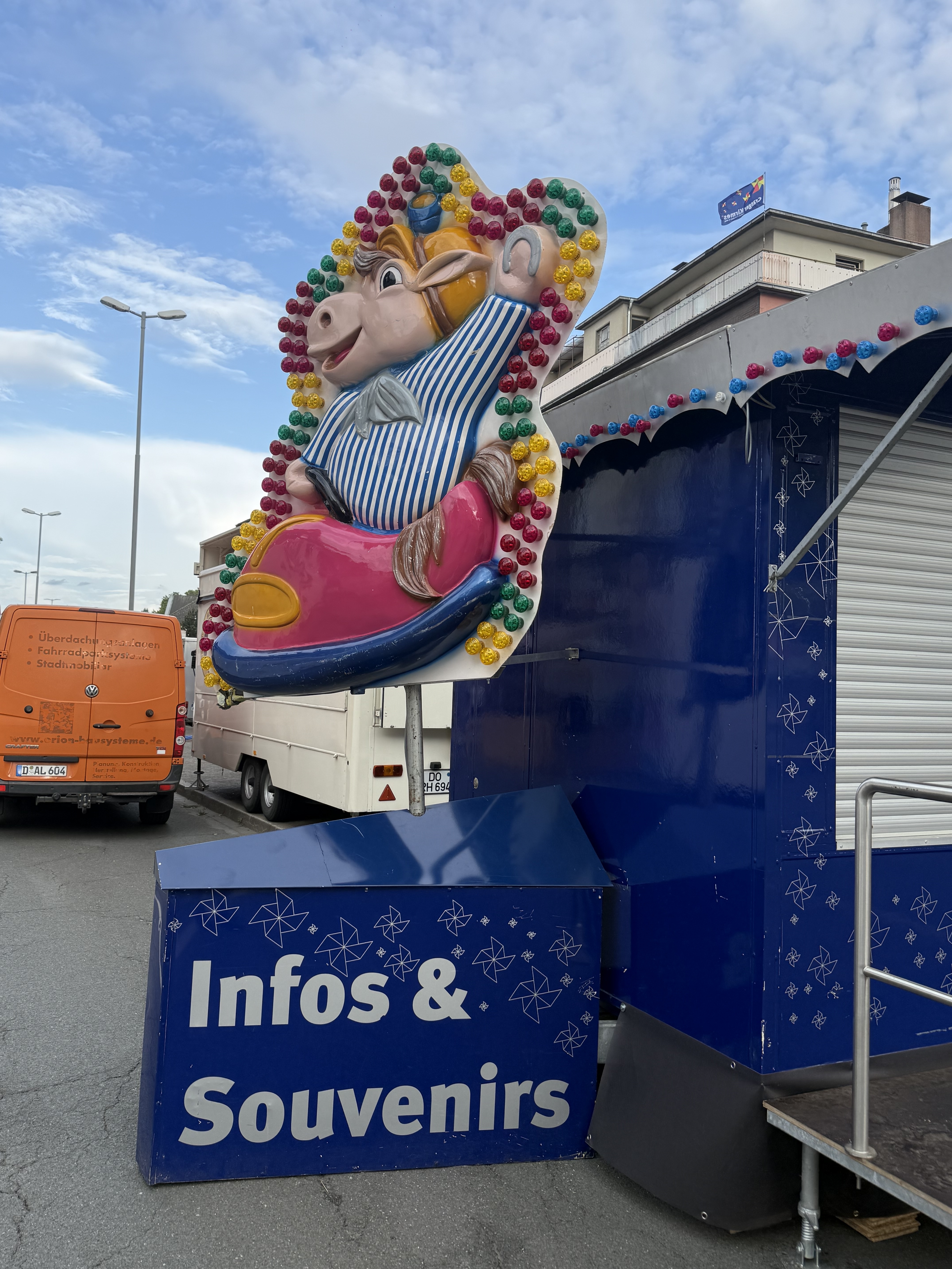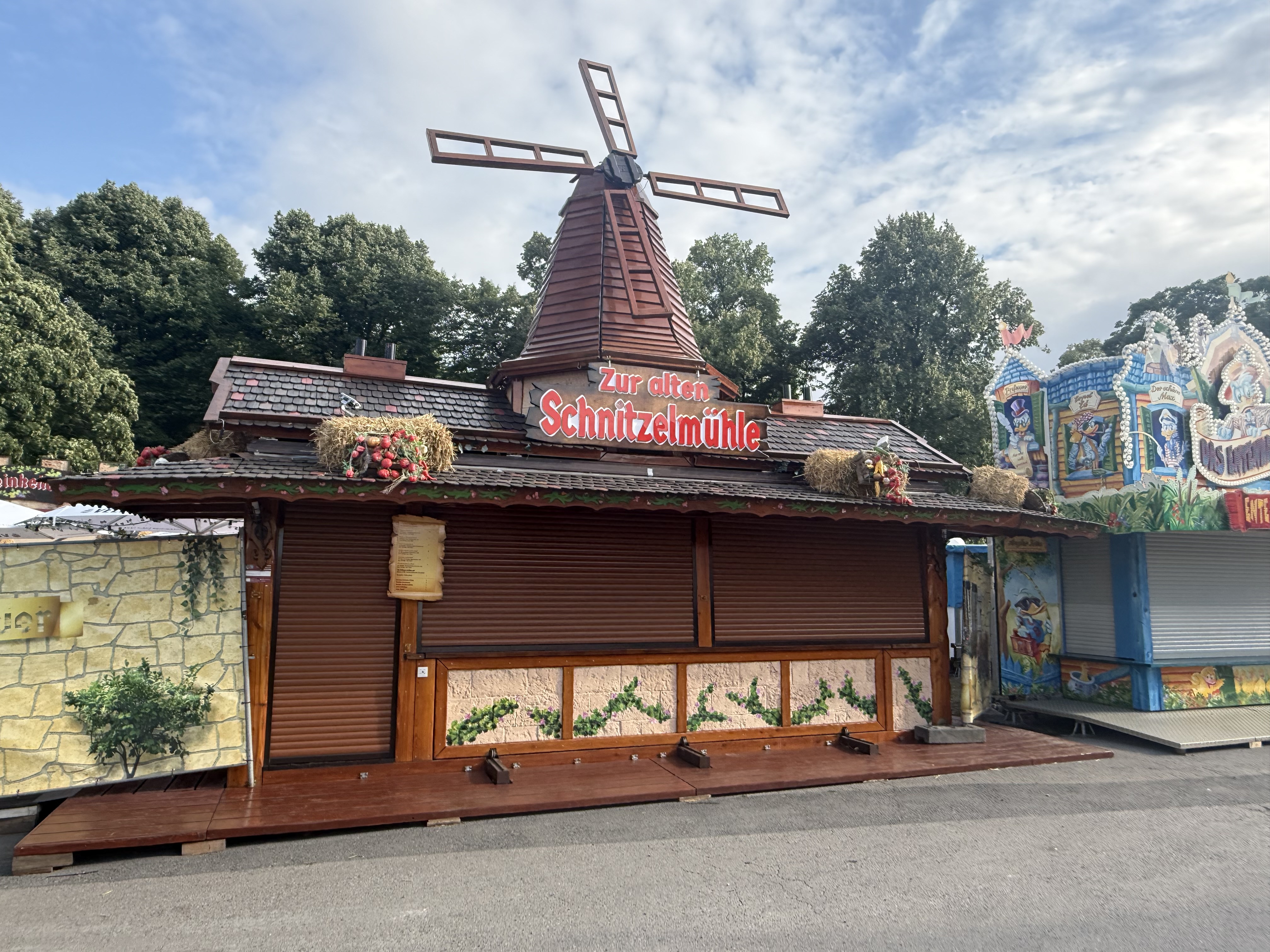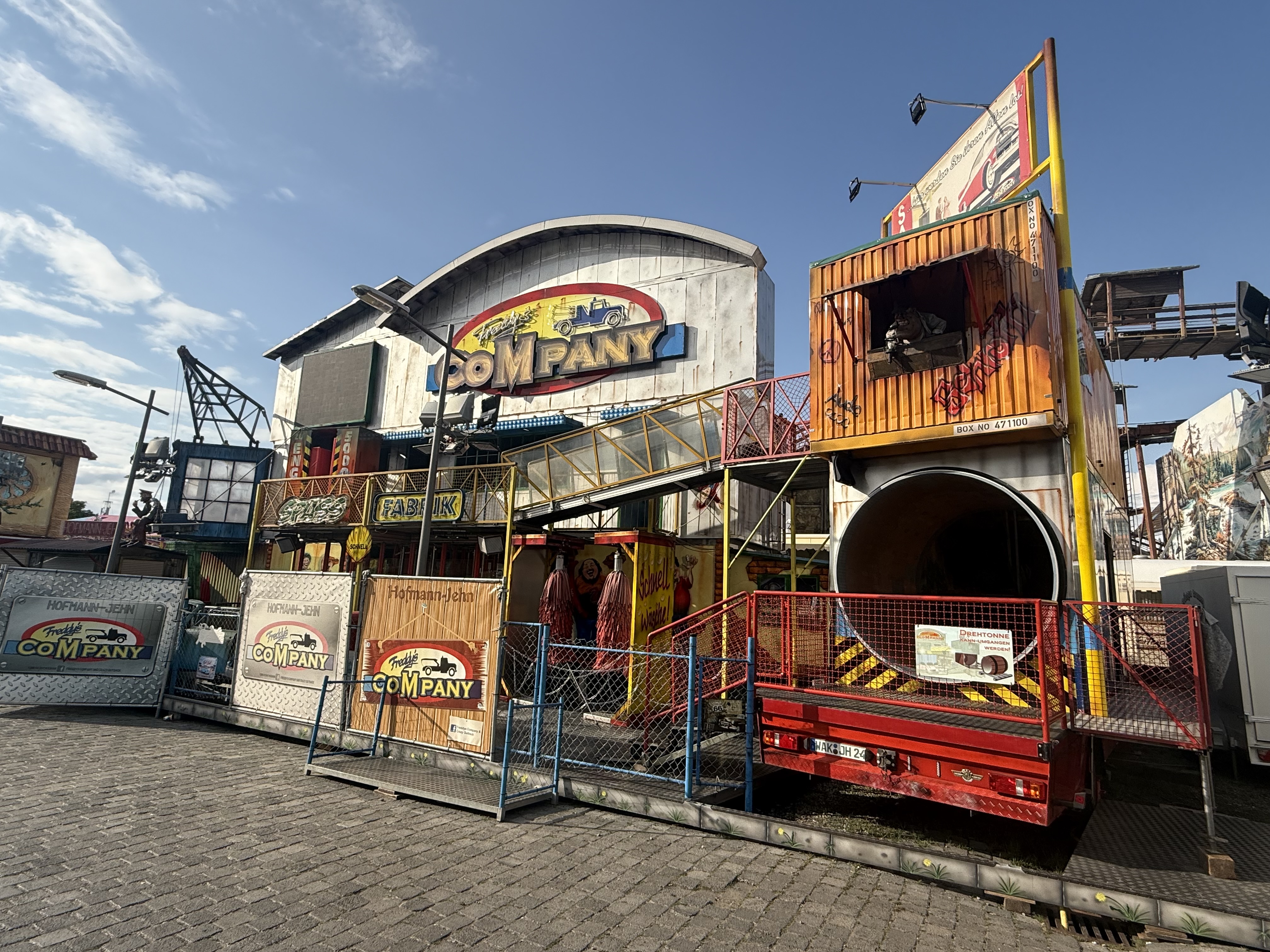 Die ostdeutsche Losbude gegenüber dem Alpendorf ist ersetzt worden durch ein Laufgeschäft: Freddy's Company - bleibt zumindest für einen ostdeutschen Schaustellerbetrieb.