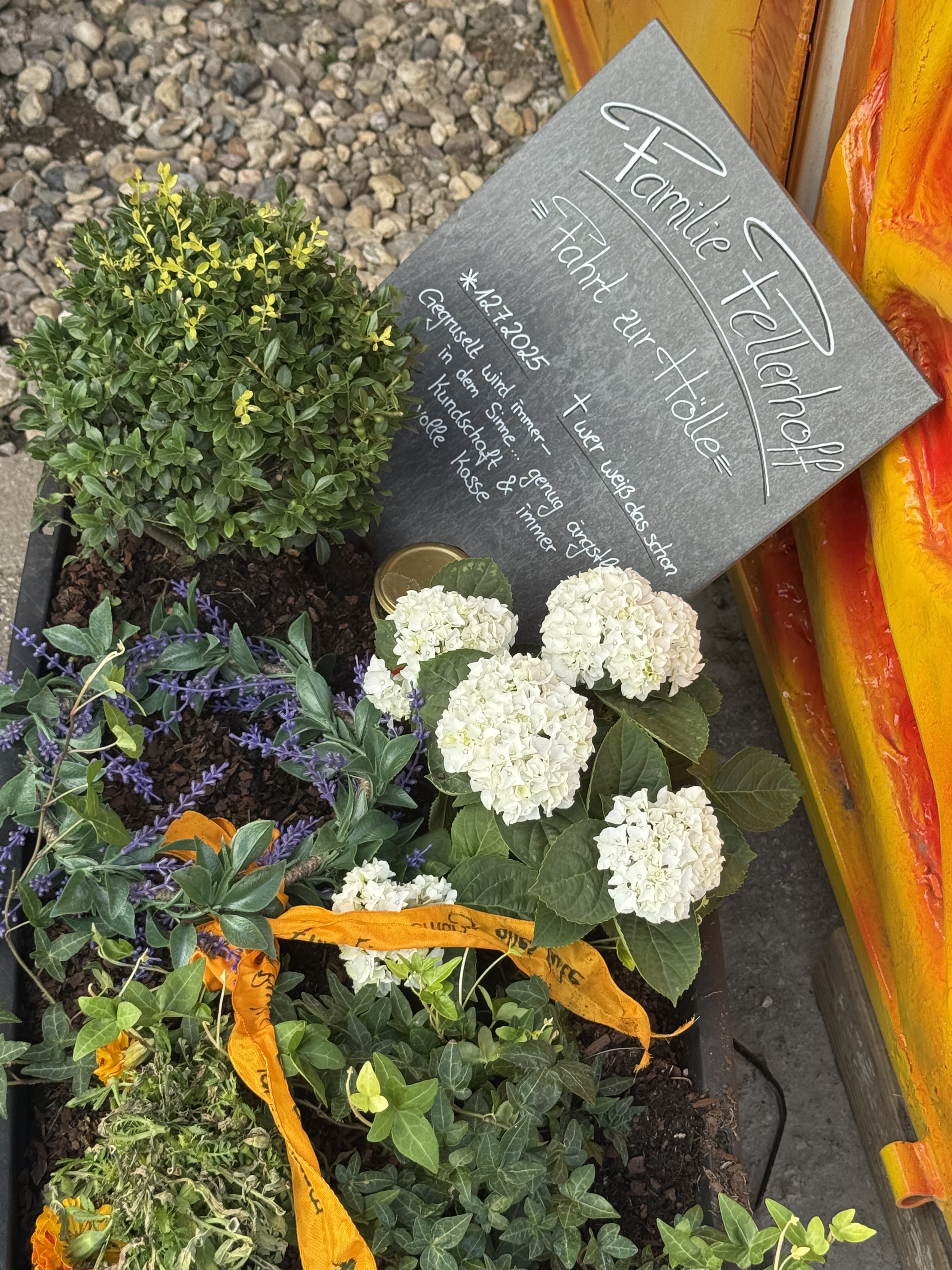 Die Familien rücken zusammen. Kaisers stehen mit Bayern-Tower und Predator hinten.