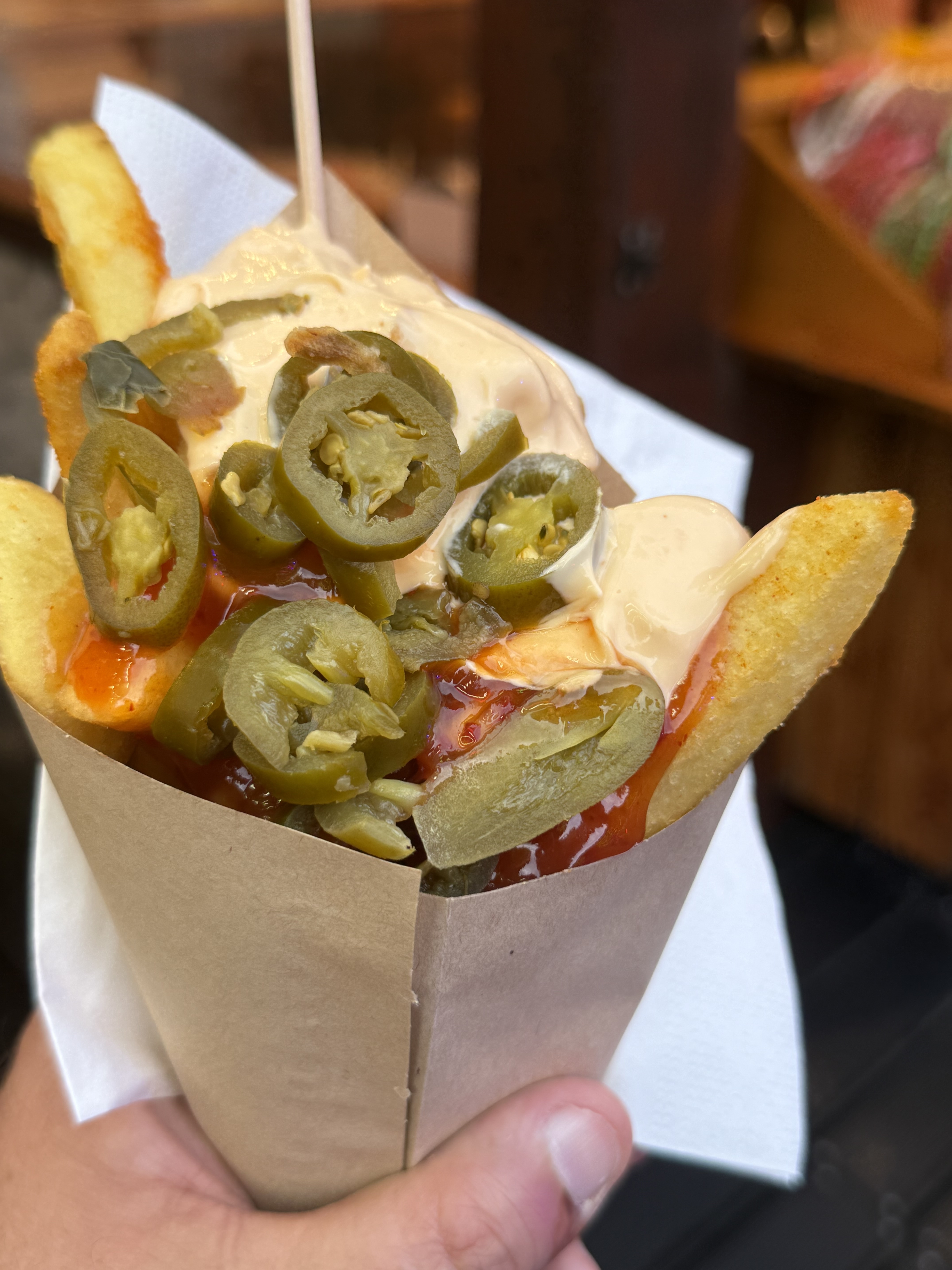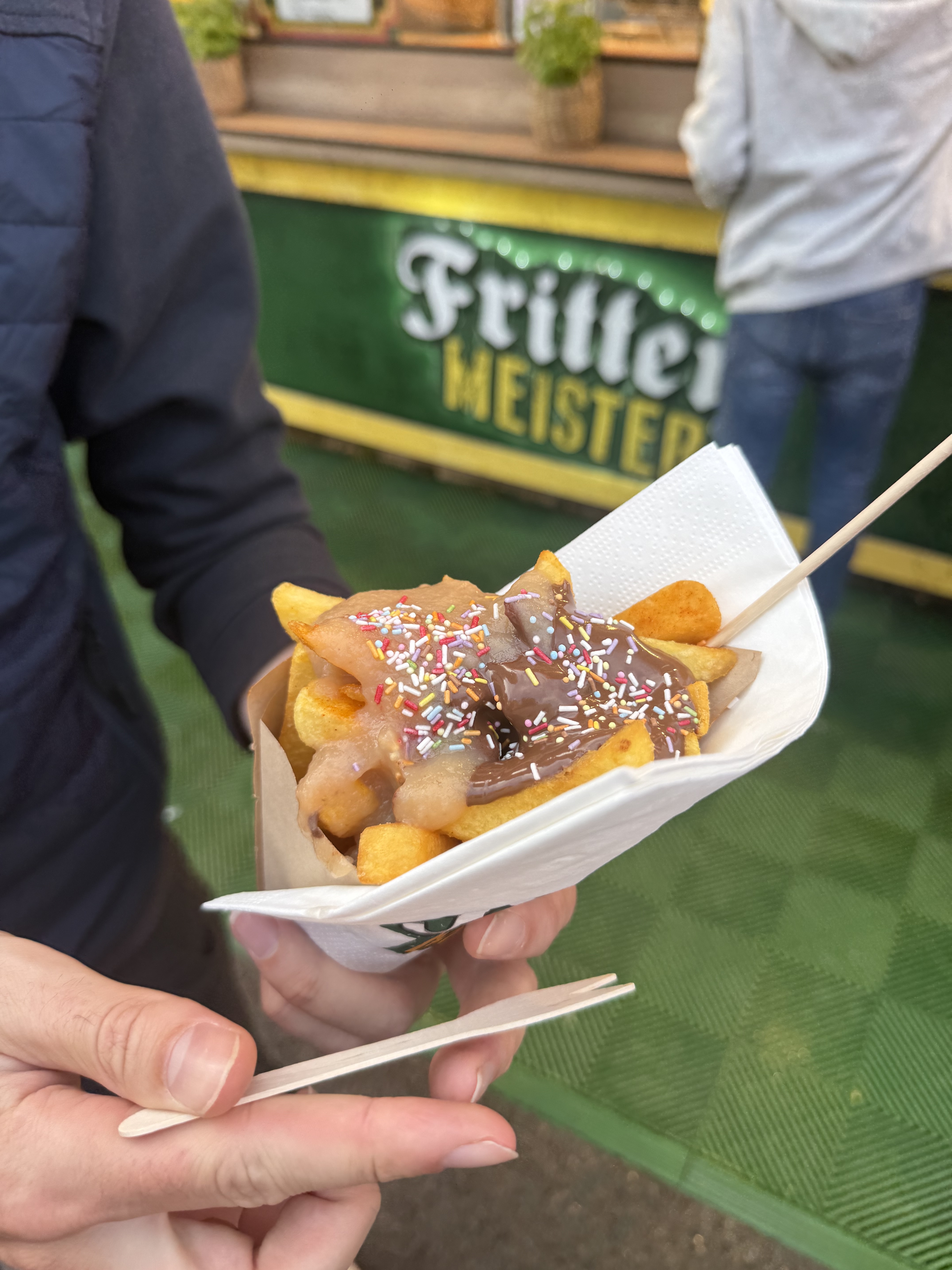 Am ersten Tag geht es zur Verköstigung zum Fritten-Meister. Heute Pommes Vlammen-Patat