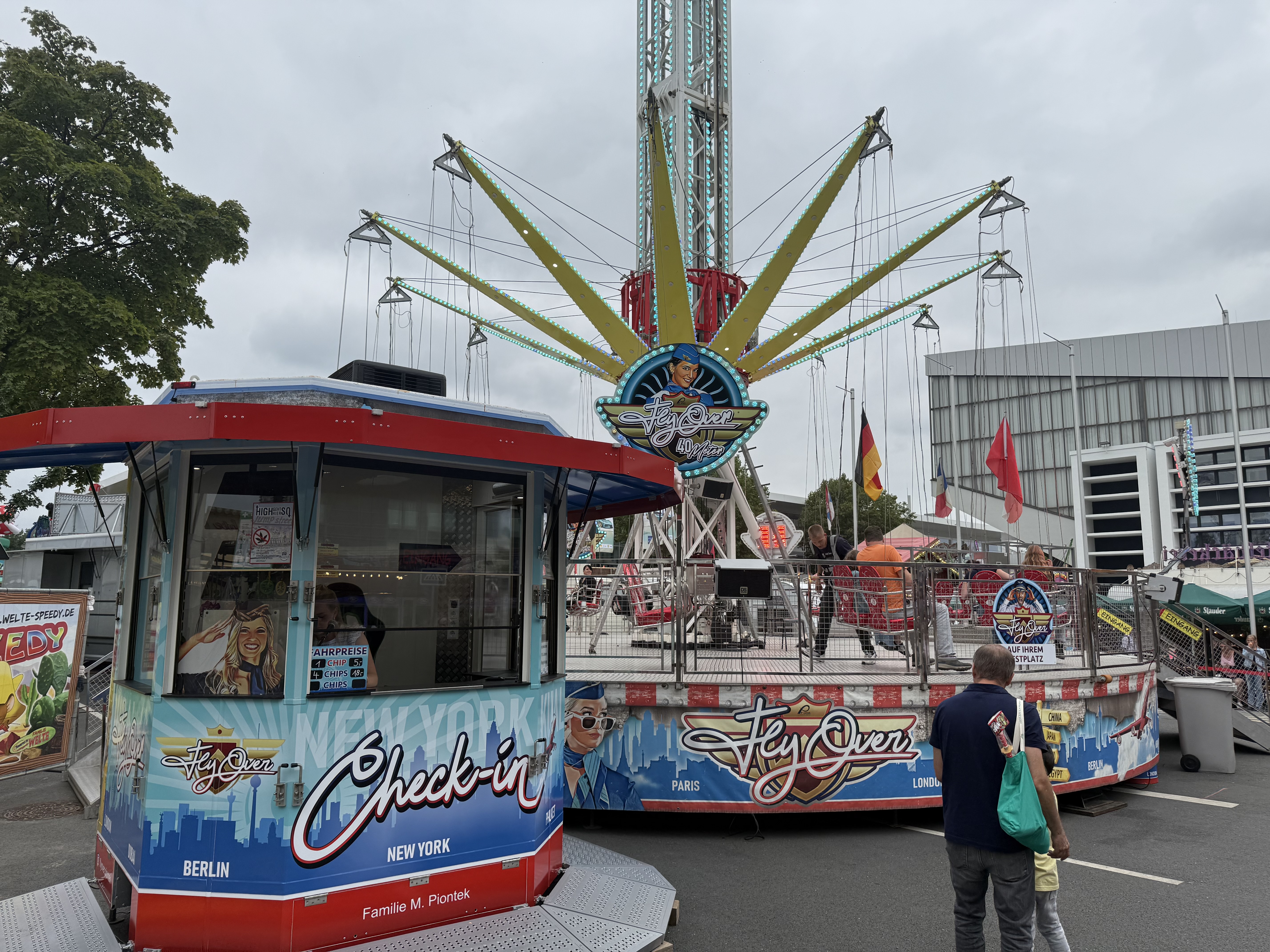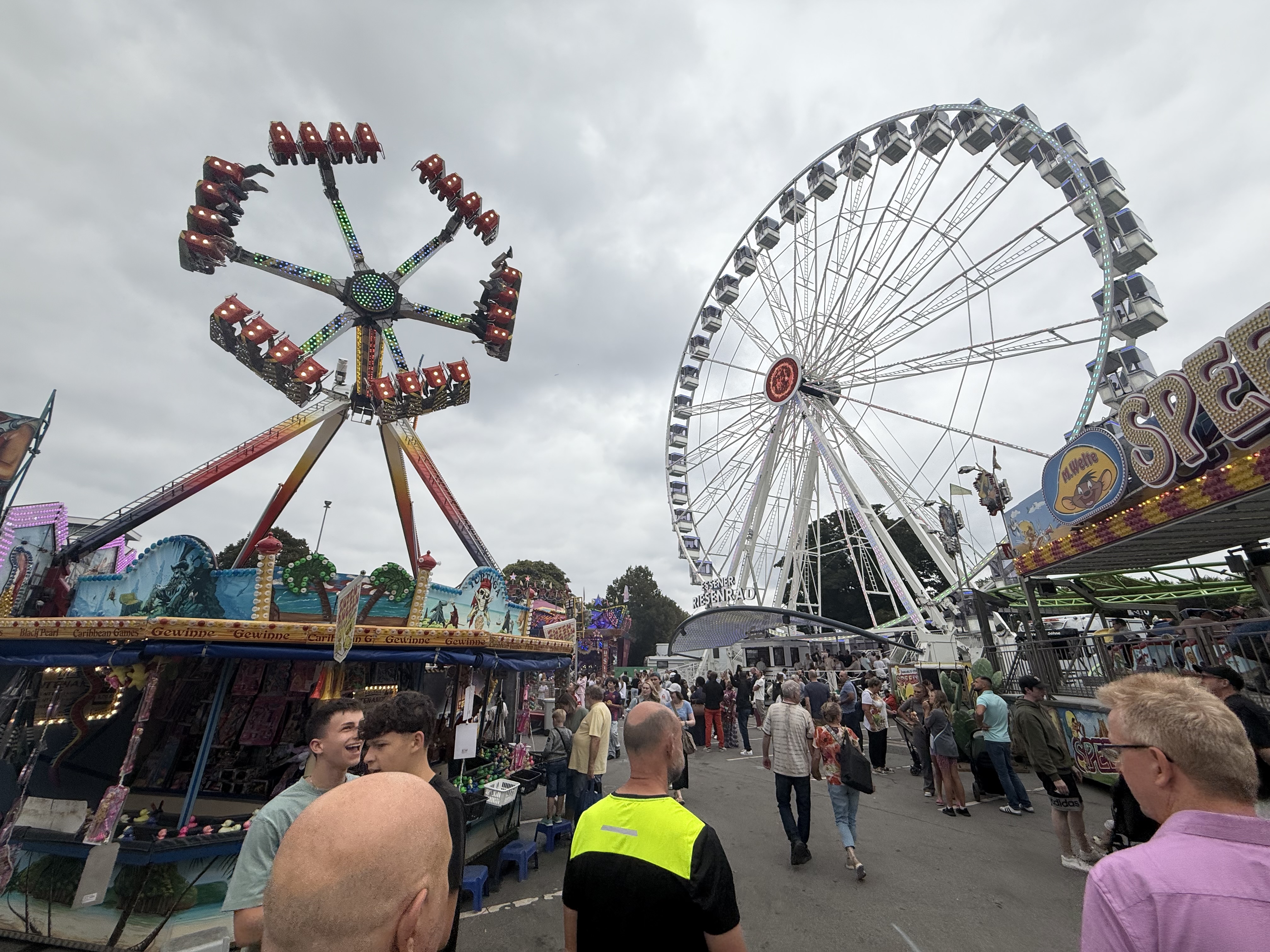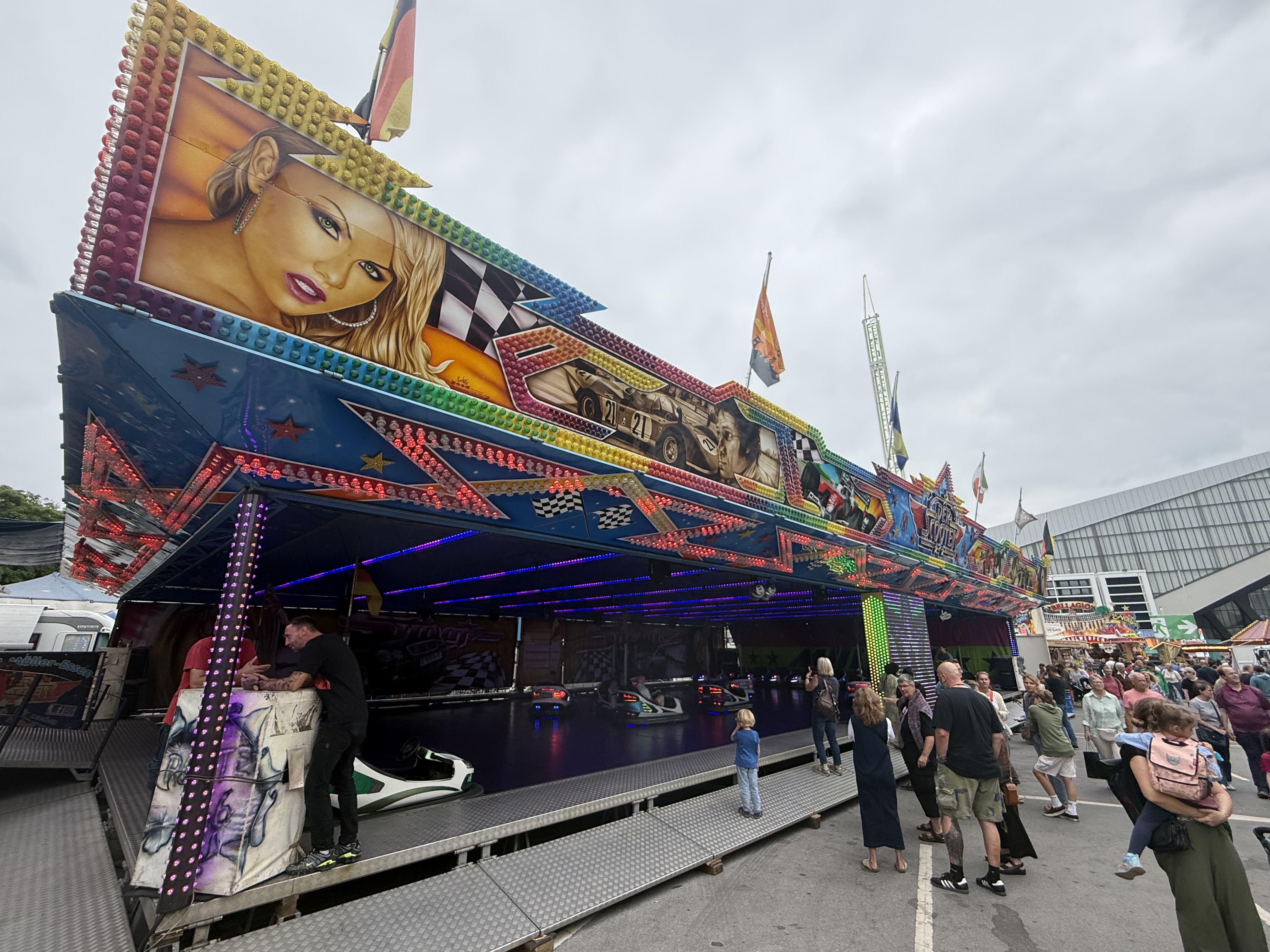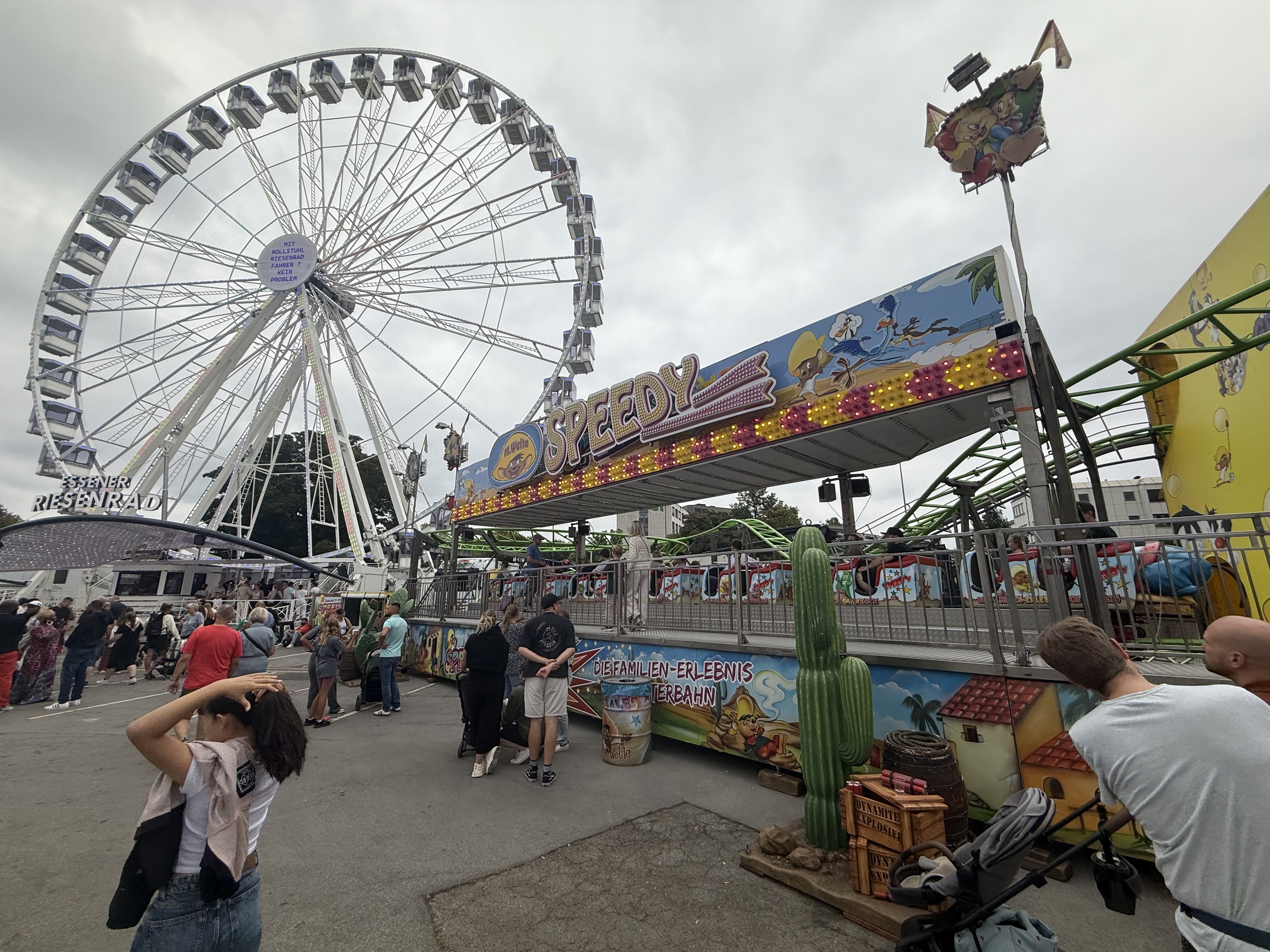 Normalerweise findet man hier die Wilde Maus von Barth. Die steht dieses Jahr aber in Vechta, so dass anstelle der großen Familienachterbahn eine kleine Anlage mit Speedy von Welte aufgebaut wurde und den Maus-Platz nutzt nun Freiwald mit der neulich erworbenen KMG-Schaukel.