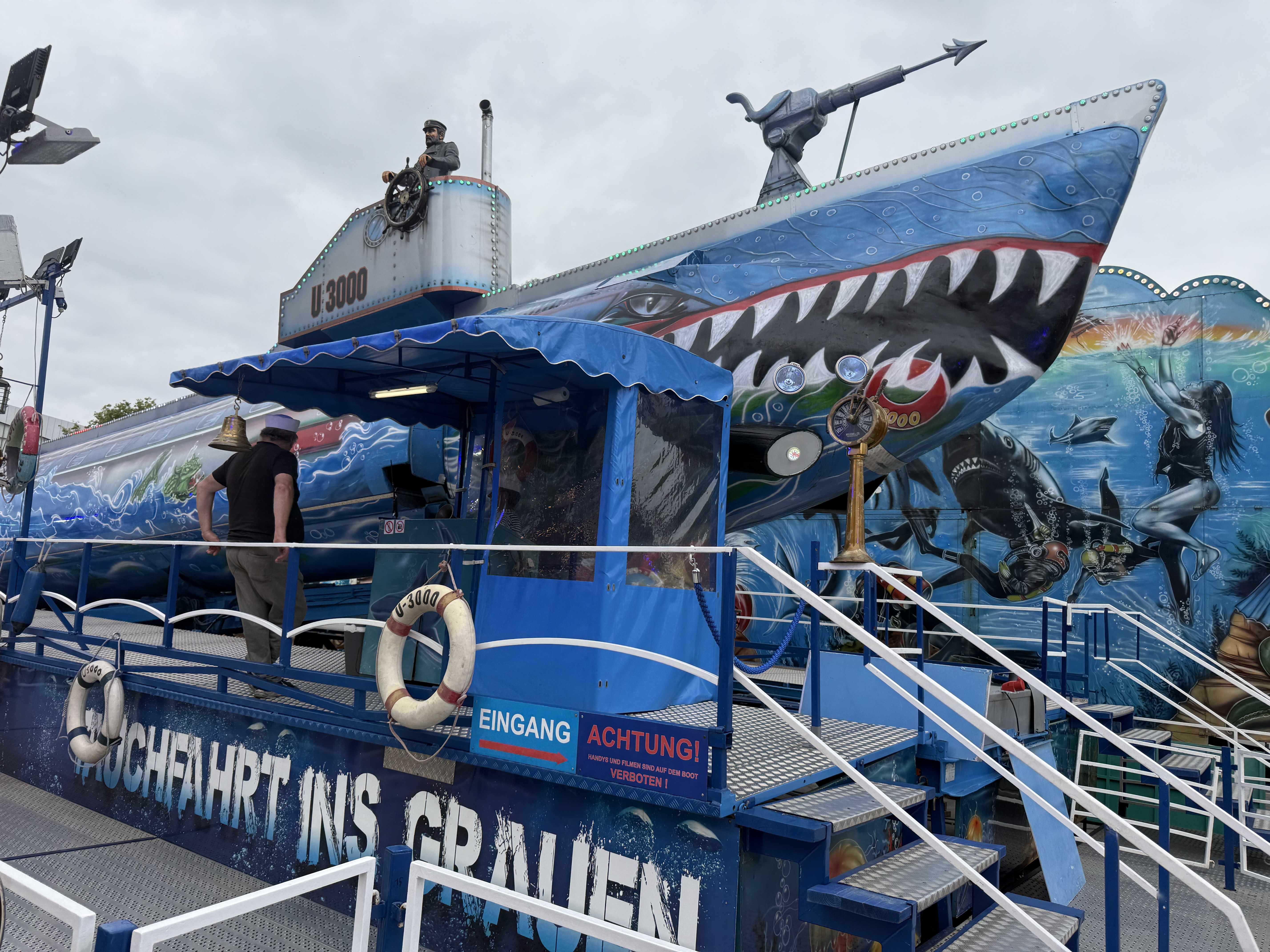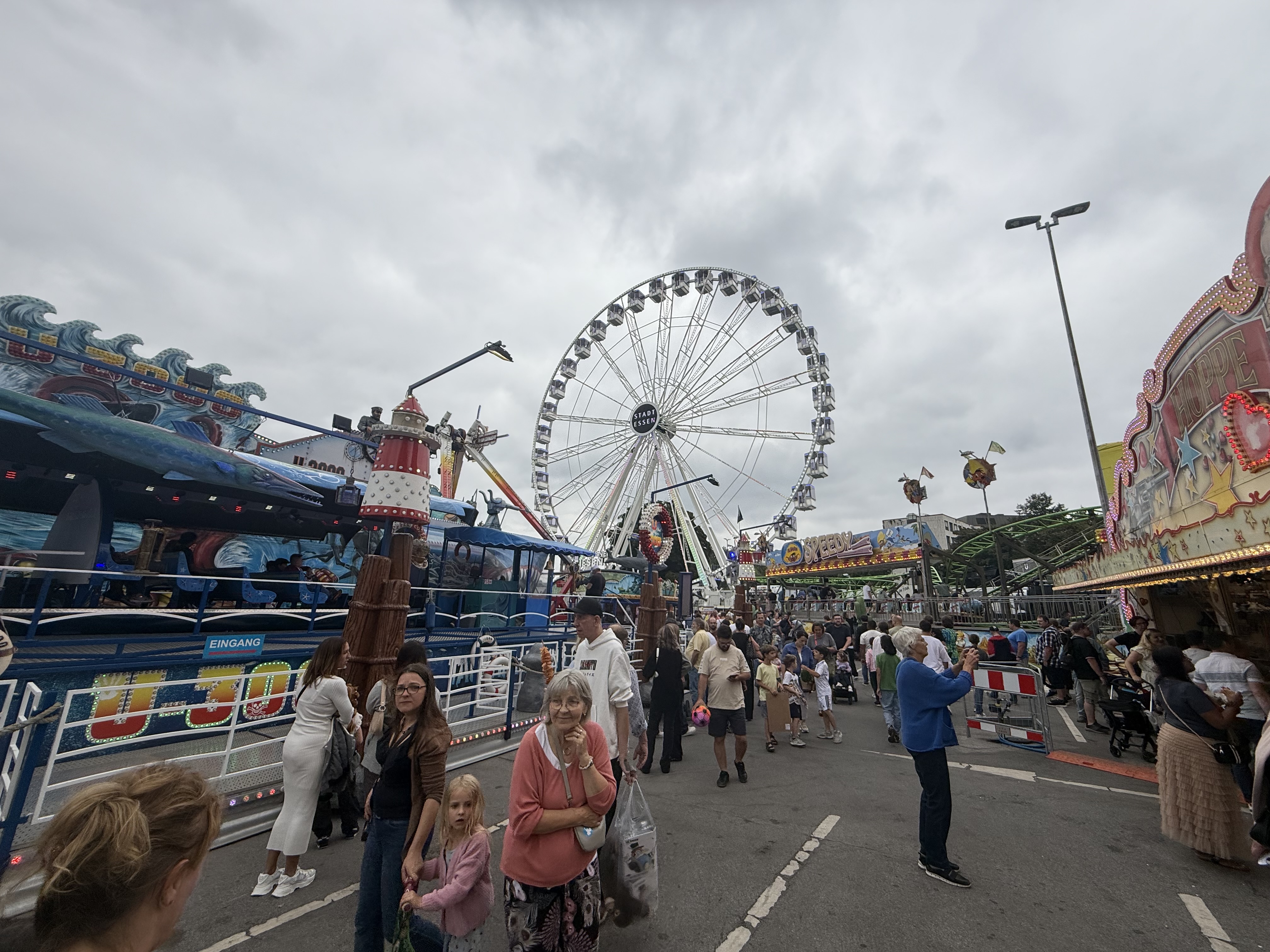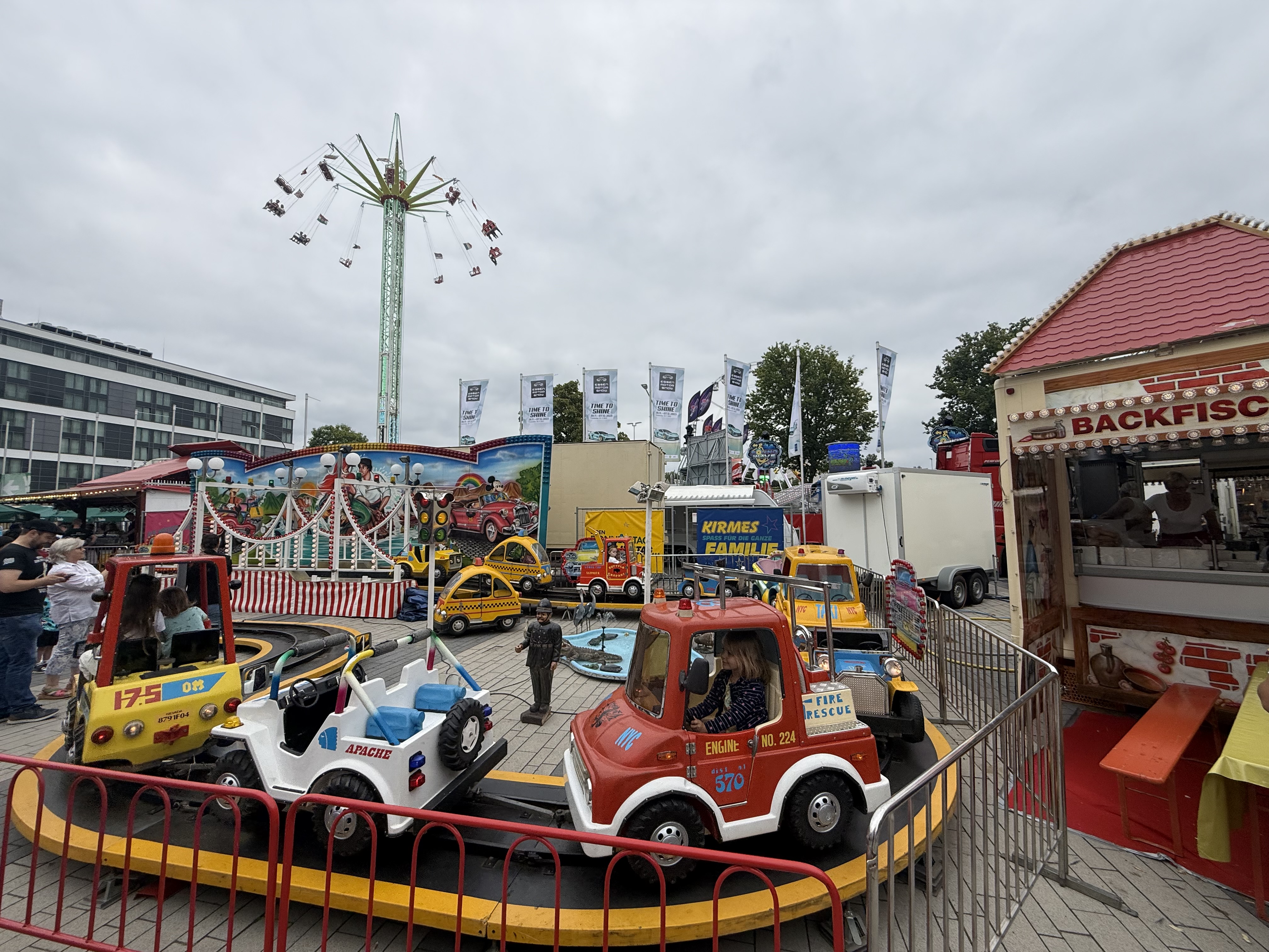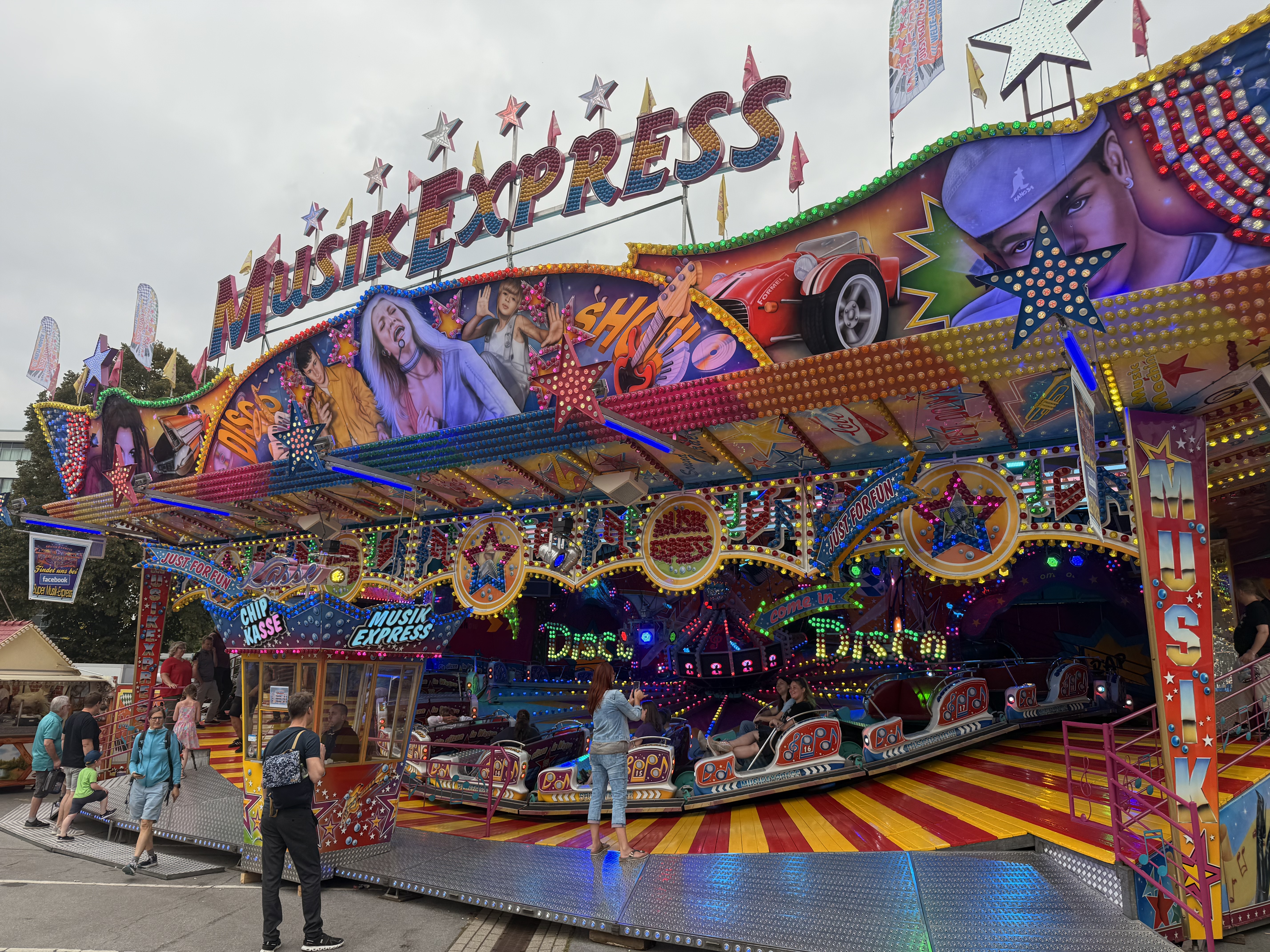 Normalerweise findet man hier die Wilde Maus von Barth. Die steht dieses Jahr aber in Vechta, so dass anstelle der großen Familienachterbahn eine kleine Anlage mit Speedy von Welte aufgebaut wurde und den Maus-Platz nutzt nun Freiwald mit der neulich erworbenen KMG-Schaukel.