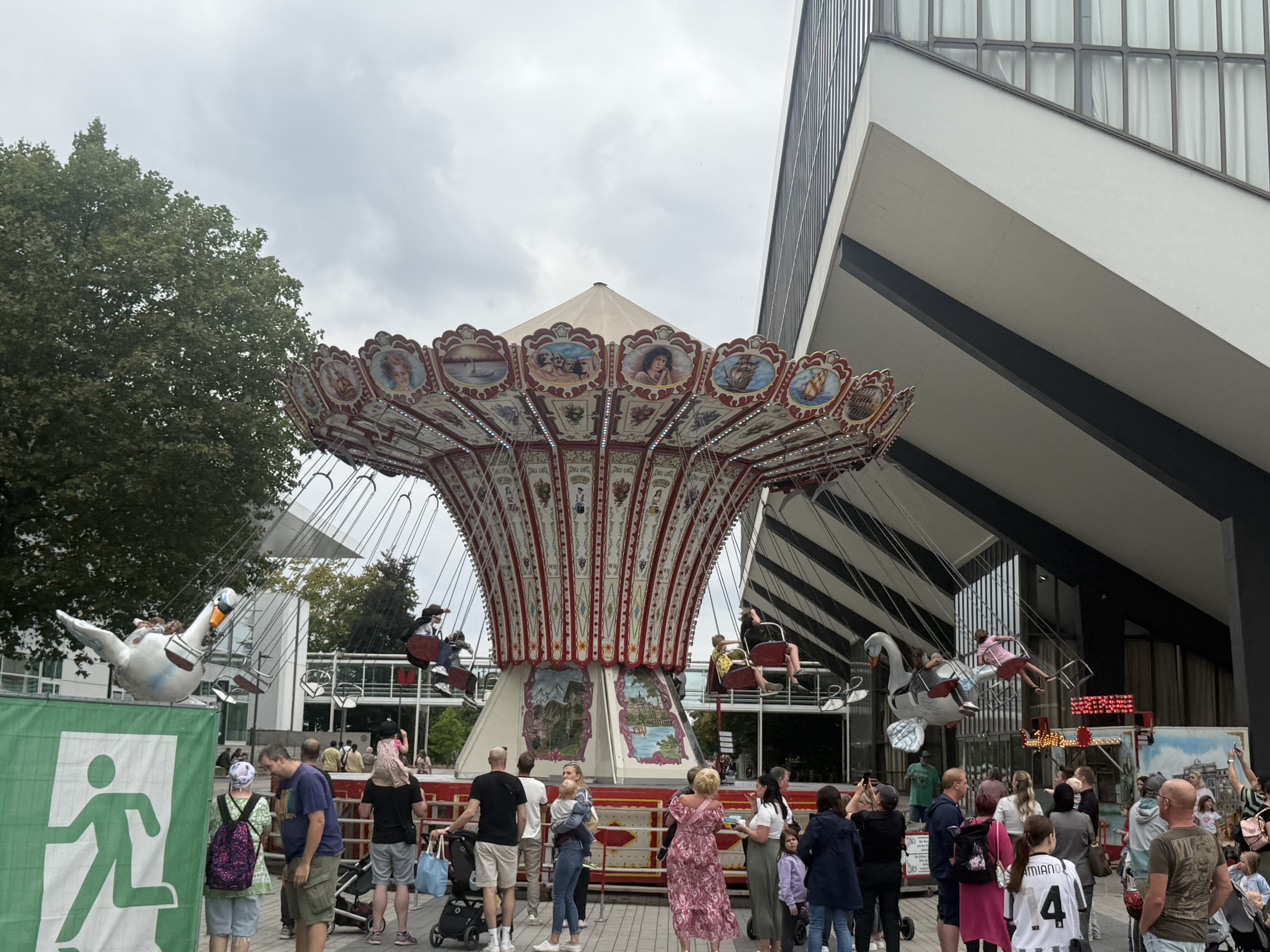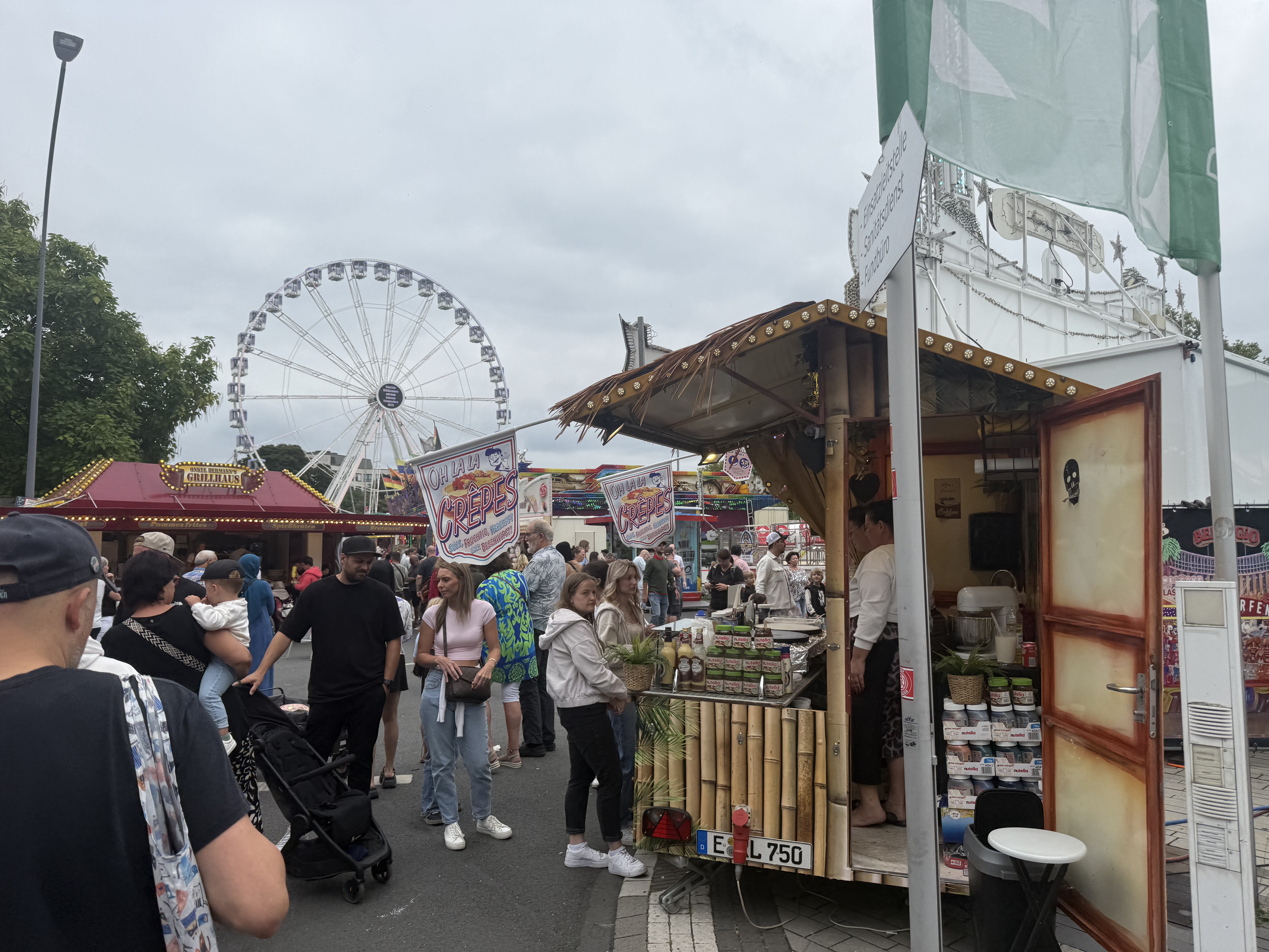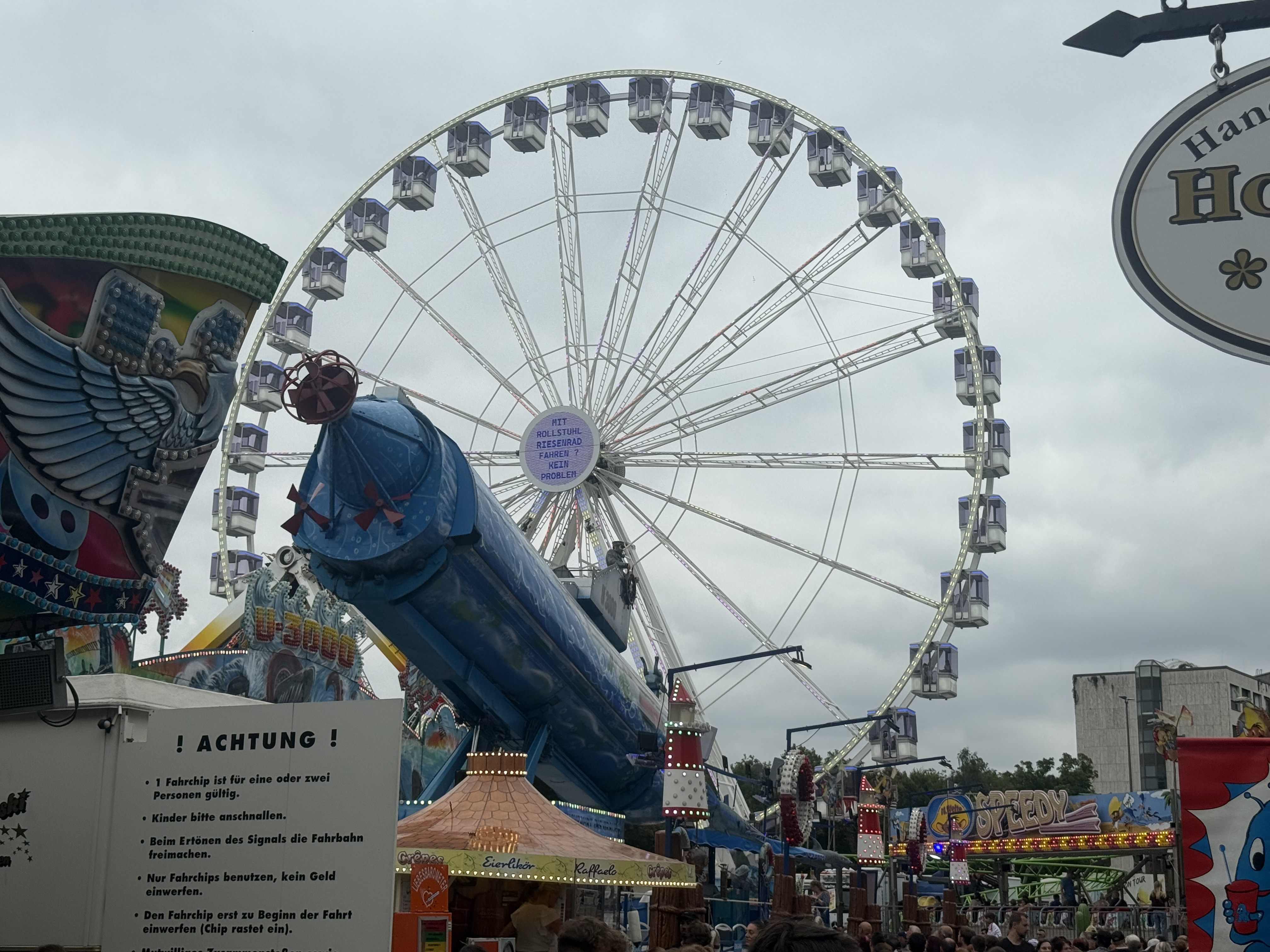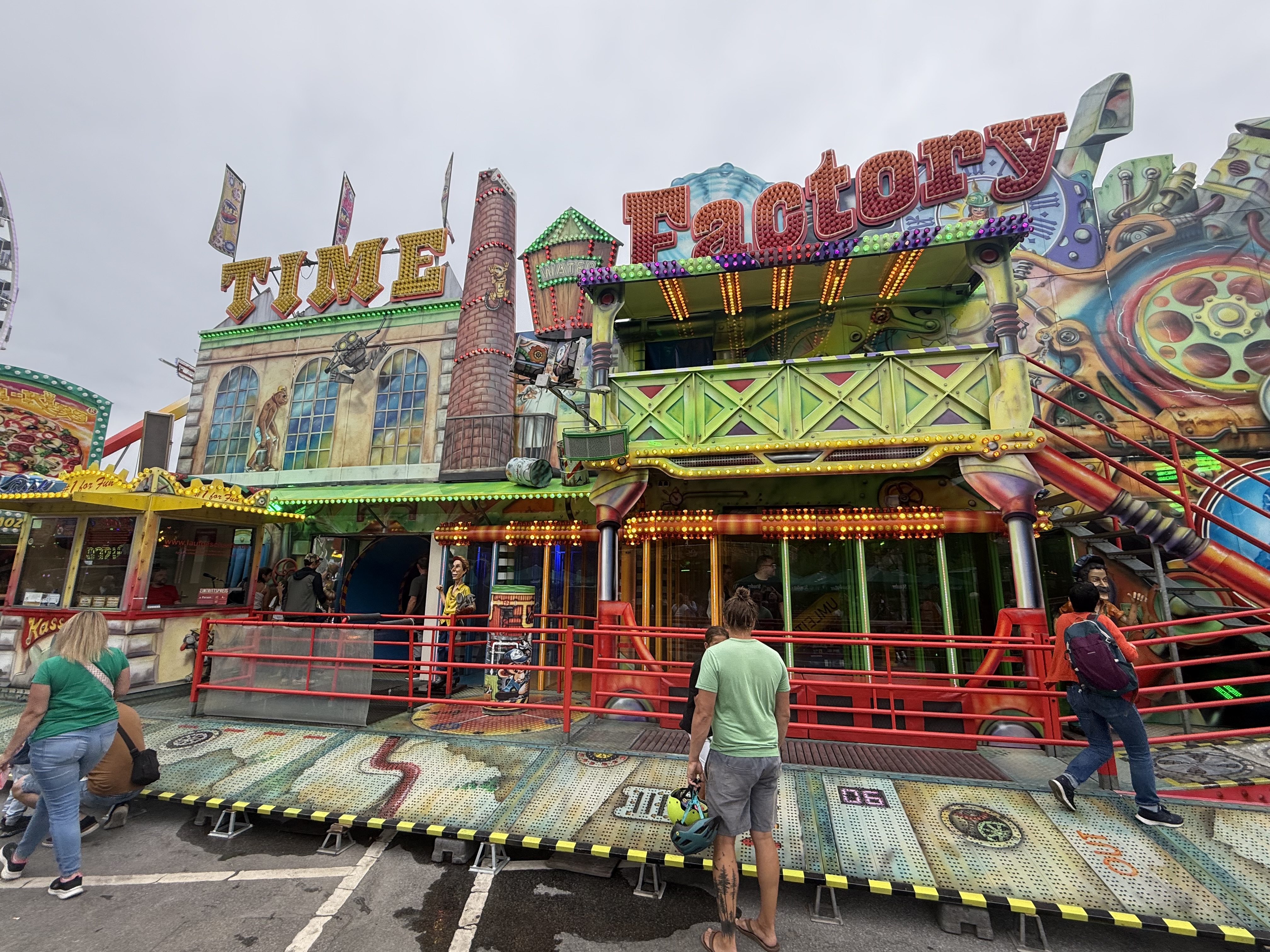 Normalerweise findet man hier die Wilde Maus von Barth. Die steht dieses Jahr aber in Vechta, so dass anstelle der großen Familienachterbahn eine kleine Anlage mit Speedy von Welte aufgebaut wurde und den Maus-Platz nutzt nun Freiwald mit der neulich erworbenen KMG-Schaukel.