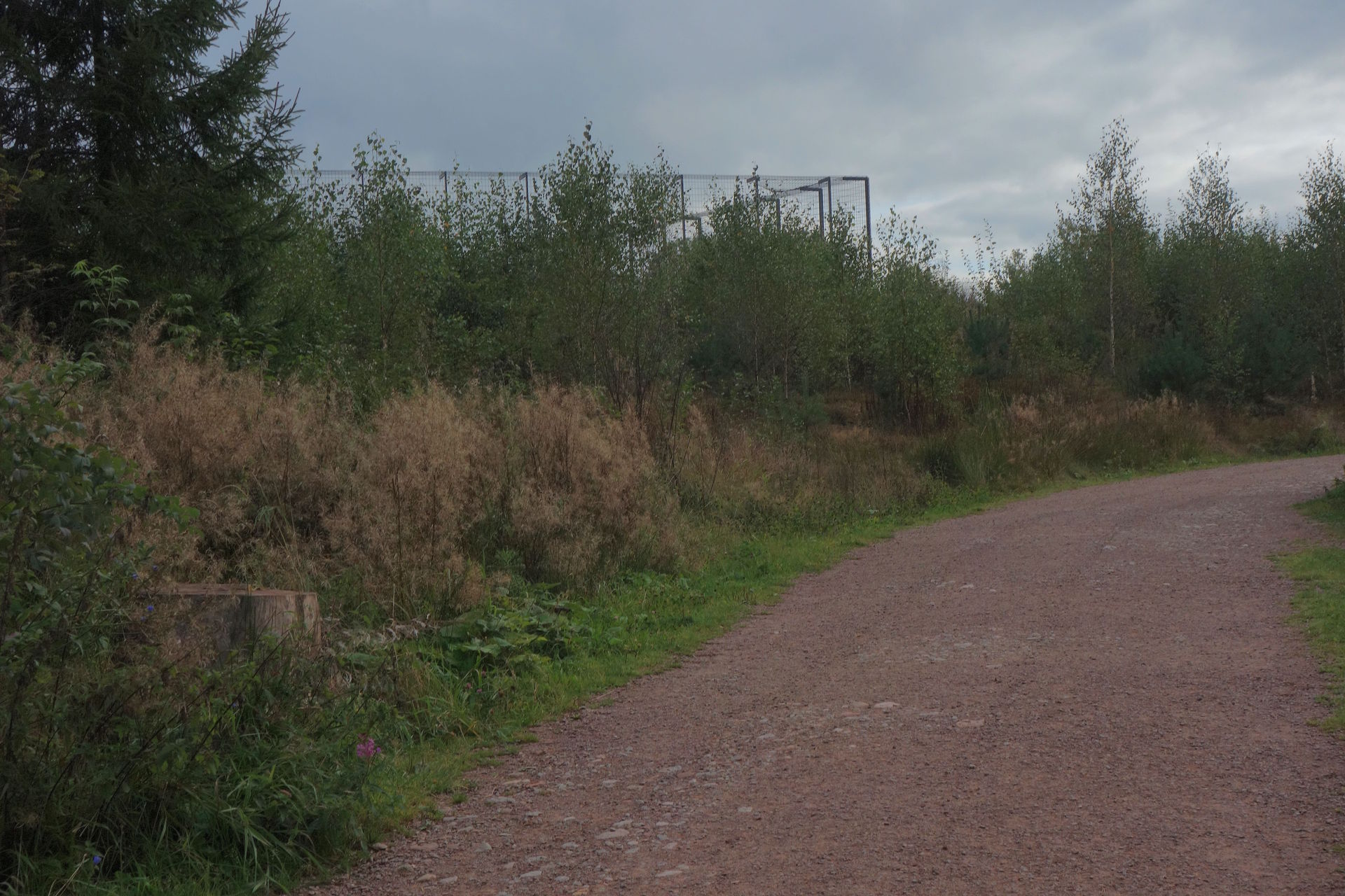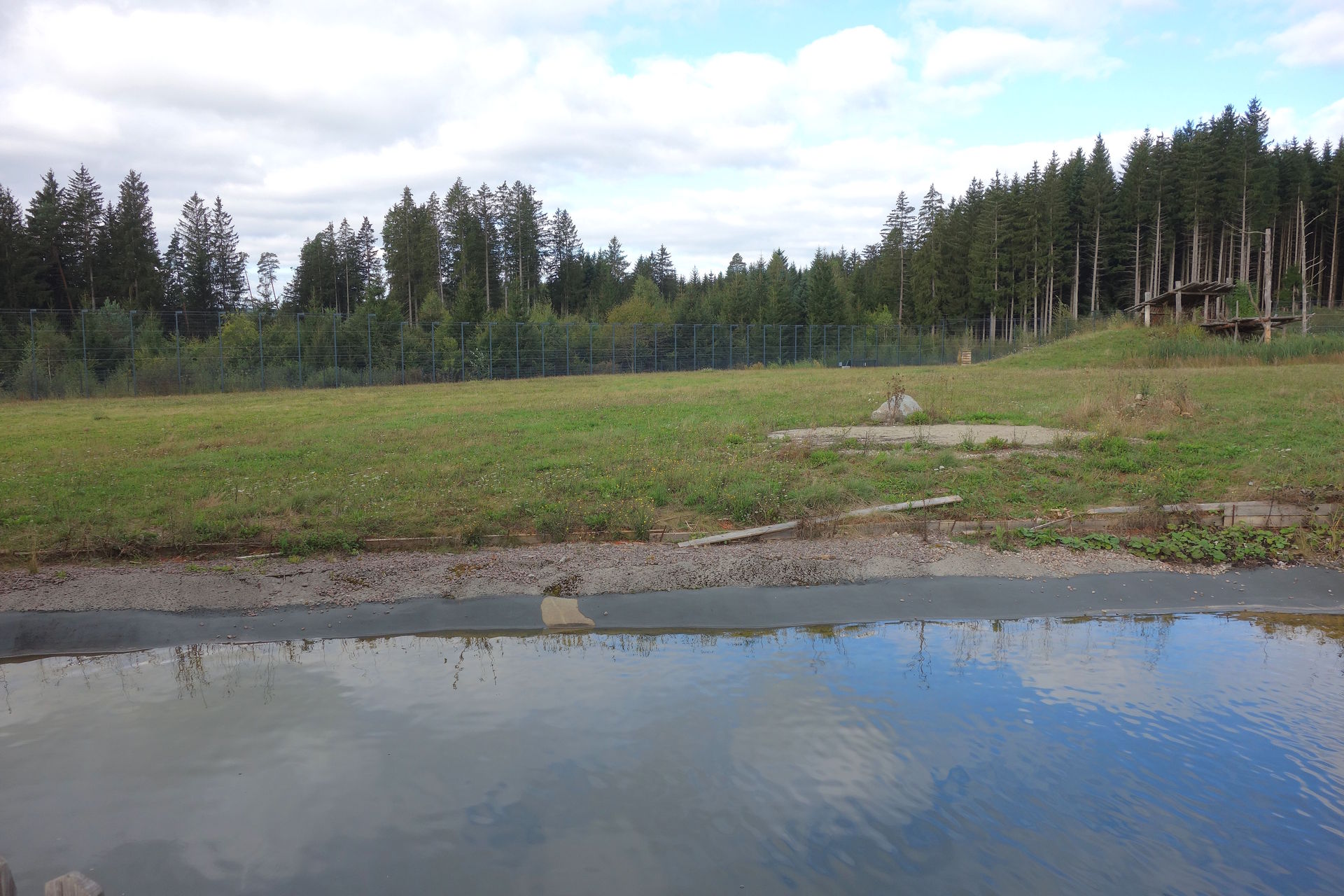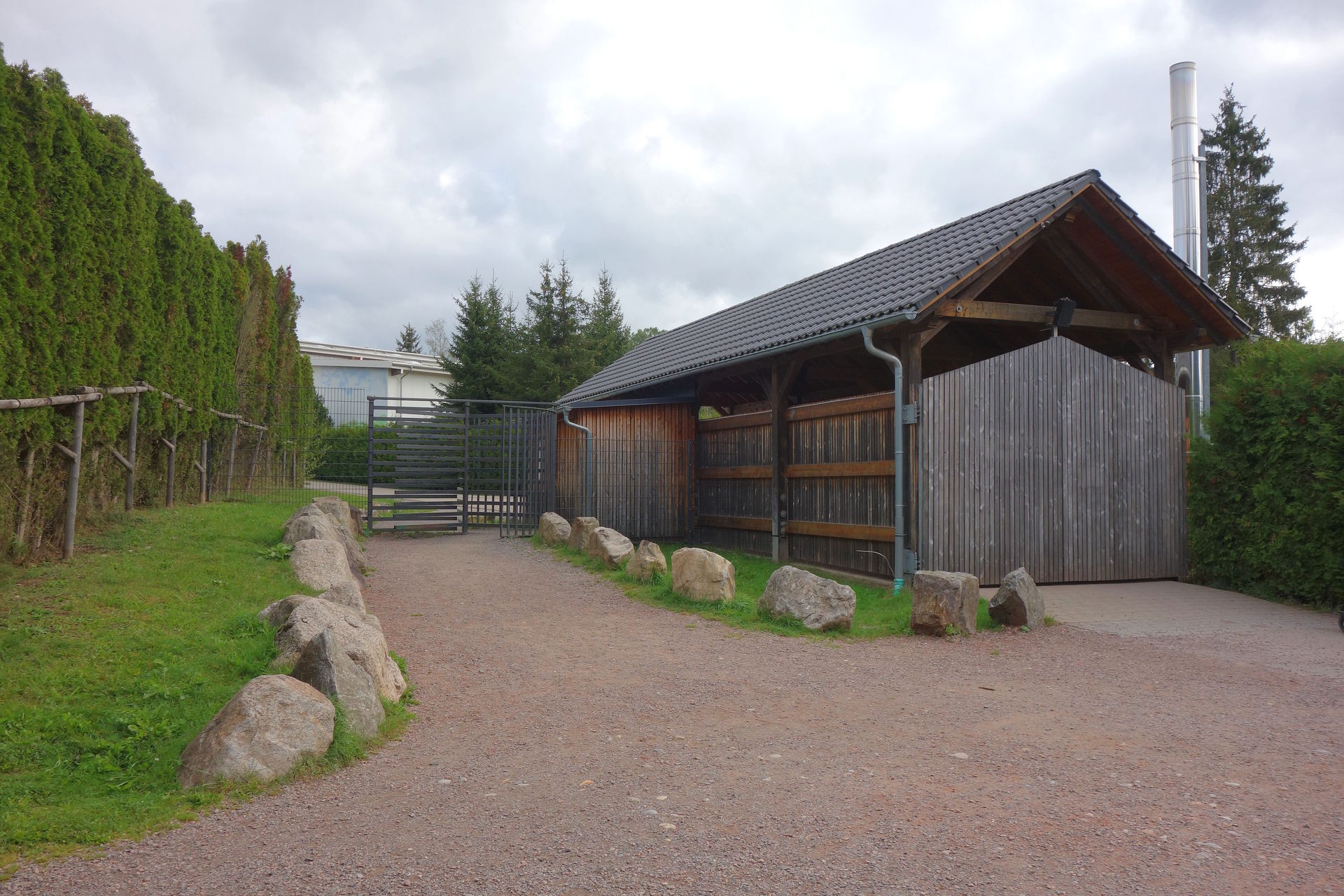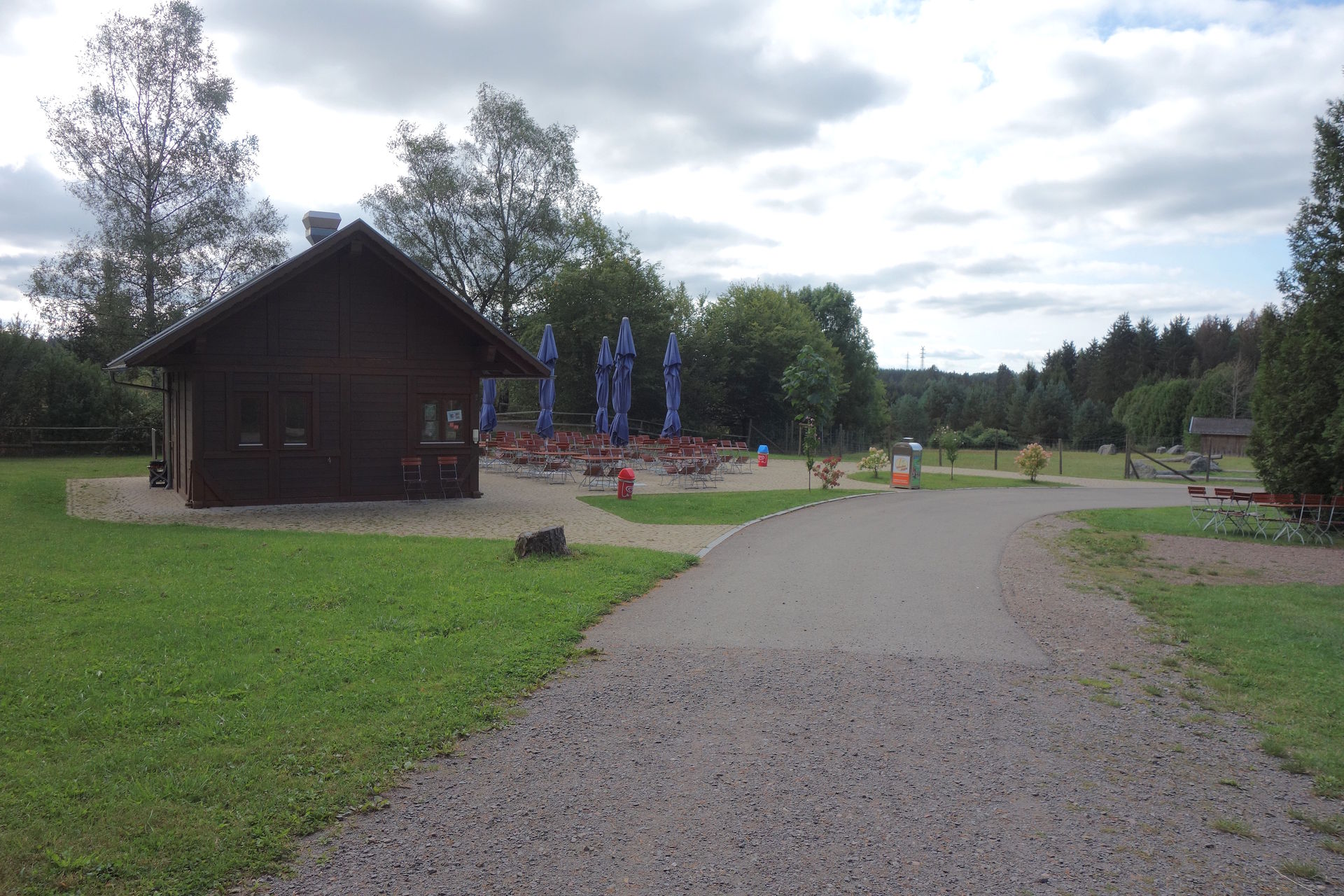 Auf den letzten Metern ohne Bäume sieht man bereits die meterhohen Zäune des großen Raubtiergeheges. Früher musste man über eine Zufahrtsstraße zum Park um das Wäldchen herum gehen. Das an dieser Straße gelegene Hotel gehörte ebenfalls zum Schwarzwald Park und bildete auch den Eingangsbereich des Parks. Es blieb beim Verkauf aber außen vor und wird eigenständig von Verena Reichle geführt, der Parkeingang wurde daher nach hinten verlegt.