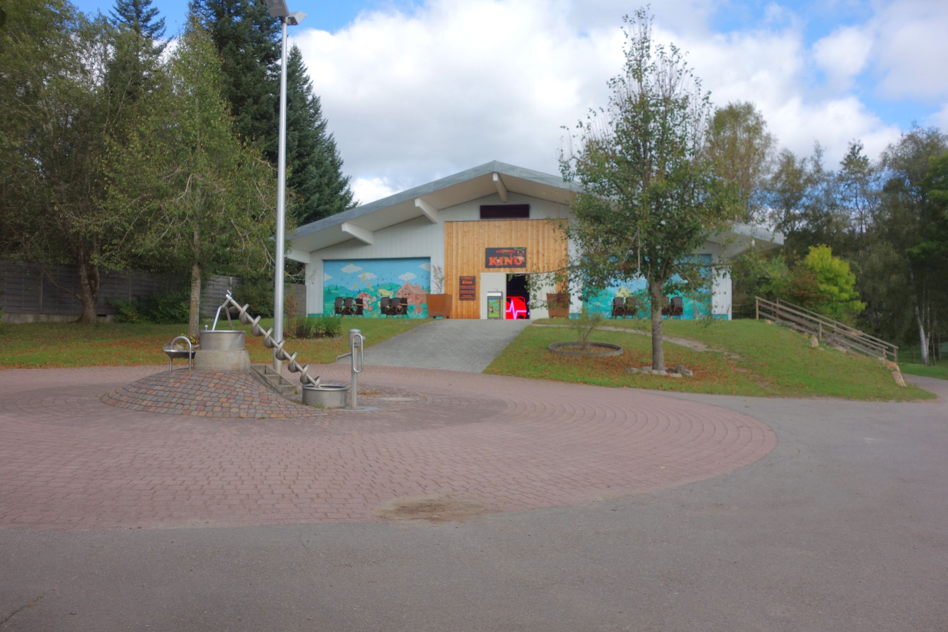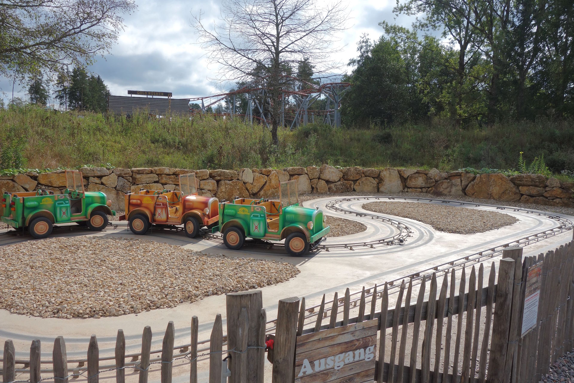 Beim Besuch 2014 hatten wir dort drin den Eintritt zahlen müssen, da sich der Park damals noch im Winderbetrieb befand. Bis 2007 waren in diesem Bereich Braunbären beheimatet, die aufgrund des zu kleinen Geheges an eine Tierschutzorganisation übergeben und nach Ostdeutschland umgesiedelt wurden. Stattdessen sollte eine knapp 2.000 Quadratmeter große Kinderspielhalle eine Winteröffnung ermöglichen. Zum 40-jährigen Jubiläum klappte das zwar nicht, aber im Herbst 2010 konnte Sammy's Dschungelland endlich eröffnet werden. Wenn man dem Südkurier-Artikel zum Bau glauben kann, sollen die Leimbinder für die Dachkonstruktion übrigens aus Trier stammen - auch wenn ich nicht wüsste, welches Unternehmen die geliefert haben sollte. Neben einem Imbissbereich und Räumlichkeiten für Geburtstagsfeiern wurde die Halle mit einem Kletterspielplatz, Trampolinen und sogar einen kleinen Kinderachterbahn ausgestattet. Die Zamperla Mini Mouse fiel der Übernahme allerdings zum Opfer - eine neue Heimat fand sie in Pakistan - und wurde durch weitere Spielelemente ersetzt.