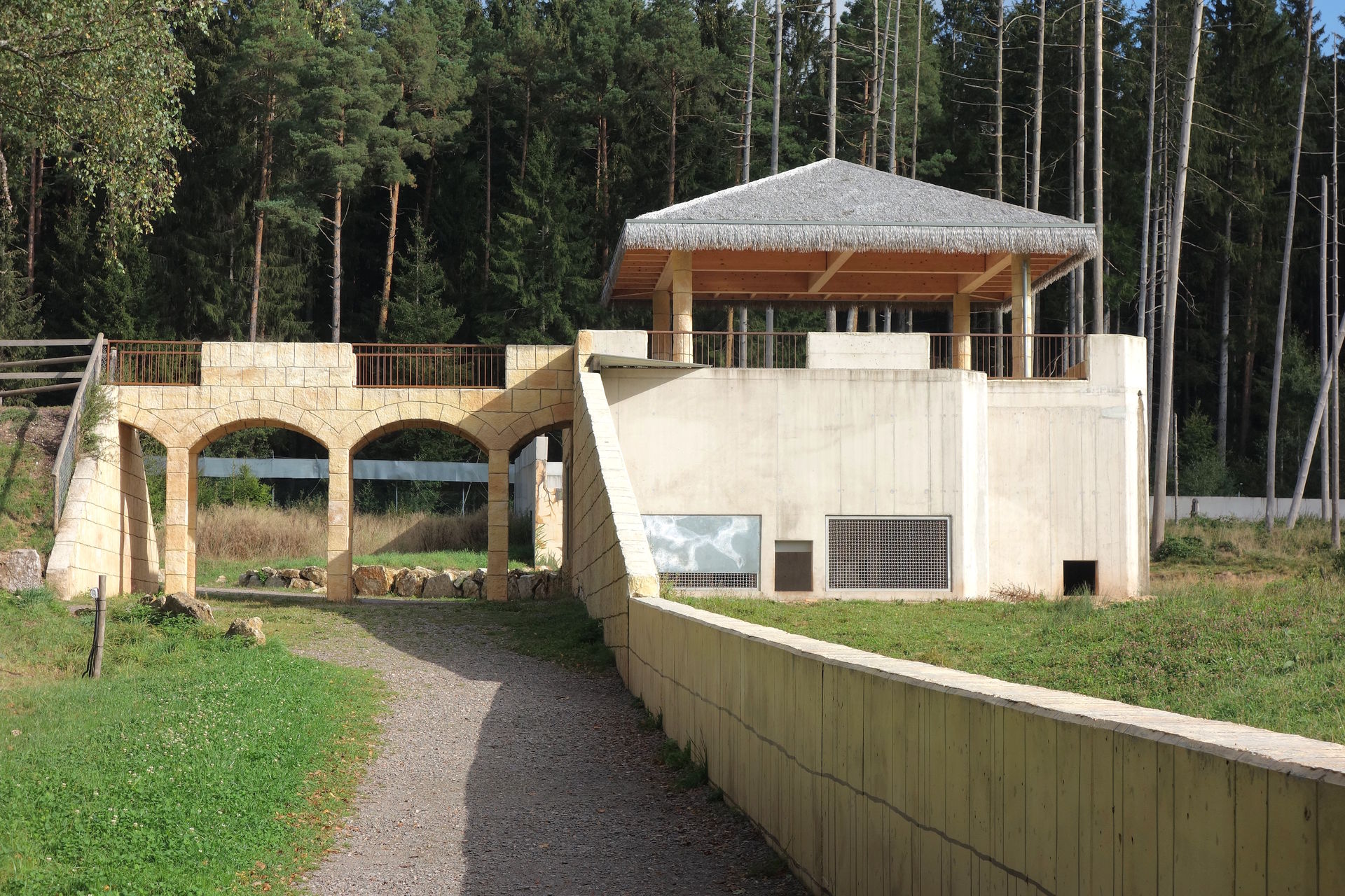 Die Aussichtsplattform befindet sich auf dem Dach der Stallungen und ist auch per Aufzug erreichbar.