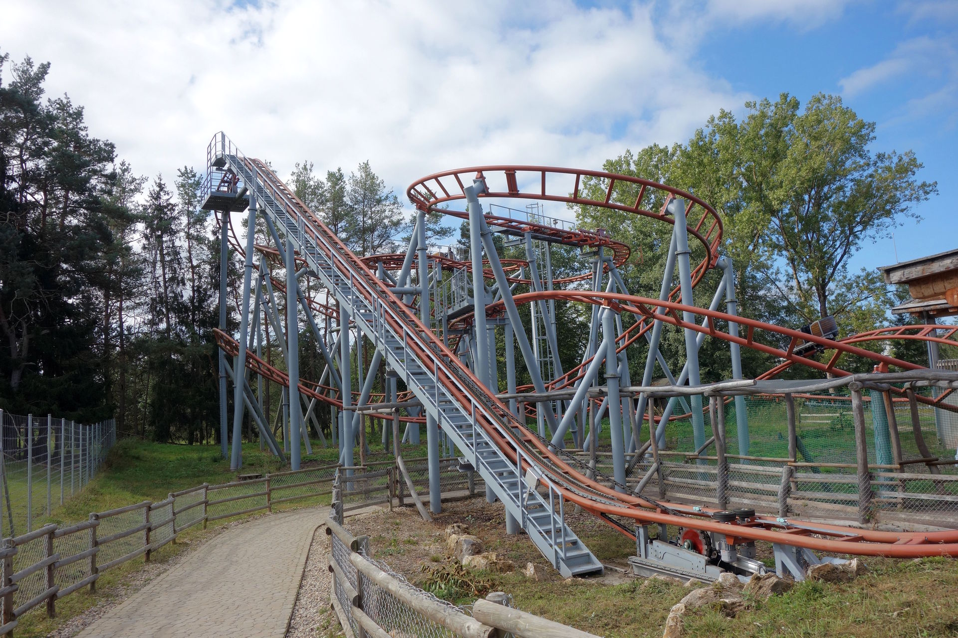 Die 320 Meter lange Anlage mit zwei Drops war 2004 hinter dem Bärengehege - also heute der Indoor-Spielhalle - eröffnet und nach der Übernahme des Parks durch die Brauns abgerissen worden. Den See hat man zudem trockengelegt. Der zweite, rechteckige See direkt nördlich davon (also gleich hinter dem Standort des Piratenschiffs) scheint dagegen noch zu bestehen. Dort war früher eine Floßfahrt zu finden. Nun ist der gesamte Parkteil östlich der Halle und südlich der Goldrusher-Achterbahn für Besucher gesperrt. Ich bin gespannt, was man dort in Zukunft noch vorhat, immerhin ist der Bereich auf dem Parkplan nach wie vor eingezeichnet, nur eben ausgegraut.