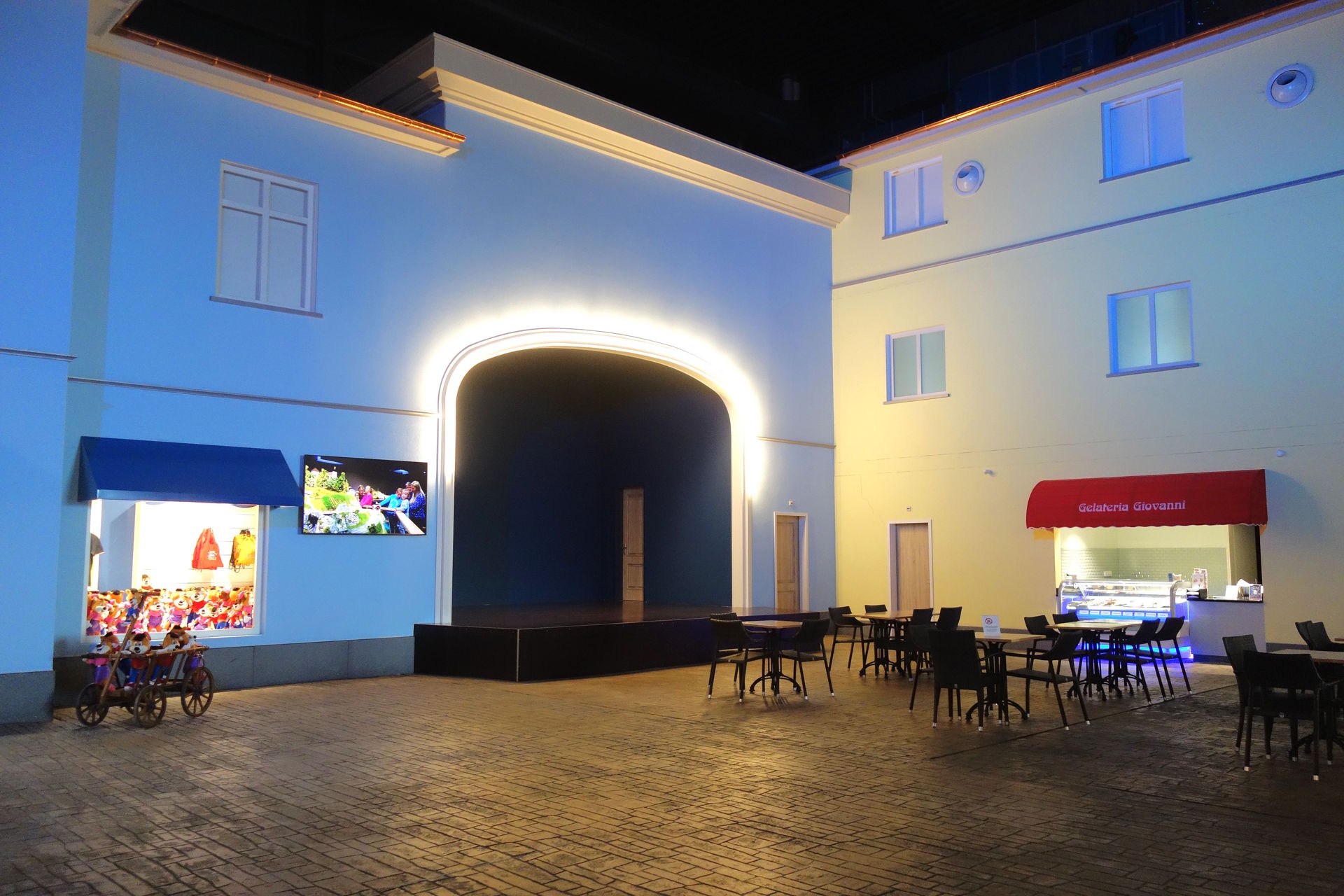 Auf der anderen Seite gibt es eine kleine Bühne, einen von uns nicht besuchten Shop und eine Gelateria.