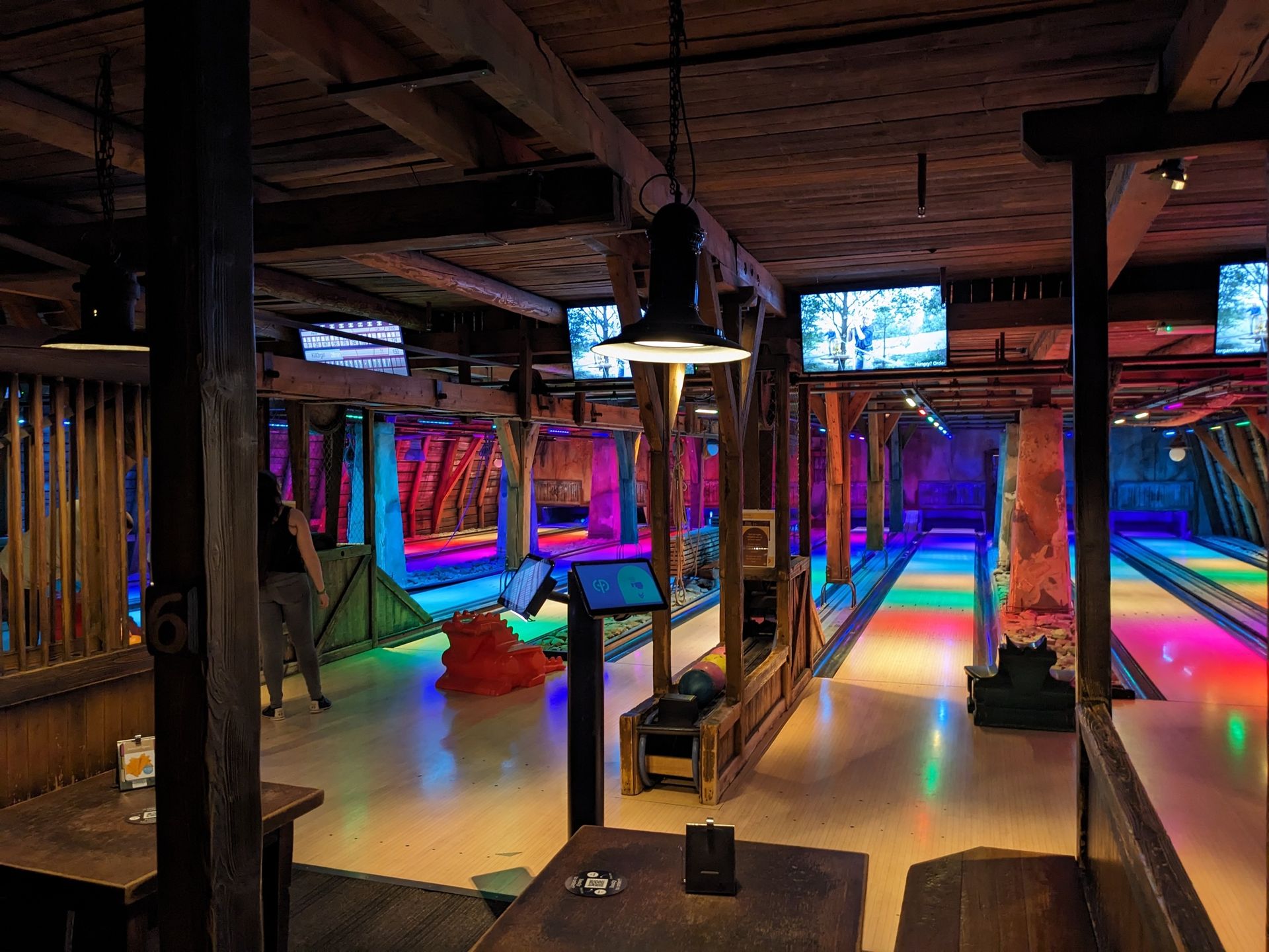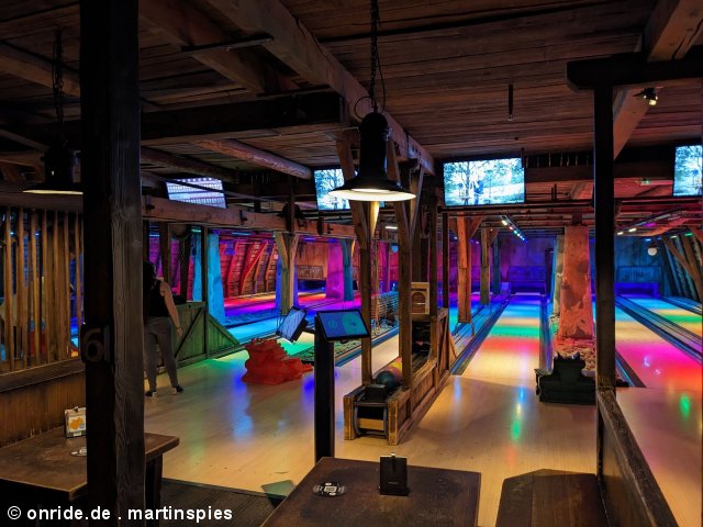 ...erreicht man in drei Schritten noch die Bowlinganlage mit Bar: