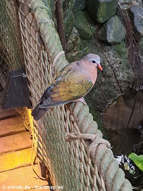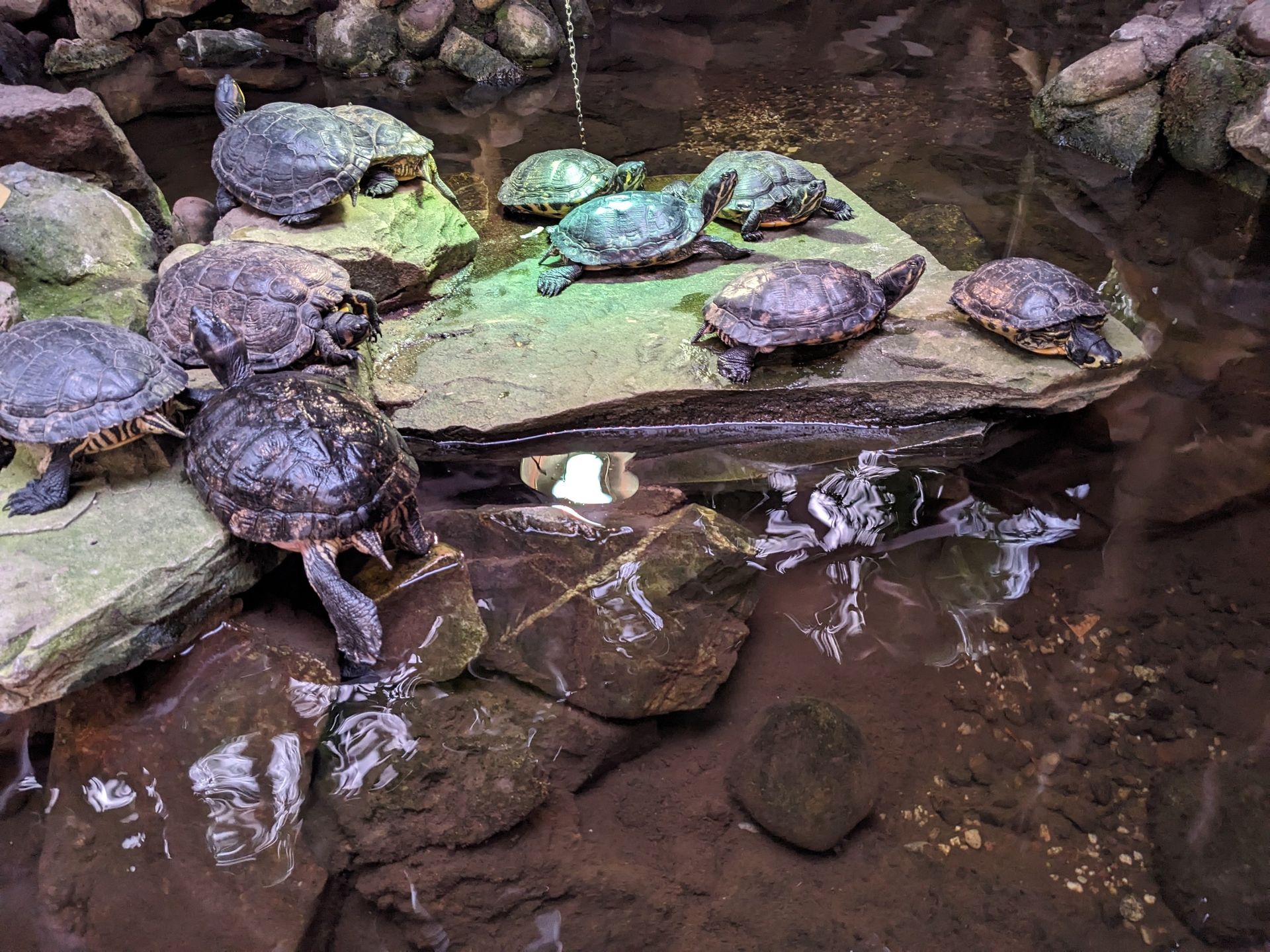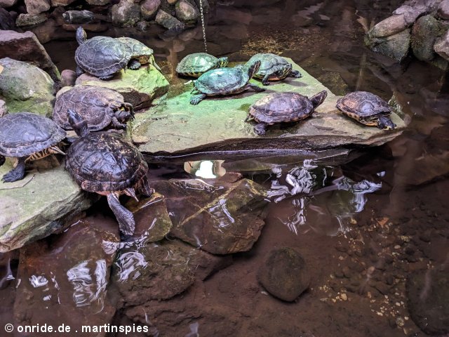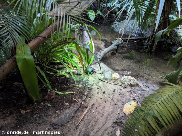Auch einige Tiere leben in der Halle, insbesondere Vögel und Schilddkröten: