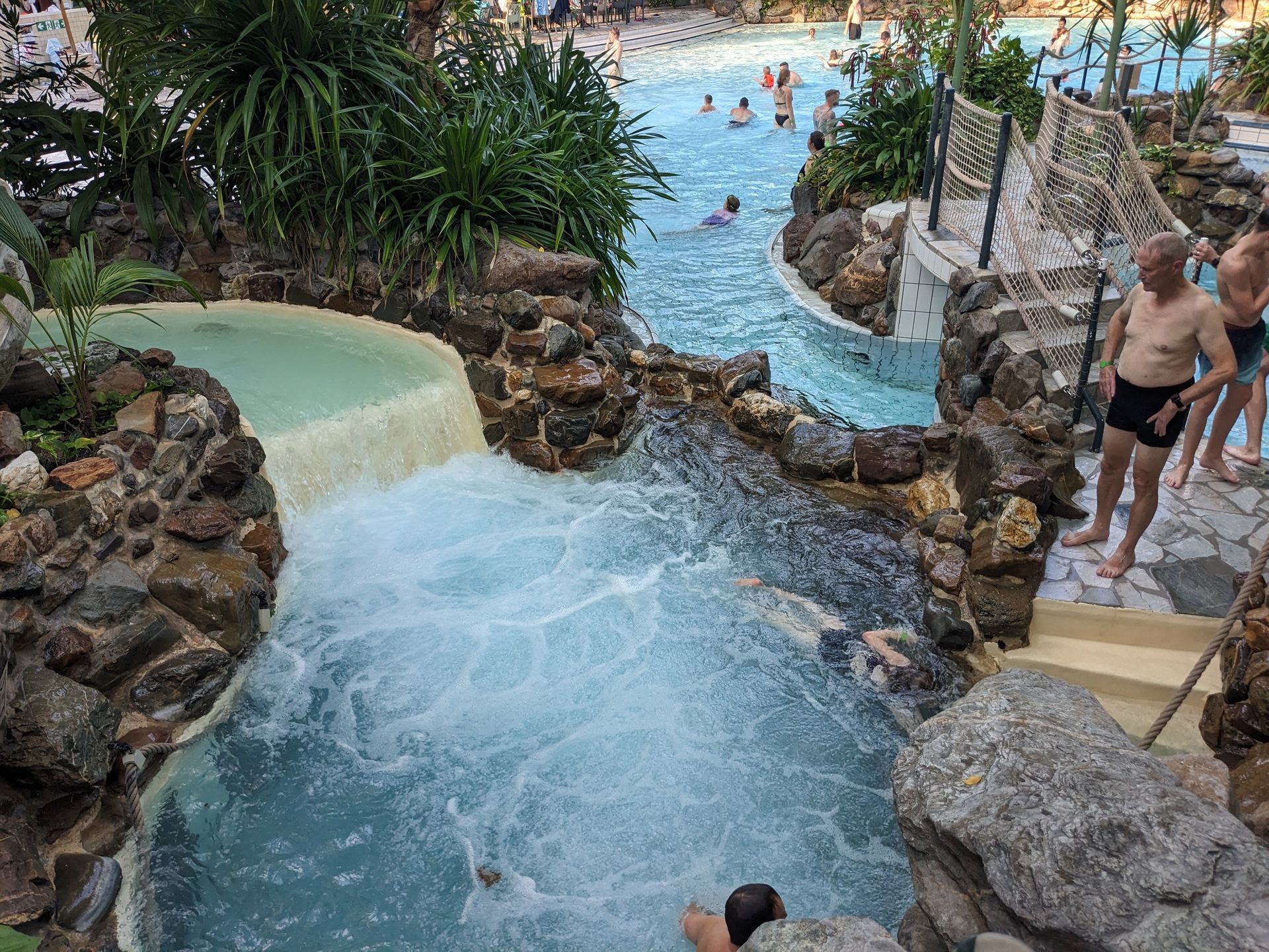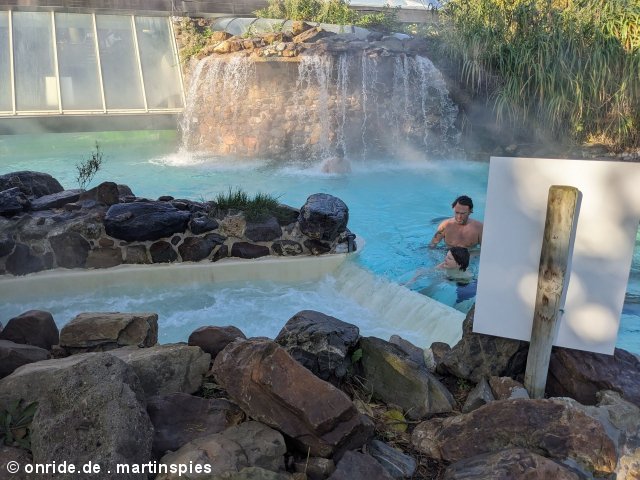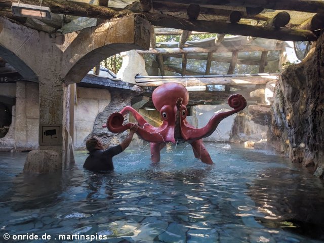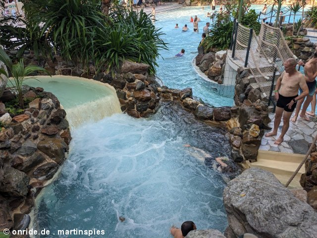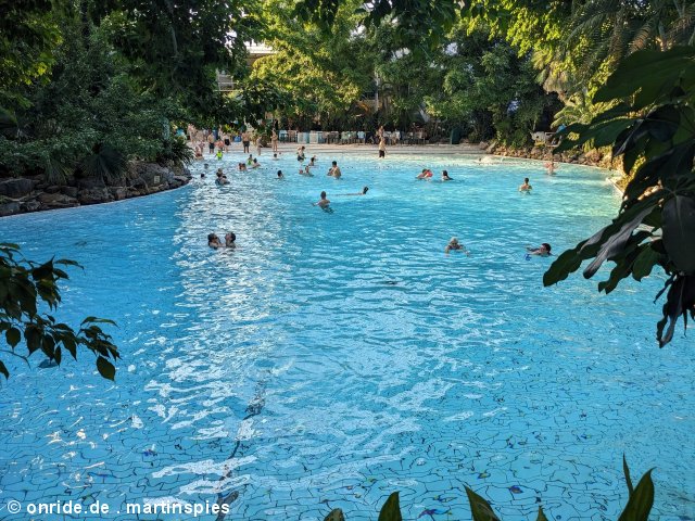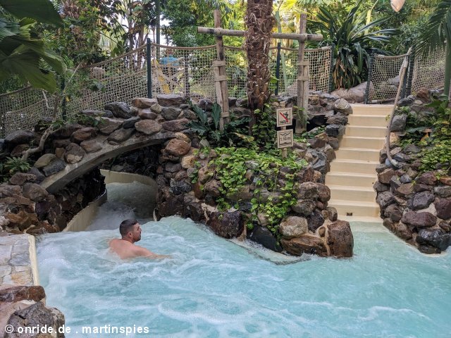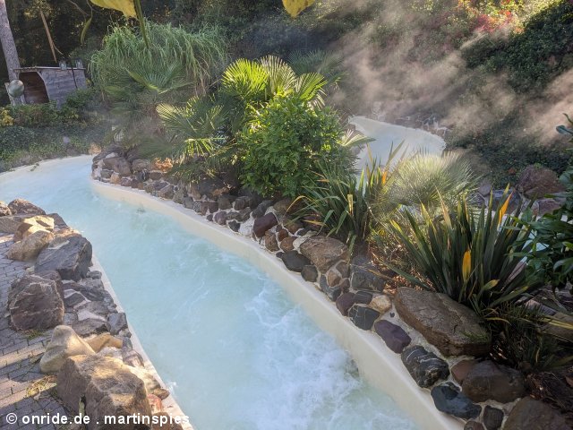 Viel wichtiger aber: Auch der Wildwasserfluss startet vom Außenbecken aus: