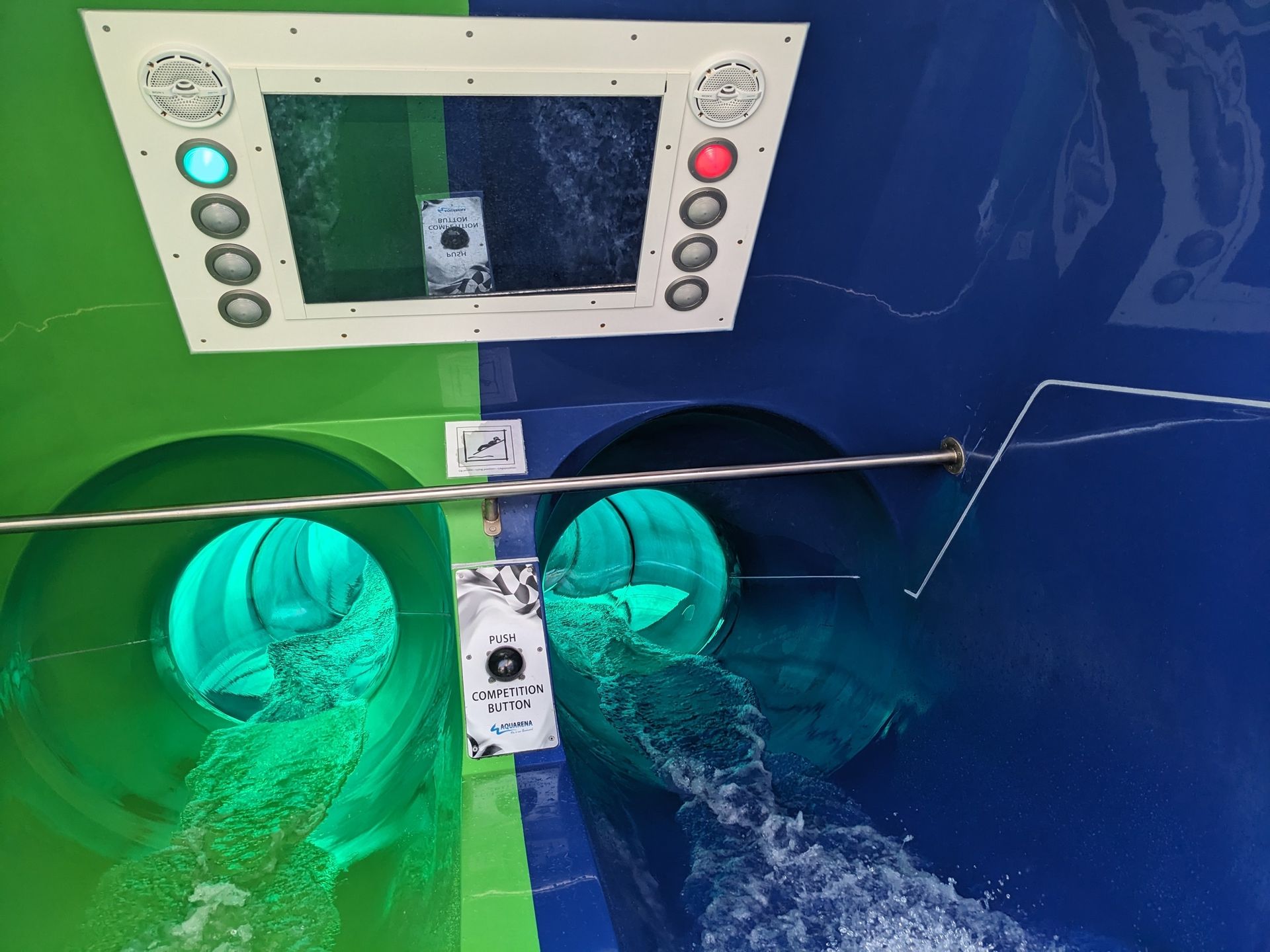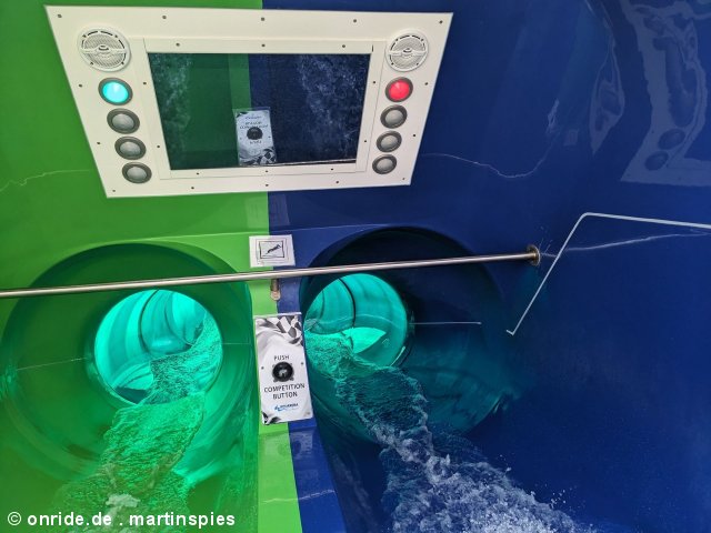 Die beiden Rutschen lassen sich synchronisieren für ein Wettrennen: