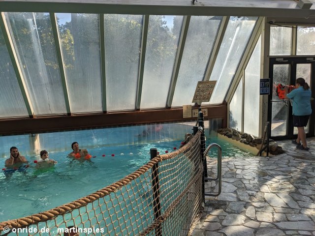 Gegenüber liegt das andere Kinderbecken, auch wenn der Einstieg (zumindest aus Richtung der Halle) etwas beschwerlich ist: