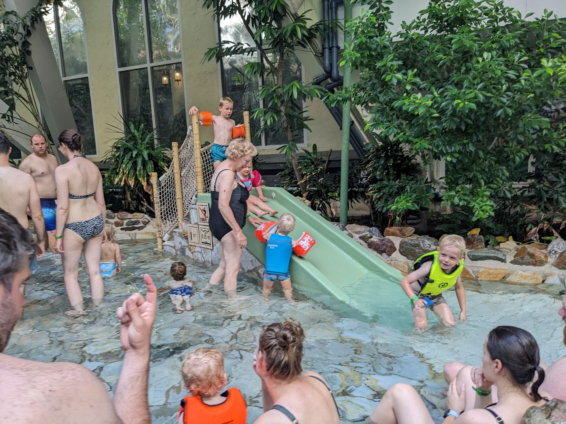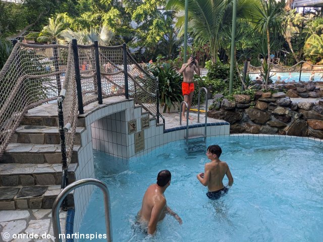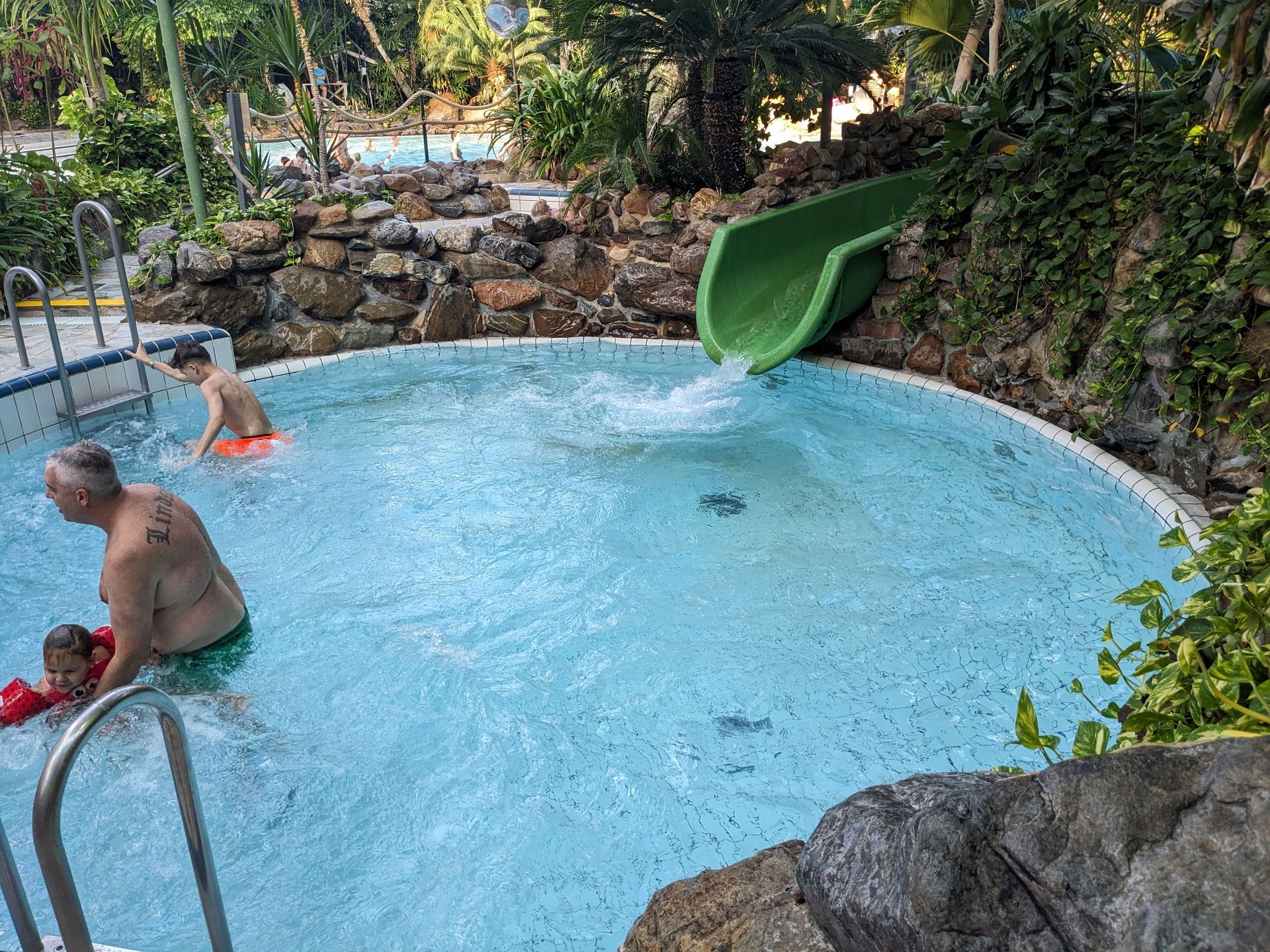 Schließlich endet die Rutsche mit eimem Plumps in diesem Neebenbecken des Wellenbeckens: