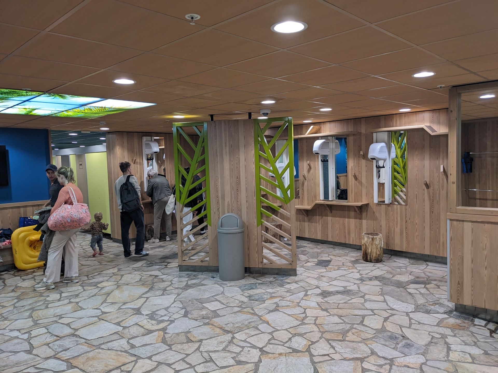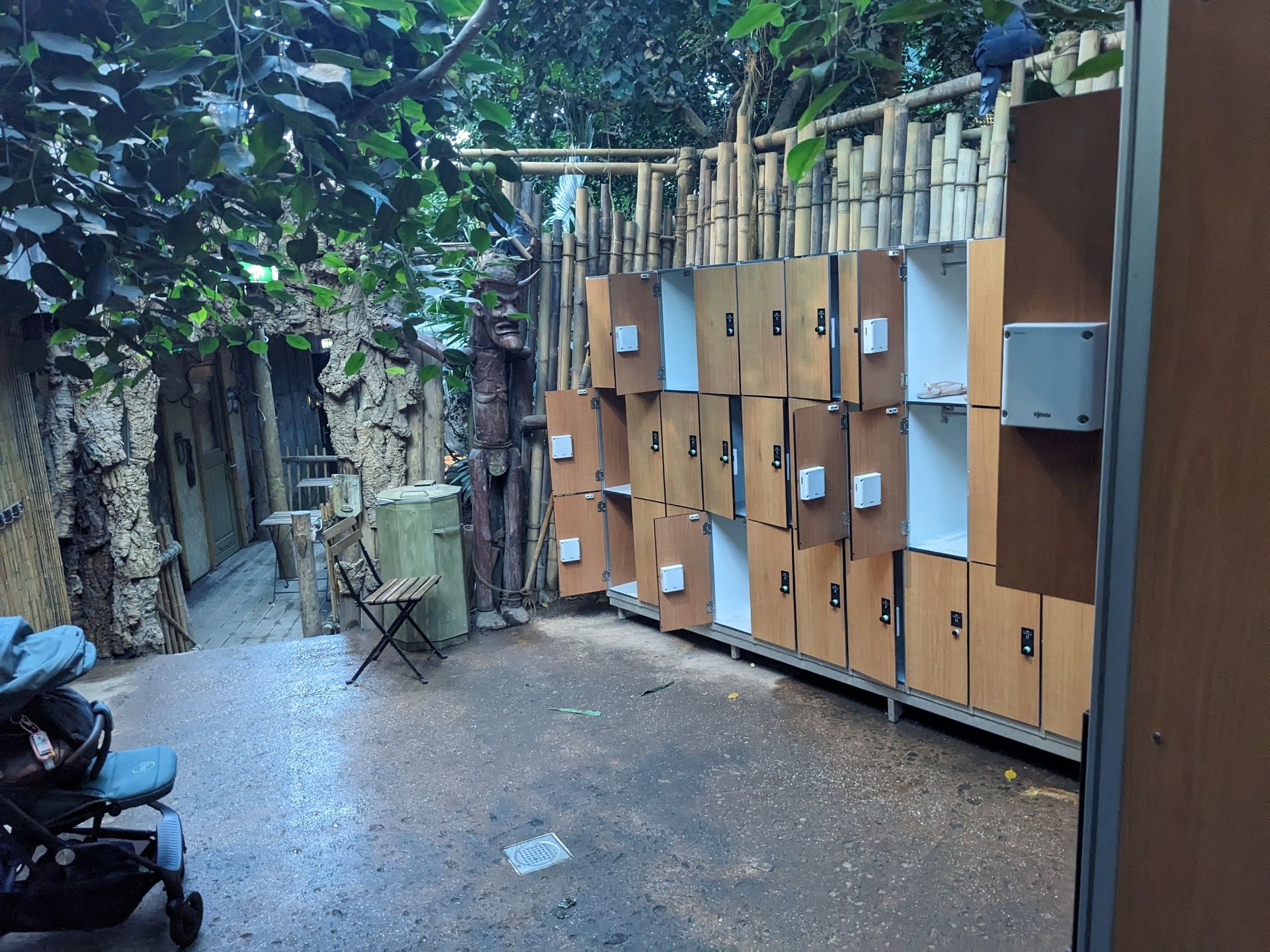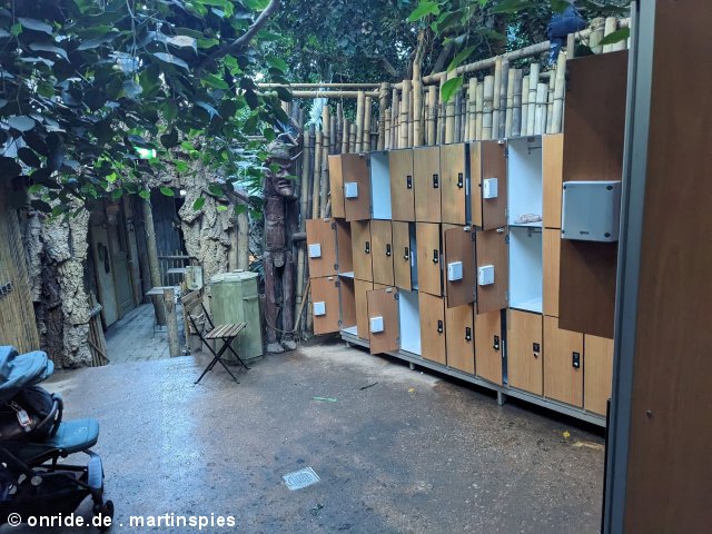 Neben dem Eingang stehen Schließfächer für die Winterklamotten von draußen bereit: