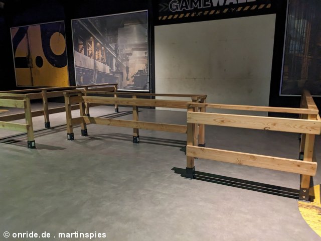 Offenbar war das Landebecken hier früher mit dem Wellenbecken verbunden, wurde dann aber abgetrennt.