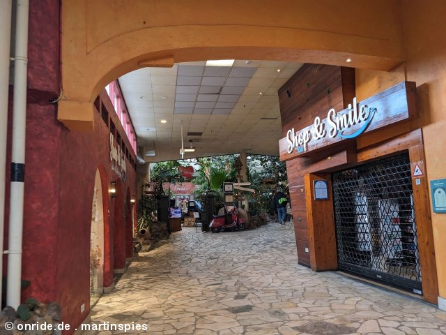 So gelangt man auch trockenen Fußes durch den Marketdome zum Highlight eines jeden Center Parcs, dem Aqua Mundo: