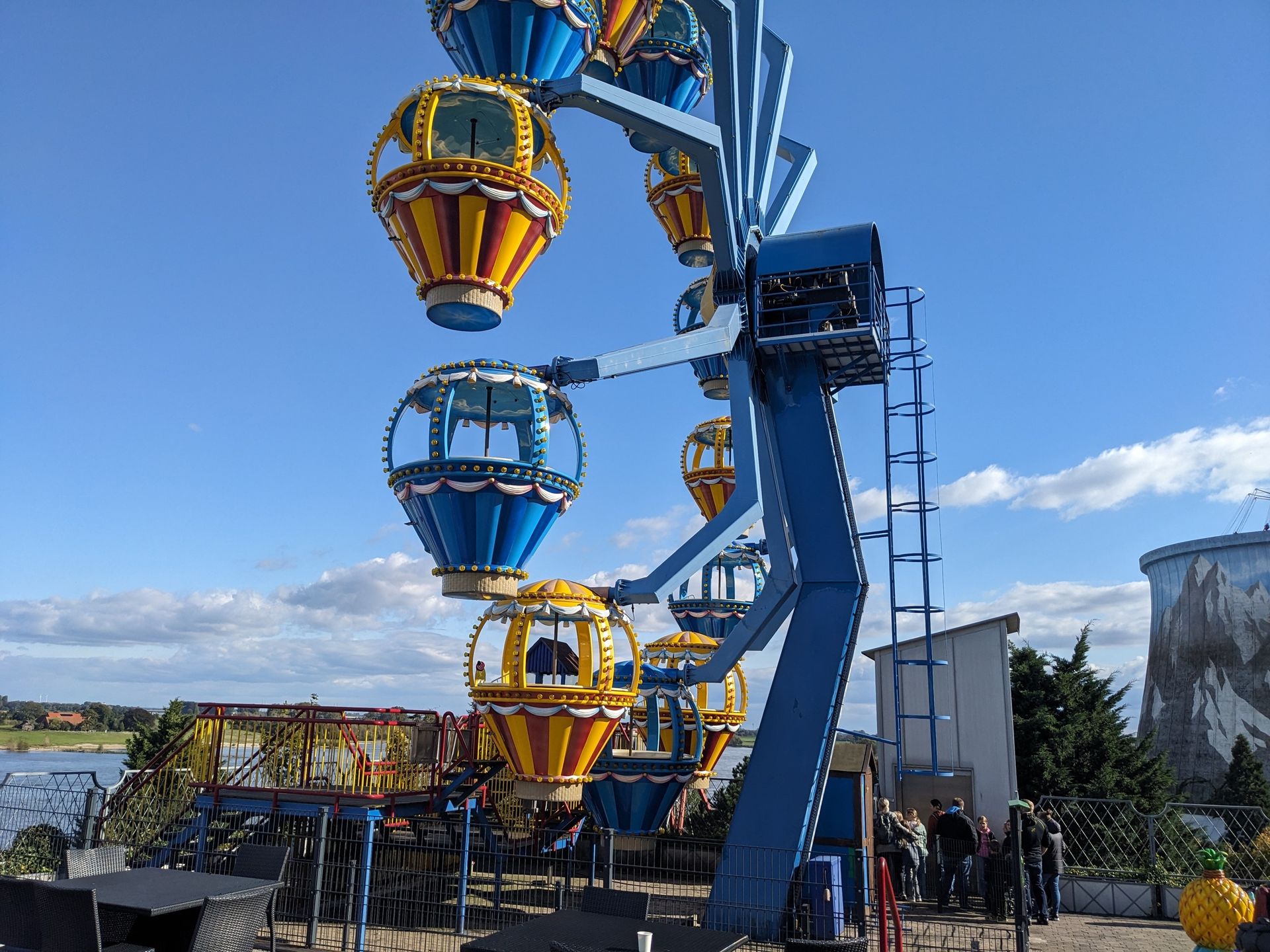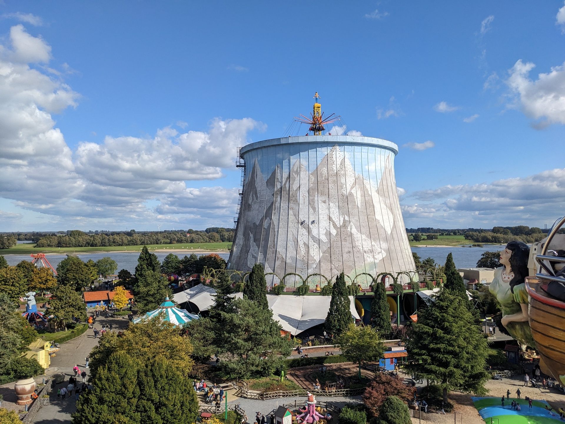 Der ikonische Kühlturm. Mit dem Karussell durfte Marie noch nicht fahren, deshalb waren wir gar nicht erst oben im Turm.