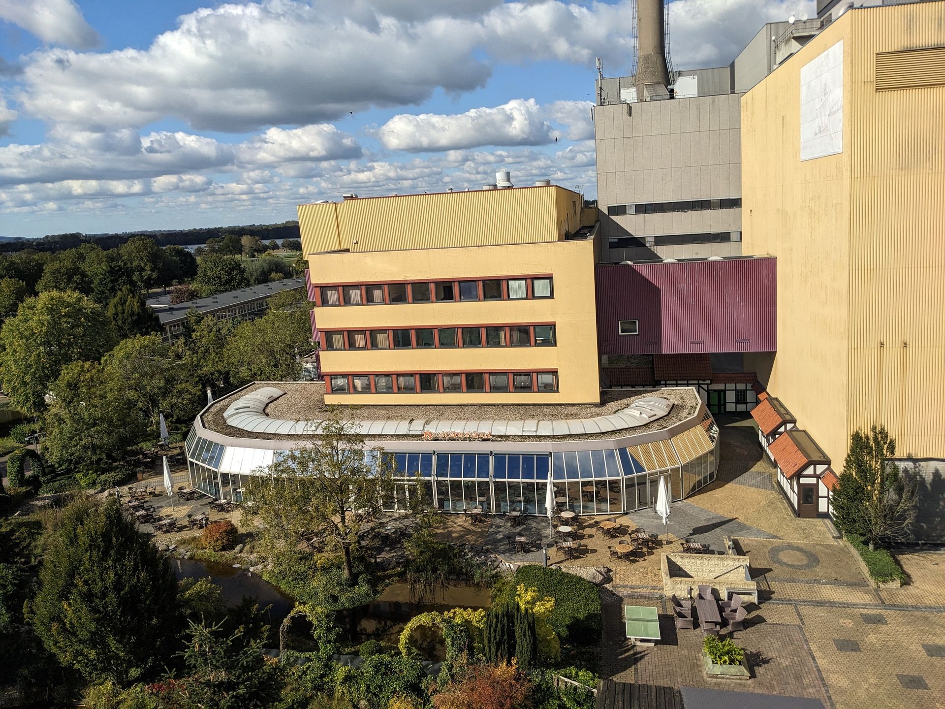 Drinnen war mal ein Museum rund um das Kernkraftwerk, ist aber jetzt geschlossen: