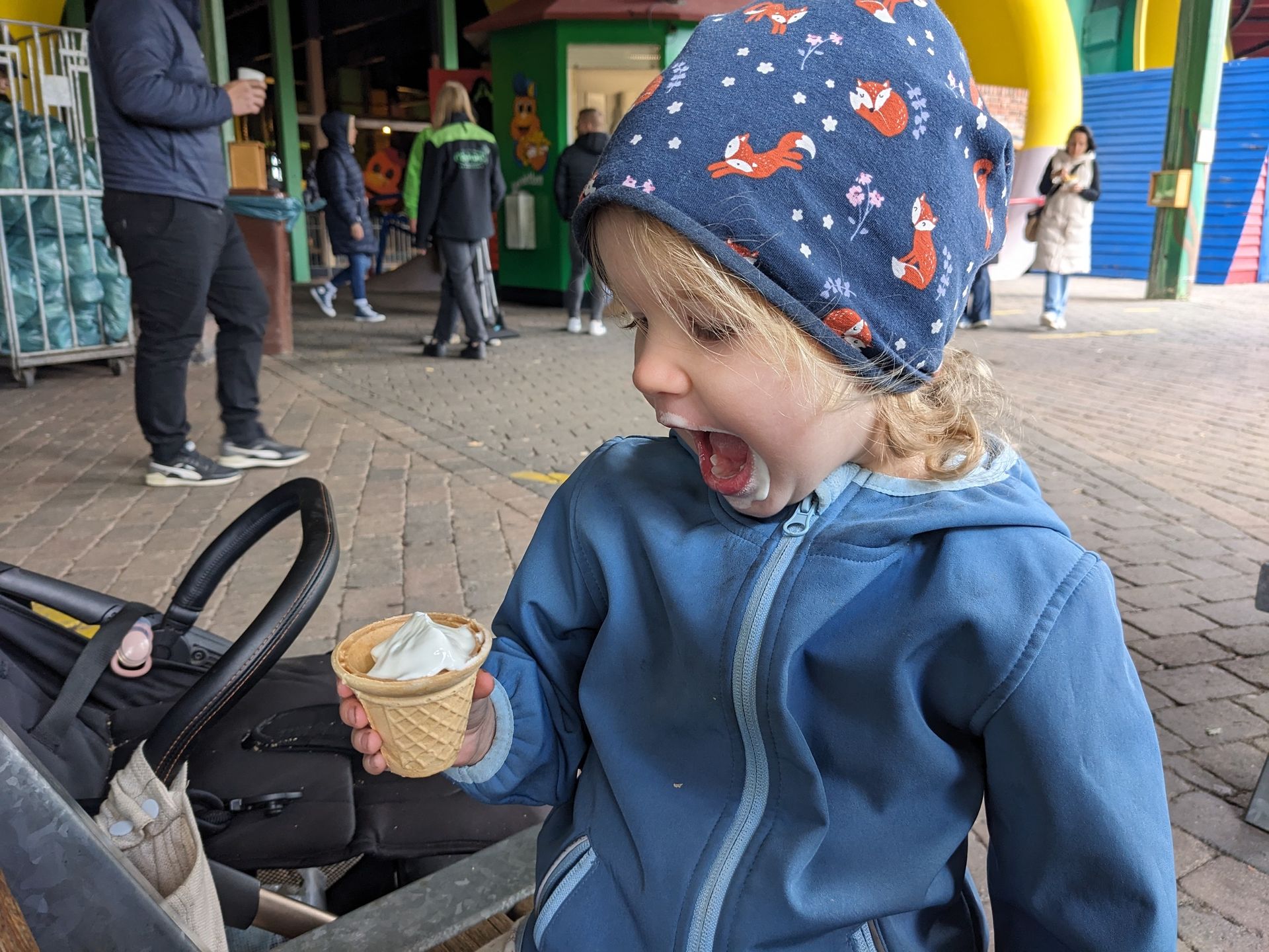Mal sehen, wie es unter dem neuen Eigentümer weitergeht. Der neue Spielplatz ist ganz nett, aber ob das die riesige Umgestaltung zum Einstand ist, lassen wir mal dahin gestellt. Trotzdem hatten wir einen schönen Nachmittag und genug Pommes und Eis intus