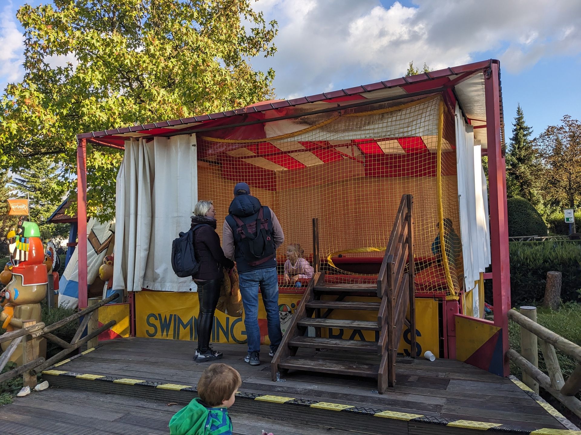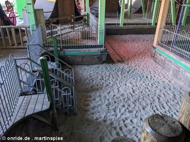 Jetzt aber zu den Spielmöglichkeiten. Früher schwammen hier, wo jetzt der Sand ist, auch noch Bumperboats: