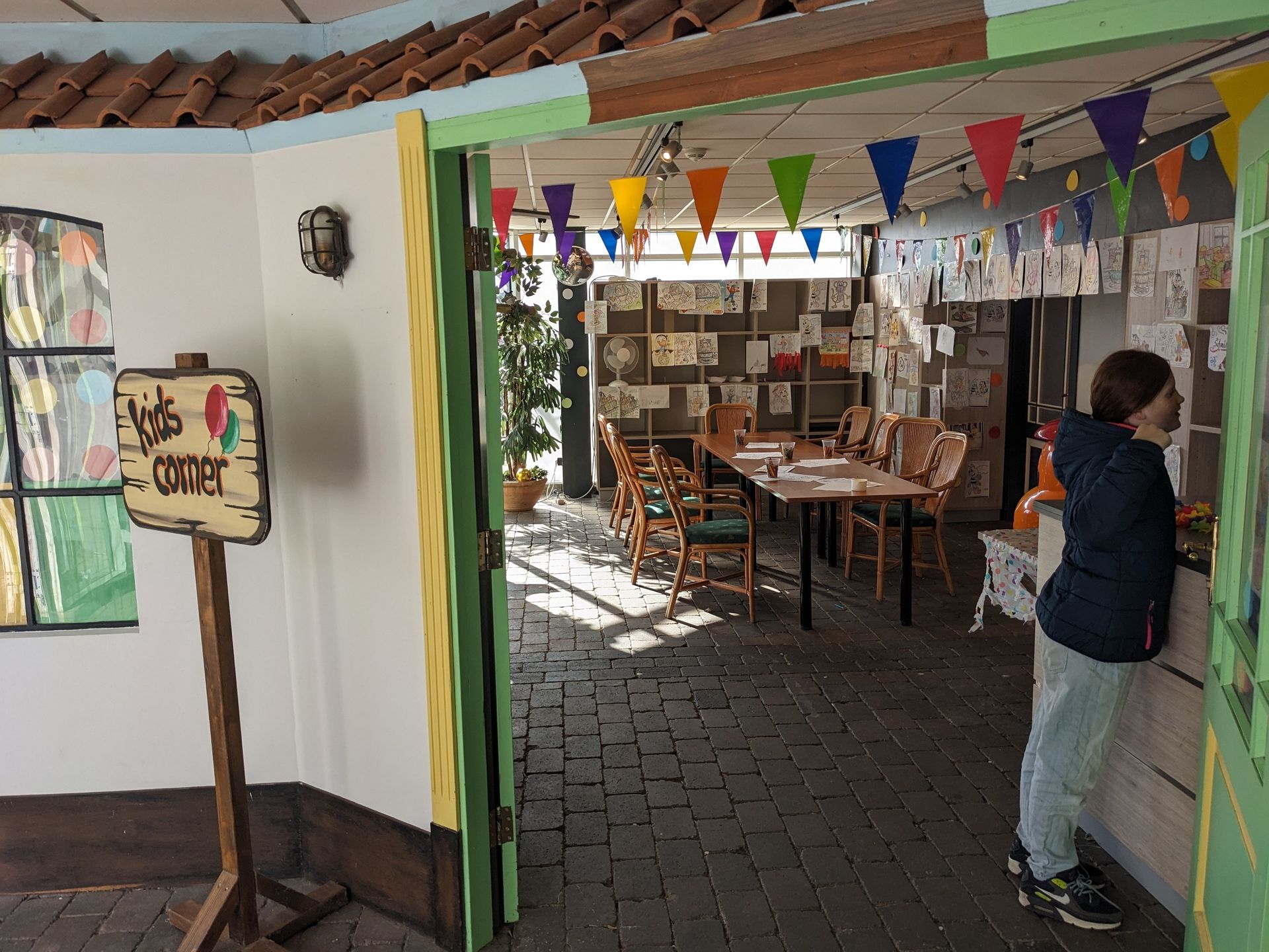 Wenn ich mich recht erinnere, findet in dem Theater (die blaue Wellblechhalle) nichts mehr statt. Dort wo unten srunter früher mal ein Shop war, ist jetzt in bischen Malzeug für Kinder ausgelegt: