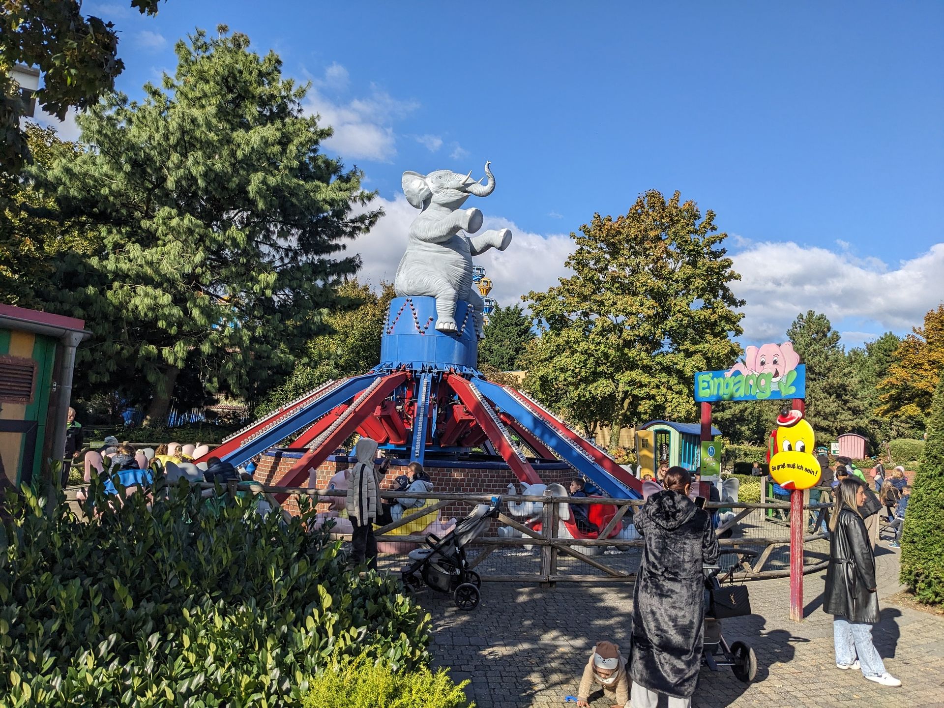 Etwas rasanter und höher sind nebenan die fliegenden Elefanten: