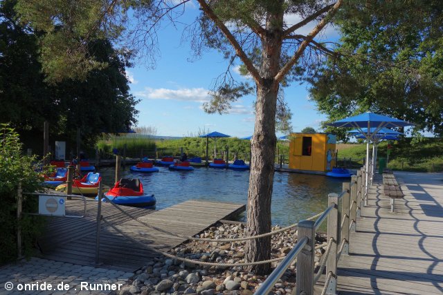 Um 16:49 Uhr waren wir die letzten Gäste, die noch eines der Mack-Boote auf dem großen See besteigen durften.