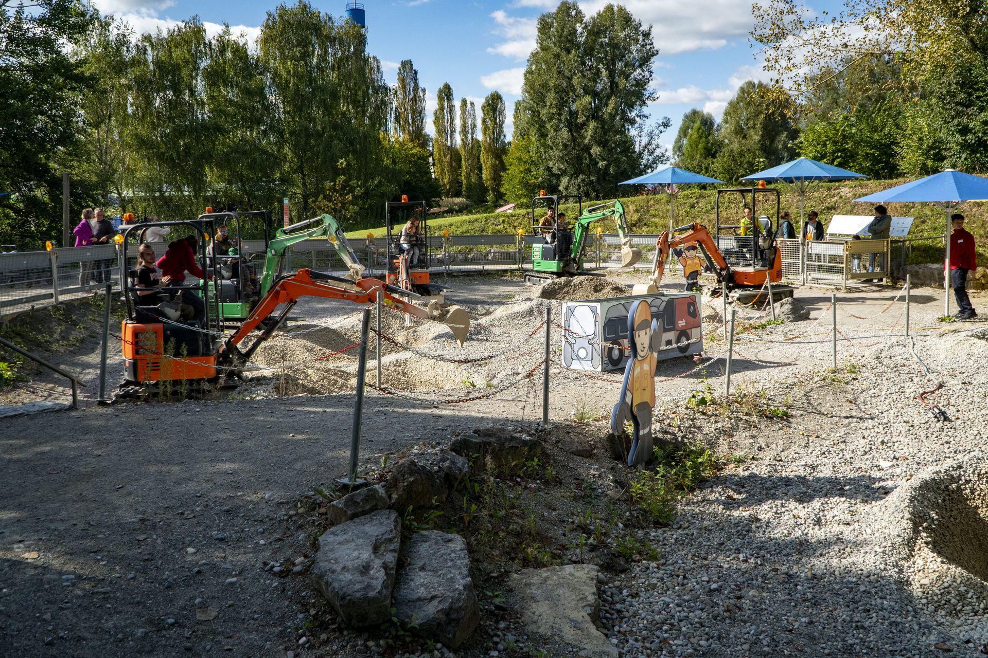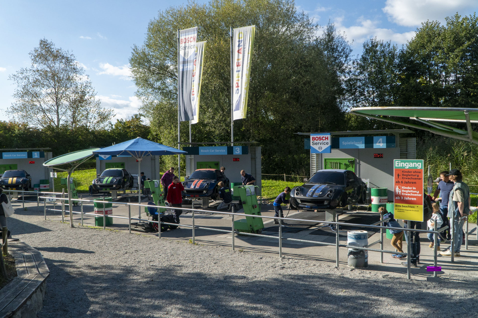 Dort können die Kleinen in einer von der ADAC Stiftung gesponserten Kinderfahrschule die Verkehrsregeln lernen, sich seit 2016 mit Bosch am Räderwechsel versuchen, oder im 2012 eröffneten Wasserspielplatz plantschen und spritzen. Die 1.500 m² große EnBW Energiewelt hat neben Schleusen, Pumpen und einem Wehr aber auch Erlebnisse zu Windkraft und Sonnenenergie zu bieten. Neben einem Hummel-Karussell ist die Hauptattraktion des Bereichs aber die 2005 eröffnete Adaption des Spiels Max Mäuseschreck. In einer von vier auf und ab fahrenden Mäuse-Gondeln stehend müssen mit einer Softball-Kanone die Löcher in der sechs Meter hohen Emmentaler-Wand getroffen werden.