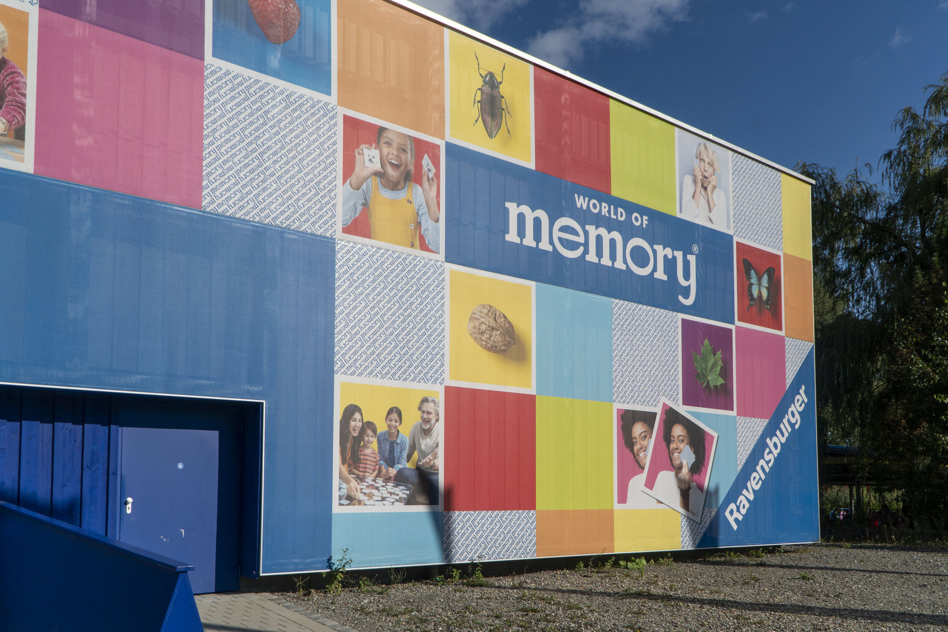 Schon zur Eröffnung des Ravensburger Spielelands konnte hier memory gespielt werden, allerdings komplett outdoor. Dabei befand sich das 5x4 Kärtchen große Spielfeld auf einer von vier großen Wänden. Vor jeder dieser Wände parkten jeweils vier Hubschrauber, in denen die Mitspieler Platz nahmen. Nacheinander deckten die Spieler über die Steuerung des Helis die gewünschten Karten auf und wenn man ein Pärchen gefunden hatte, stieg der Helikopter ein Stück nach oben. Wer zuerst ganz oben angekommen war, hatte gewonnen. Leider wurde der einzigartige memory Flug nach der Saison 2017 abgerissen und der Platz zunächst als Aktionsfläche genutzt. 2023 kehrte memory dank der aufwind Group zurück - wobei sich der Blechhallen-Klotz mitten im Park nicht besonders gut in die Landschaft integriert. Aber es zählen ja die inneren Werte, und die sollen hier wirklich gut sein. In einer memory-Fabrik nimmt man auf einer Vierer-Sitzbank Platz, die sich als Multi-Motion-Plattform entpuppt, mit der man die verschiedenen Szenen abfährt. Dabei reist man durch verschiedene Welten und spielt zwischendurch immer wieder memory, indem man über einen Joystick die gewünschten Karten auswählt und aufdeckt. Wirklich ärgerlich, dass wir hierfür zu spät dran waren.
