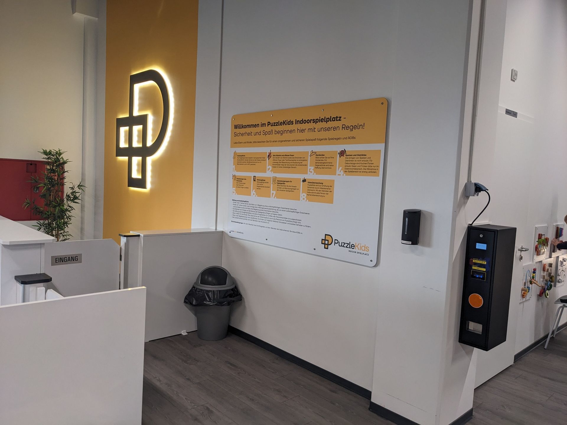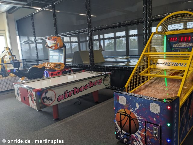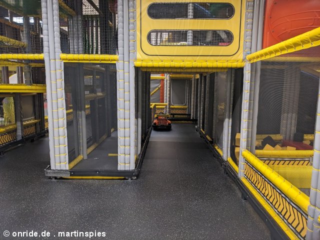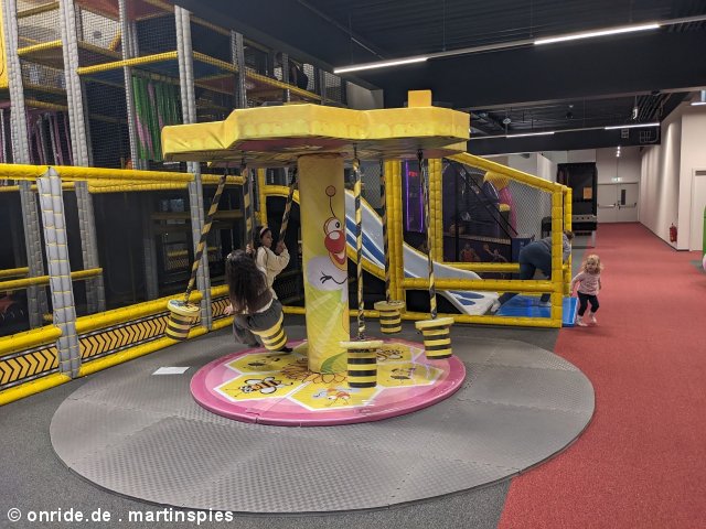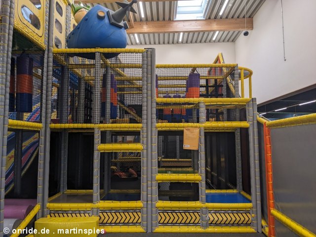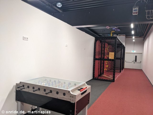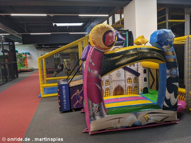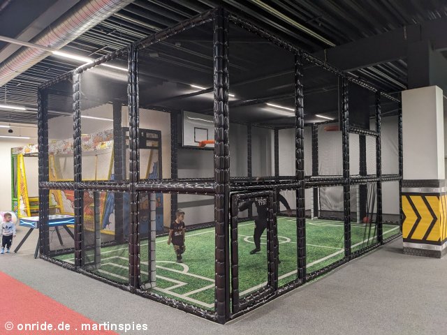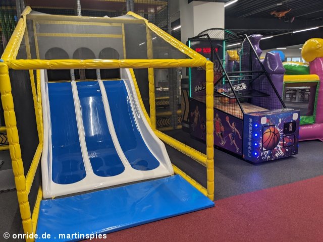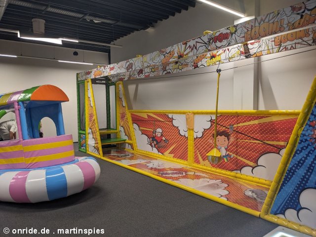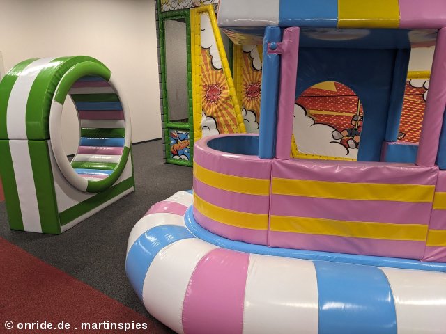 Warum hat man aber Eingang und Gastrotheke räumlich von einander getrennt? Das habe ich noch nie in einer Kinderspielhalle gesehen und erweist sich auch hier als unpraktisch. Immer wenn jemand Eintritt bezahlen will, muss ein Mitarbeiter aus der Gastro da rüber laufen...