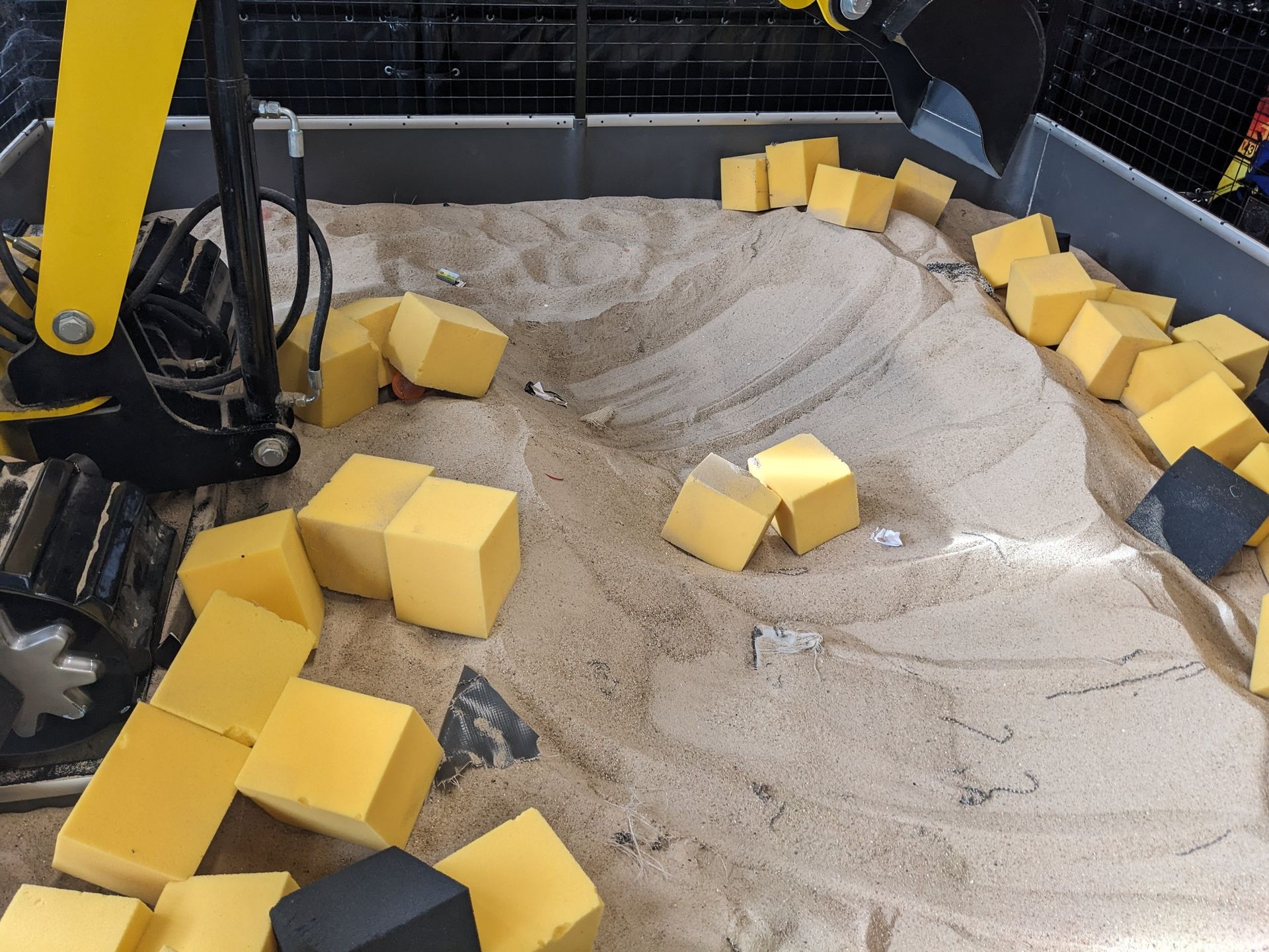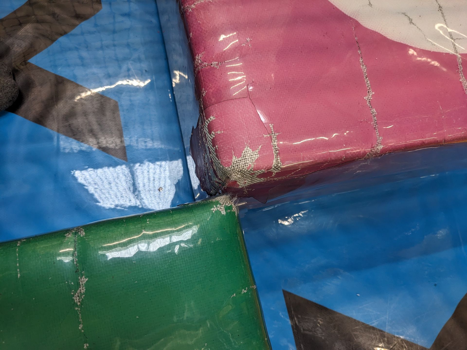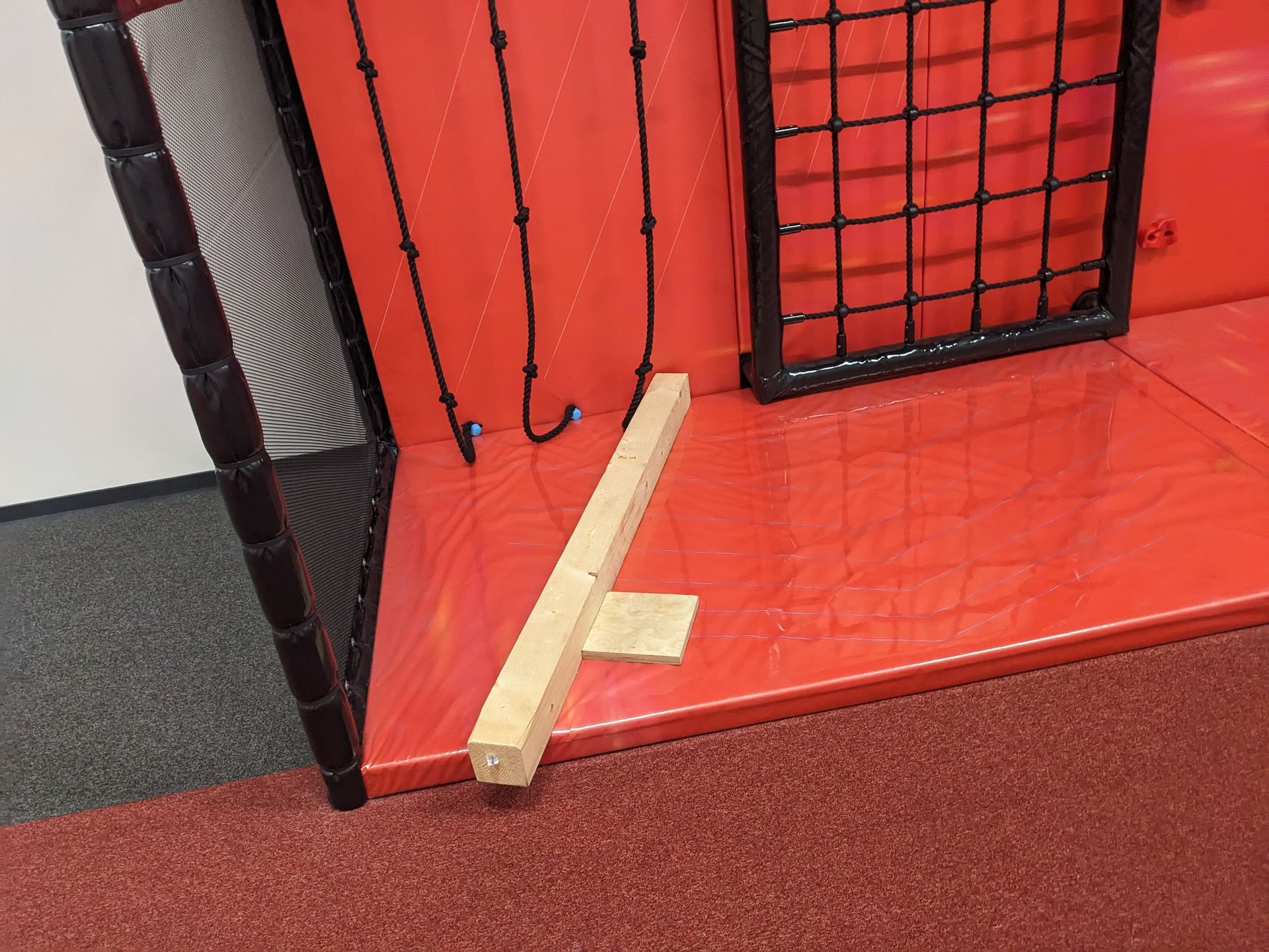 Unter der Kletterwand liegen random irgendwelche Holzbalken rum: