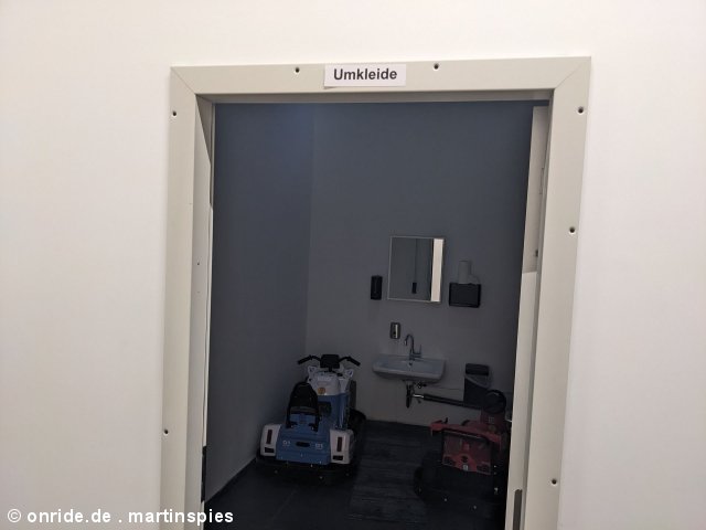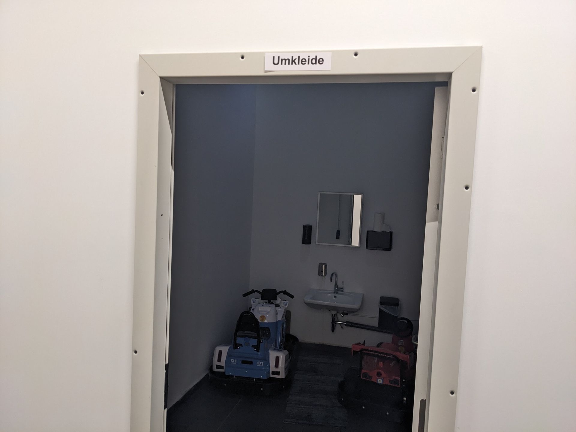 Die Umkleide ist zum Parkplatz umfunktioniert: