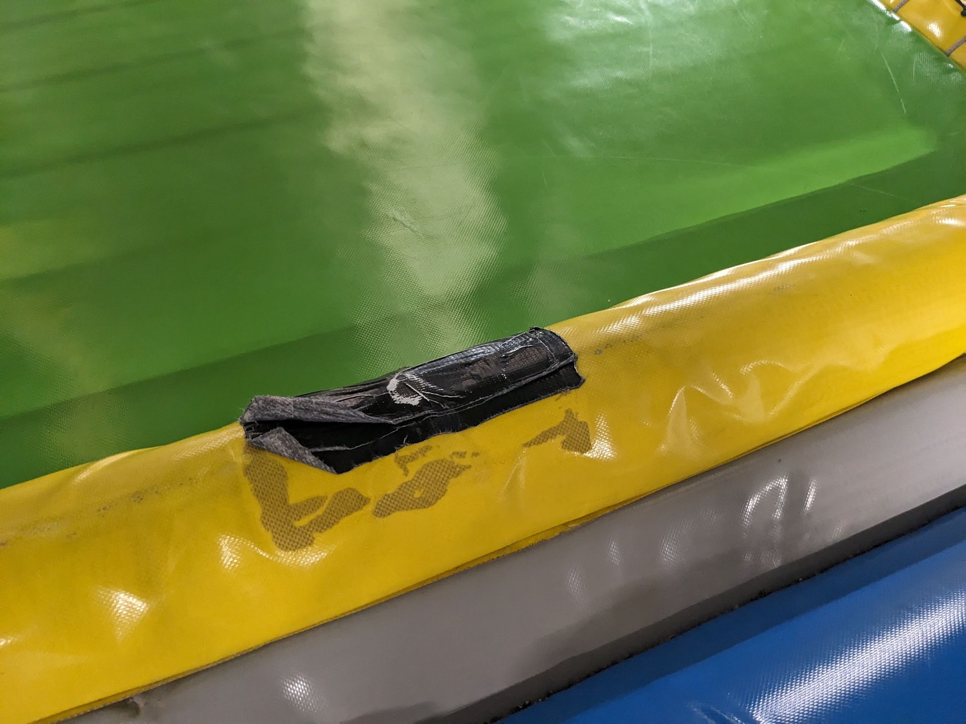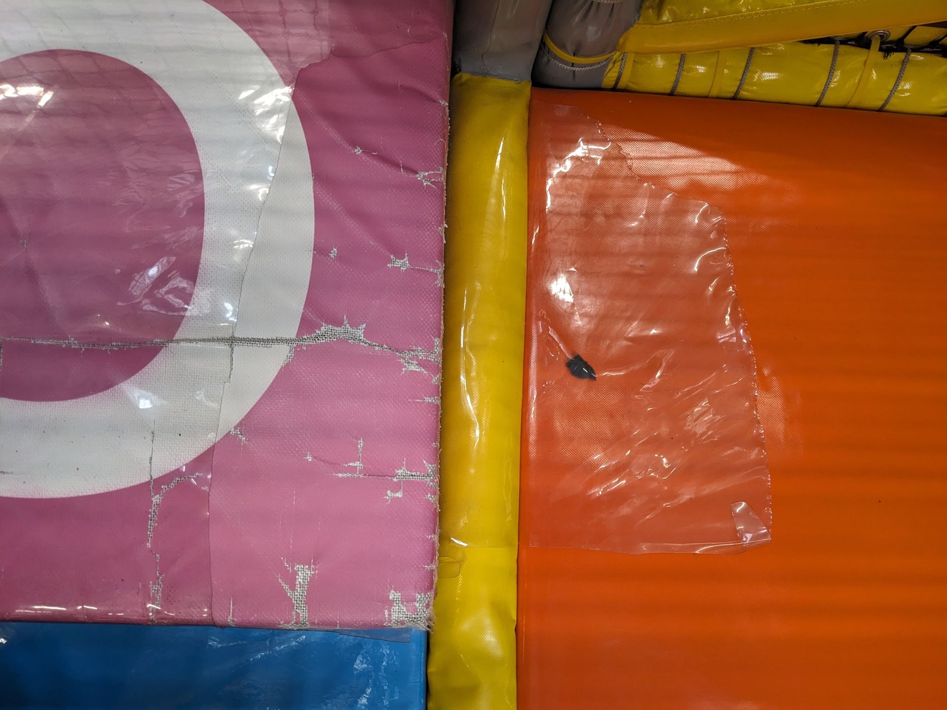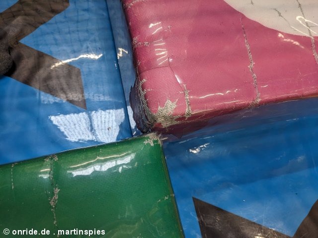 Dafür, dass die Anlage gerade ein Dreivierteljahr alt ist, fand ich den Zustand erschreckend. Überall fehlen Knopfe und Griffe, das Klettergerüst ist abgenutzt und mitten im Lauf-/Krabbelweg kommen Schraubenköpfe raus.