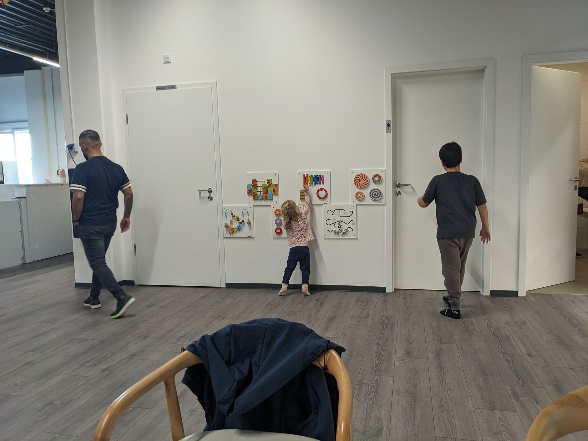 Erste Spielmöglichkeiten an der Wand zwischen den Toiletten: