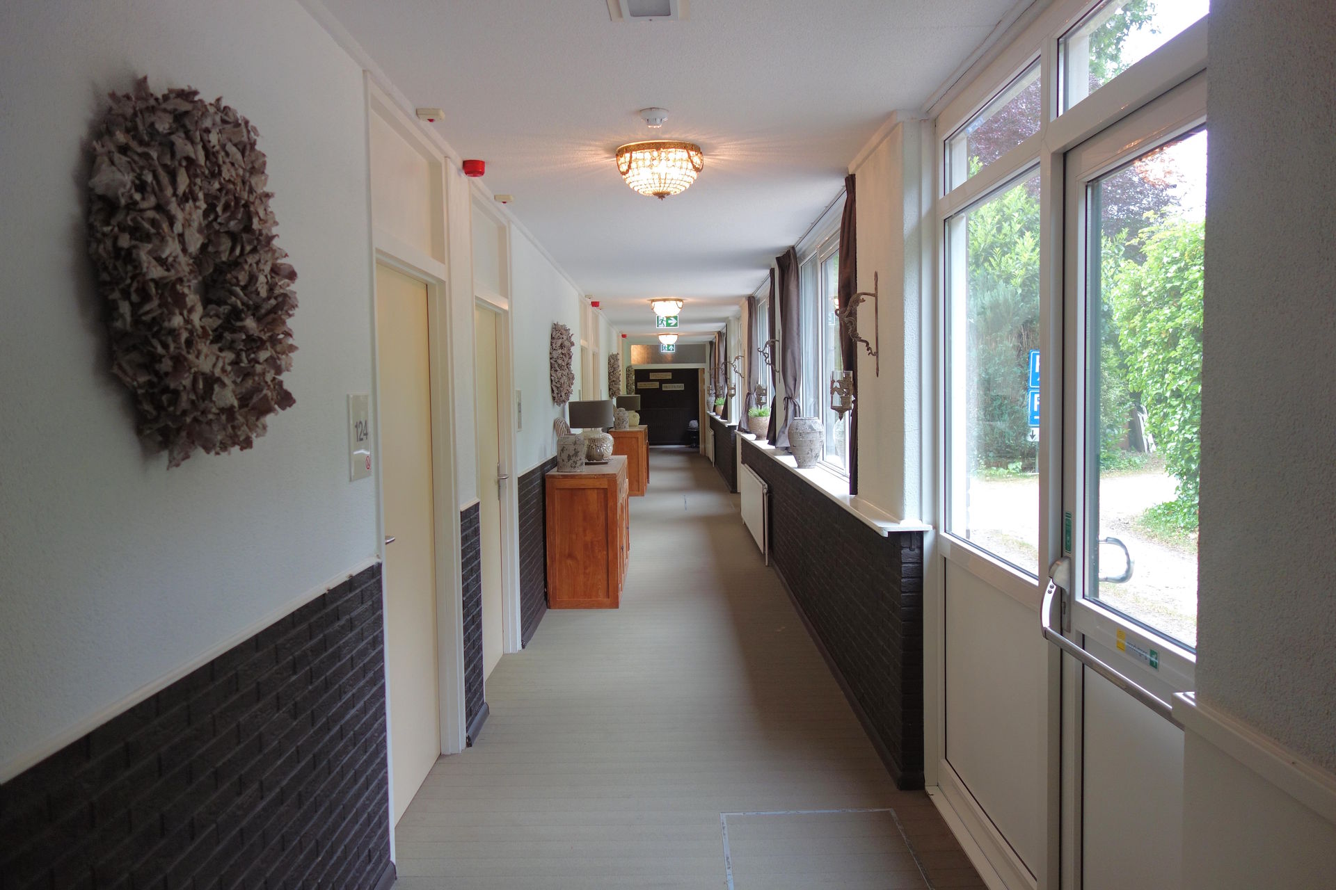 Mein Zimmer lag an der Stirnseite des Anbaus, wo sich der straßenseitige Gang und der hier zu sehende Gang auf der Rückseite des Grundstücks treffen.