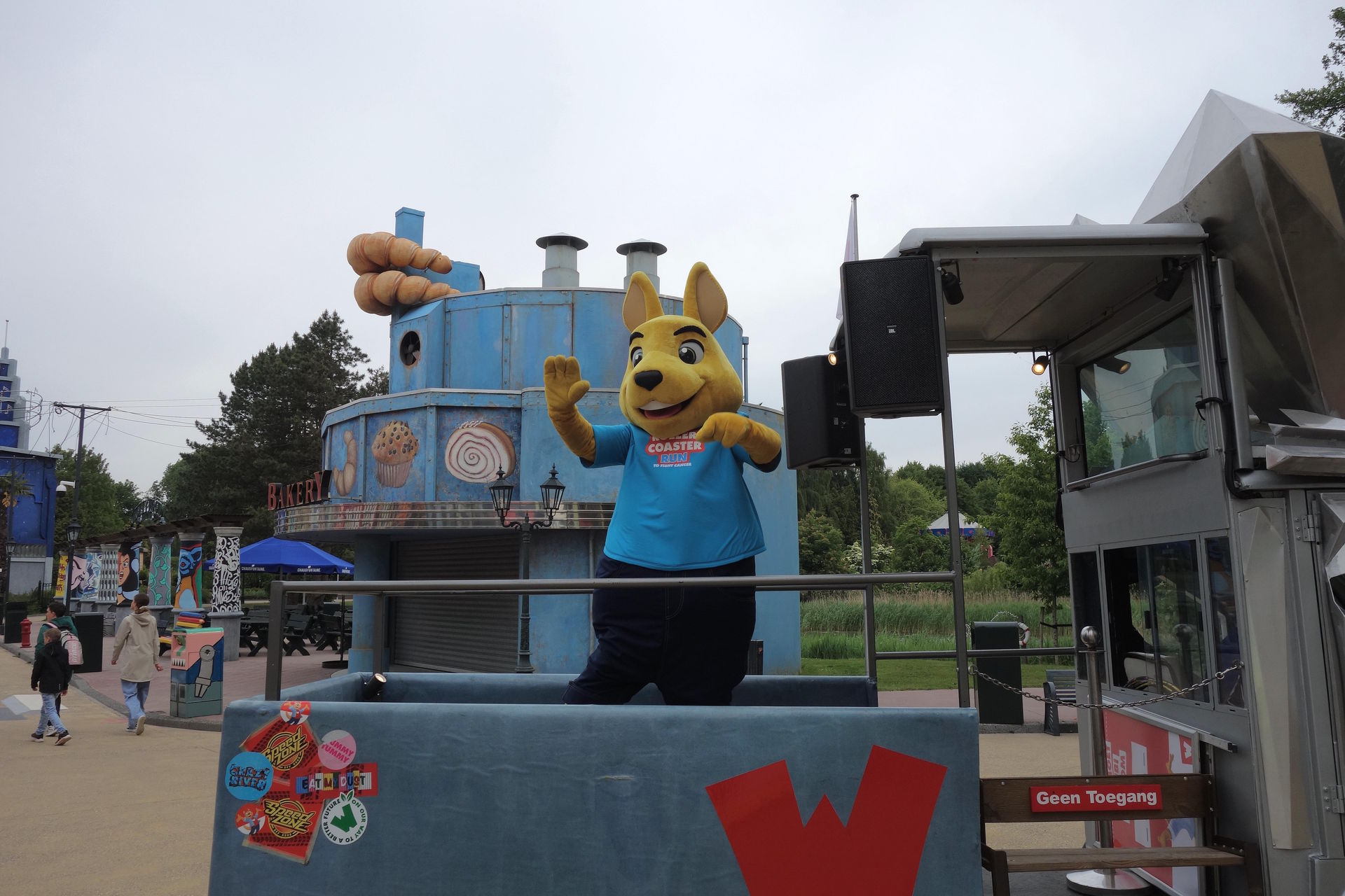 Um damit durch den Park zu fahren und die Besucher zu begrüßen. An diesem Tag natürlich im Rollercoaster-Run-Look.