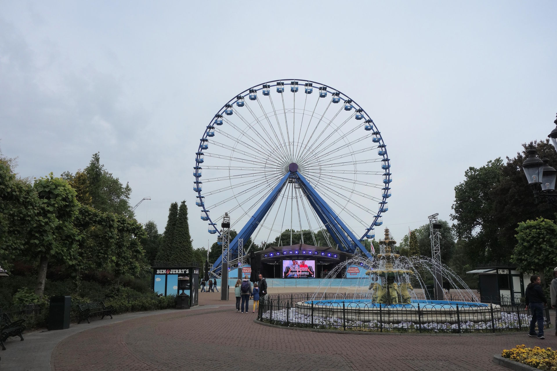 Was ich aber nicht wollte. Für mich ging es weiter geradeaus zum großen Platz mit Brunnen und Bühne vor dem Riesenrad.