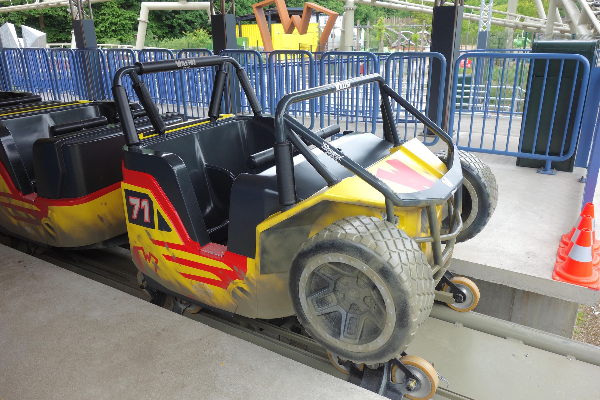 Kaum im Park rollte mir dieses schnittige Gefährt entgegen. Parkmaskottchen Walibi hatte es wohl 2022 angeschafft.