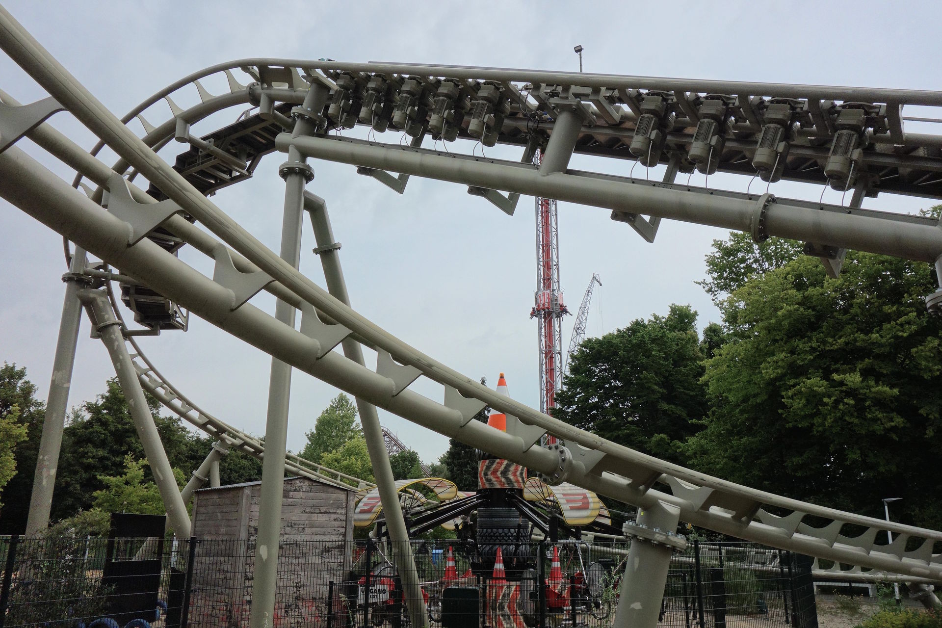 Für die modernen Vekoma-Züge mit Westenbügeln mussten an einigen Stellen nämlich die Stützen modifiziert werden.