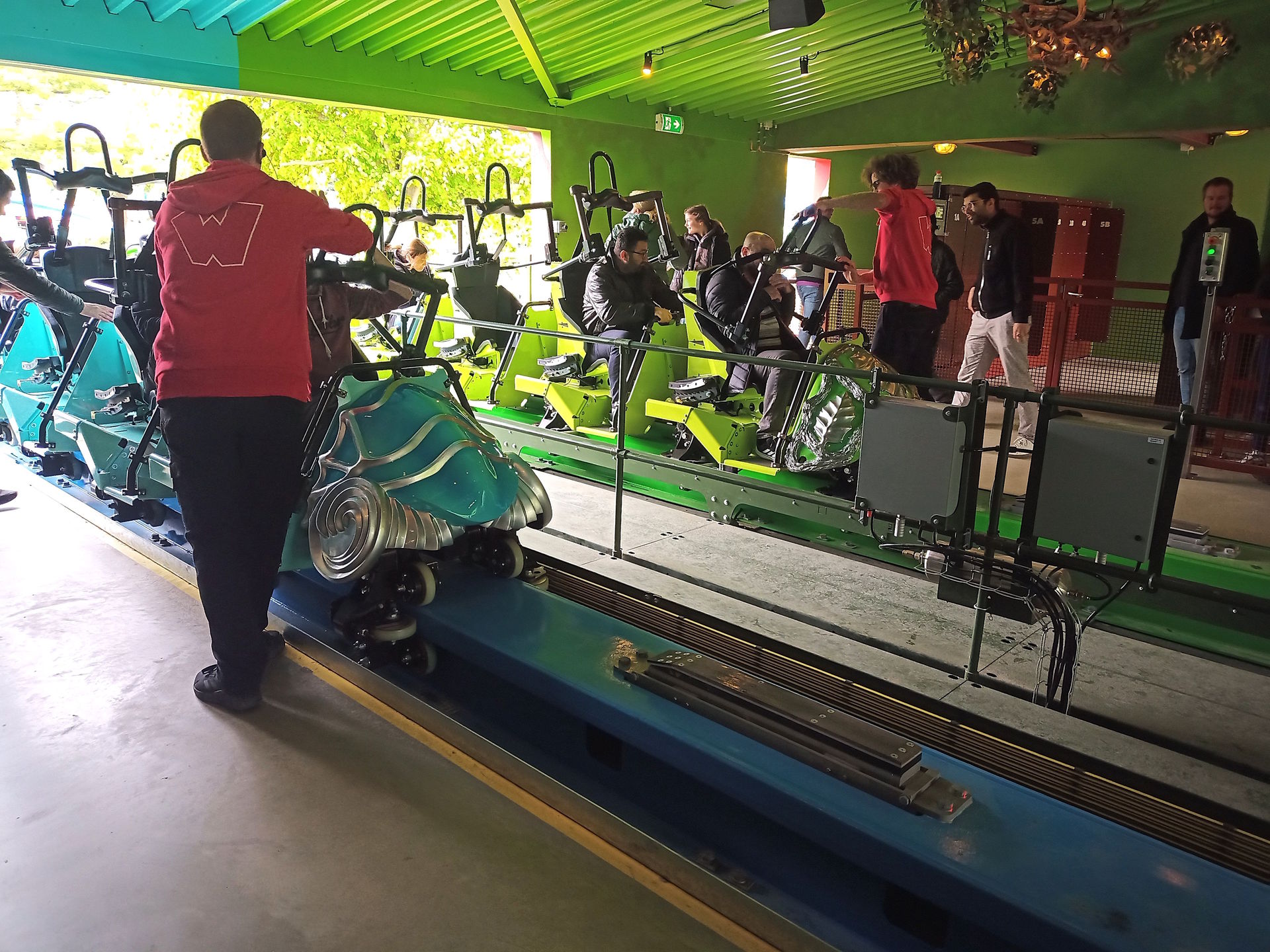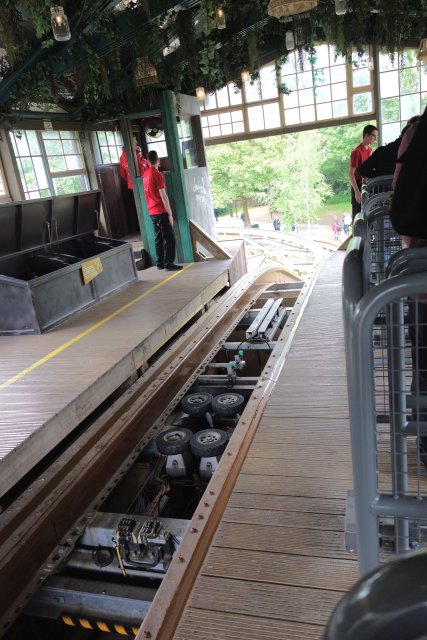 Ist der Fahrgastwechsel erfolgreich abgeschlossen, geht es mit einer Linkskurve zu den parallelen Lifthills.