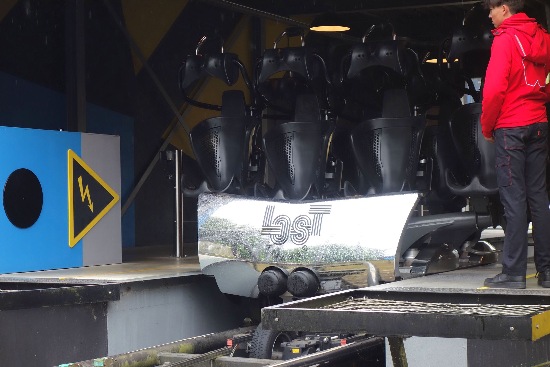 Doch am Eingang des doppelten Single Rail Coasters YOY bedauerte ein Mitarbeiter um 10:10 Uhr, dass die Bahn erst verspätet öffnen würde.