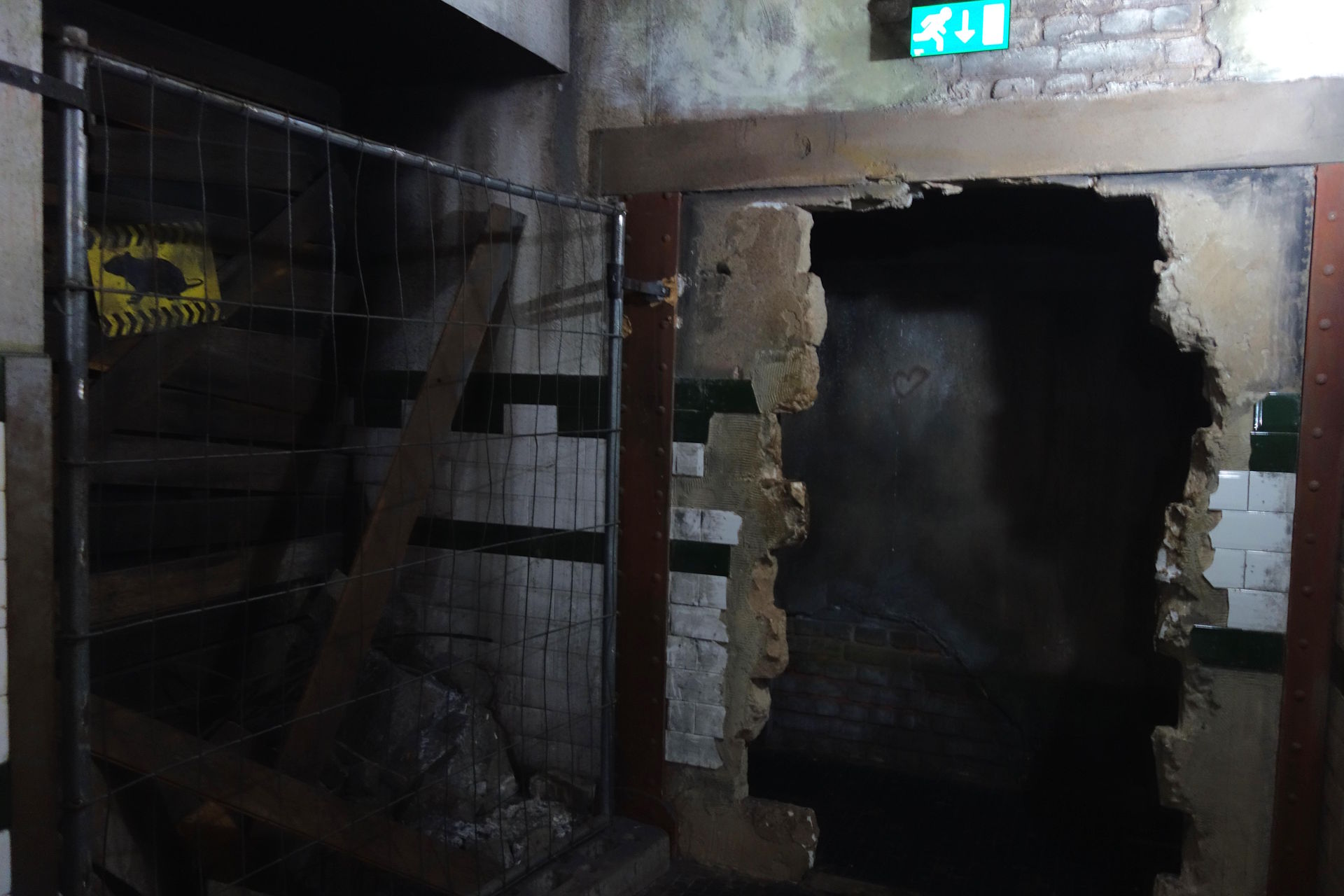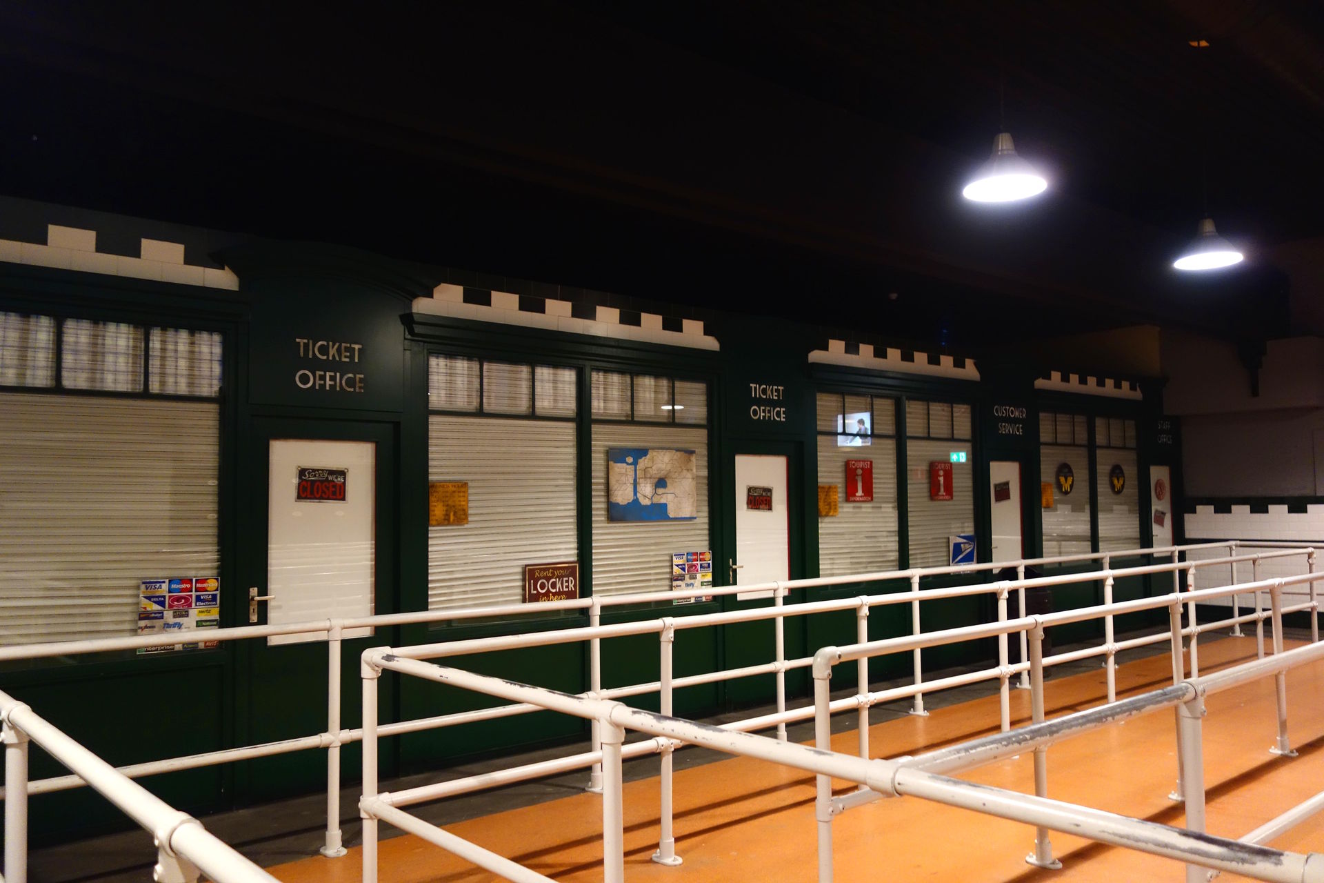 Zurück im Park wollten wir noch eine gemeinsame Runde mit Xpress drehen, ehe der normale Parkbesuch mit Goliath beschlossen werden sollte. Ich war kurz entsetzt, weil wir unmittelbar nach dem Treppenaufgang auf das Ende der Schlange stießen. Aber es stellte sich schnell heraus, dass der größere Raum des Wartebereichs mit den Ticketschaltern nun abgesperrt war und man nach dem kleineren, ersten Raum bereits direkt mit der Fast Lane vereinigt zum Maze-Teil eingelassen wurde. Trotzdem dauerte es natürlich einige Minuten, bis wir uns dem Einlass näherten. Und kaum hatten wir den letzten Teil des Zick-Zacks erreicht, informierte eine Lautsprecherdurchsage über Verzögerungen im U-Bahn-Betrieb. Es wurde wohl in Vorbereitung des Runs der zweite Zug eingeschleust, was leider ziemlich lange dauerte. Da wir natürlich auf jeden Fall noch Goliath fahren wollten, wurde der ein oder andere zwischenzeitlich etwas nervös, aber nach insgesamt rund 30 Minuten durften wir dann doch endlich die verwinkelten Gänge zur Platform 13 durchschreiten.