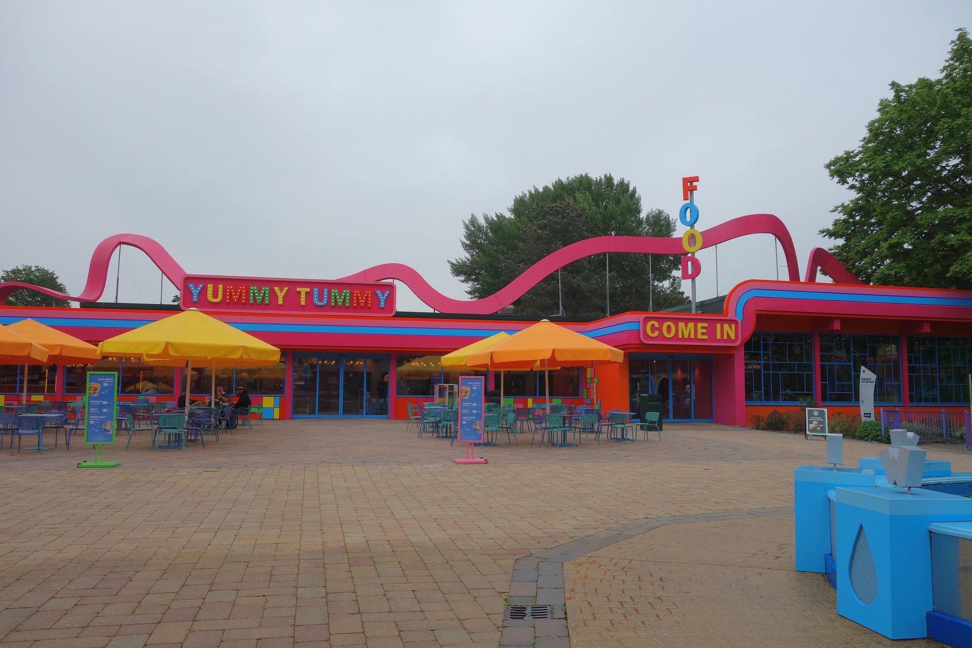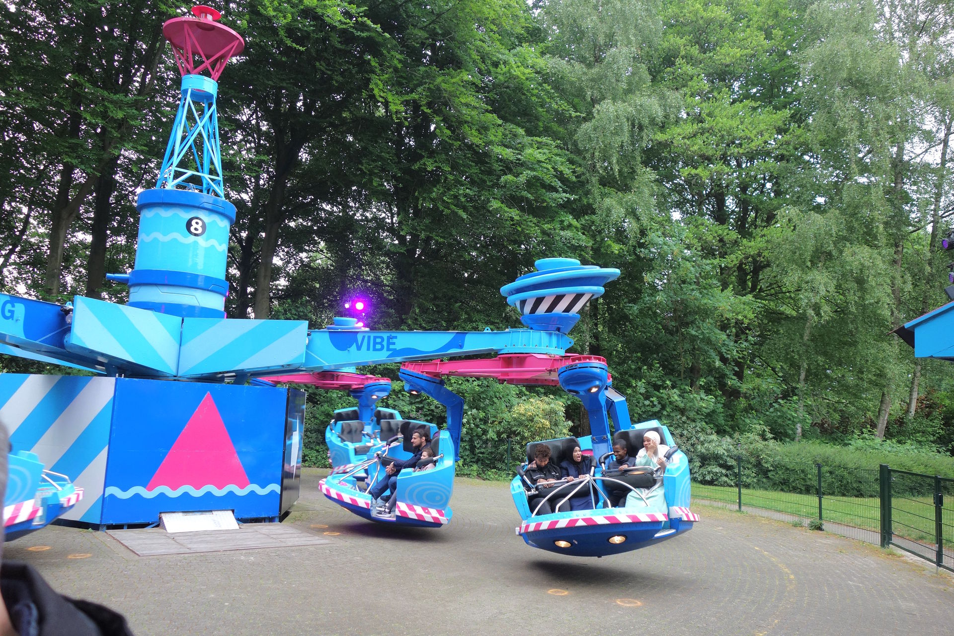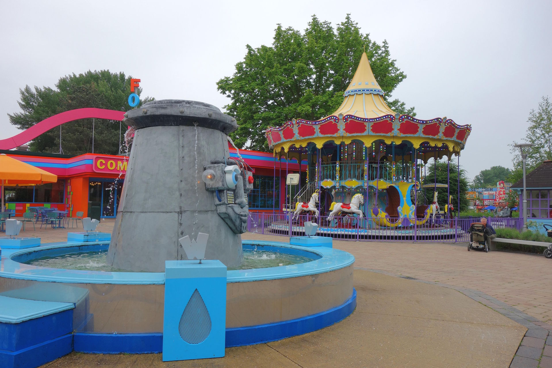 Daneben ein PlayFountain namens Cooldown und Zamperla Magic Bikes mit dem Namen Wind Seekers.