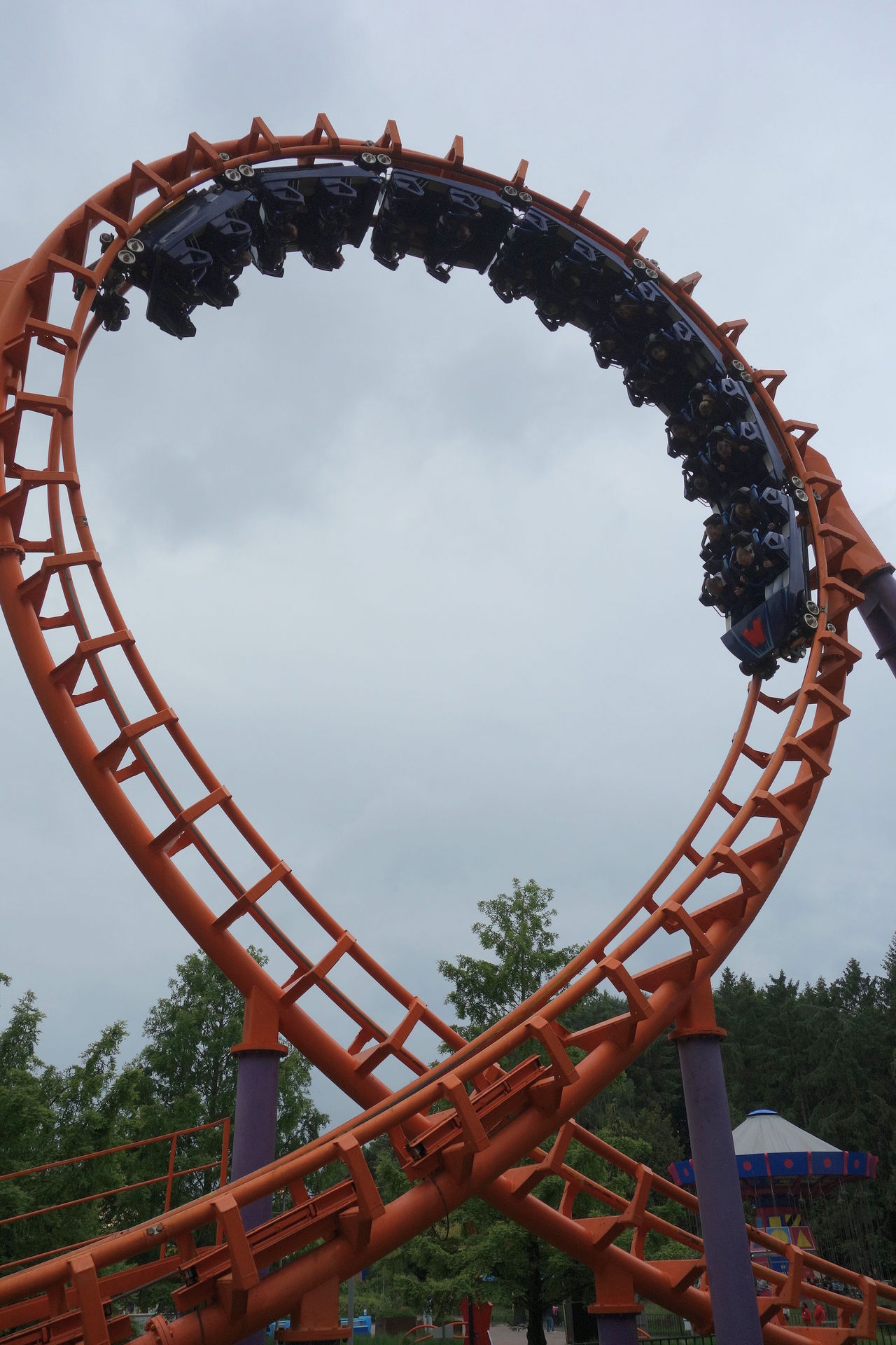 In einer weiten Linkskurve durchfährt der Zug zunächst eine aufwärts führende 270°-Rolle linksherum, verharrt dann kurz in dieser Neigung (also im Grunde 90° nach rechts geneigt) und rollt sich dann abwärts führend wieder 270° rechtsherum zurück. Ein wahnsinnig cooles Element, das vom Park natürlich als doppelte