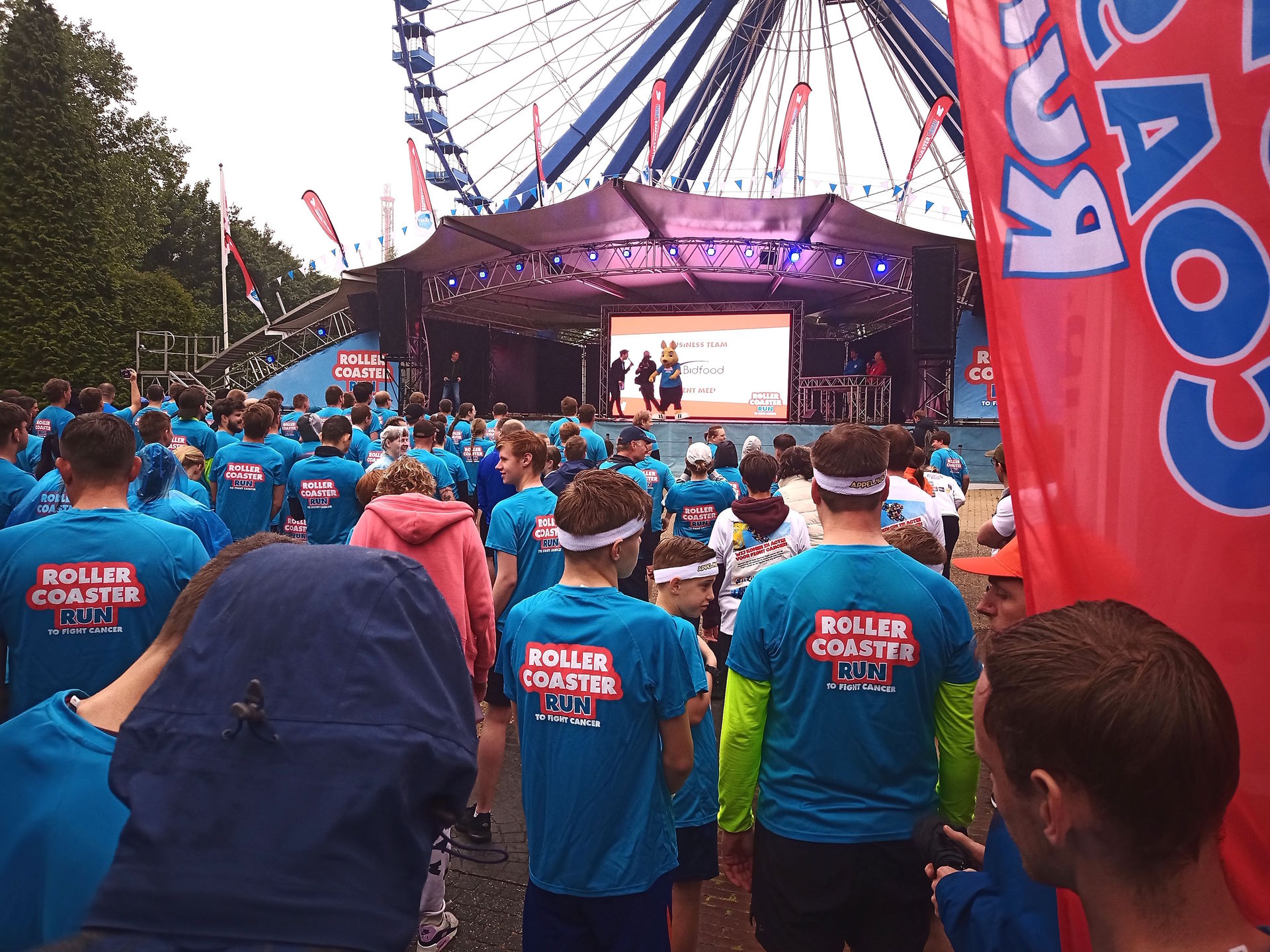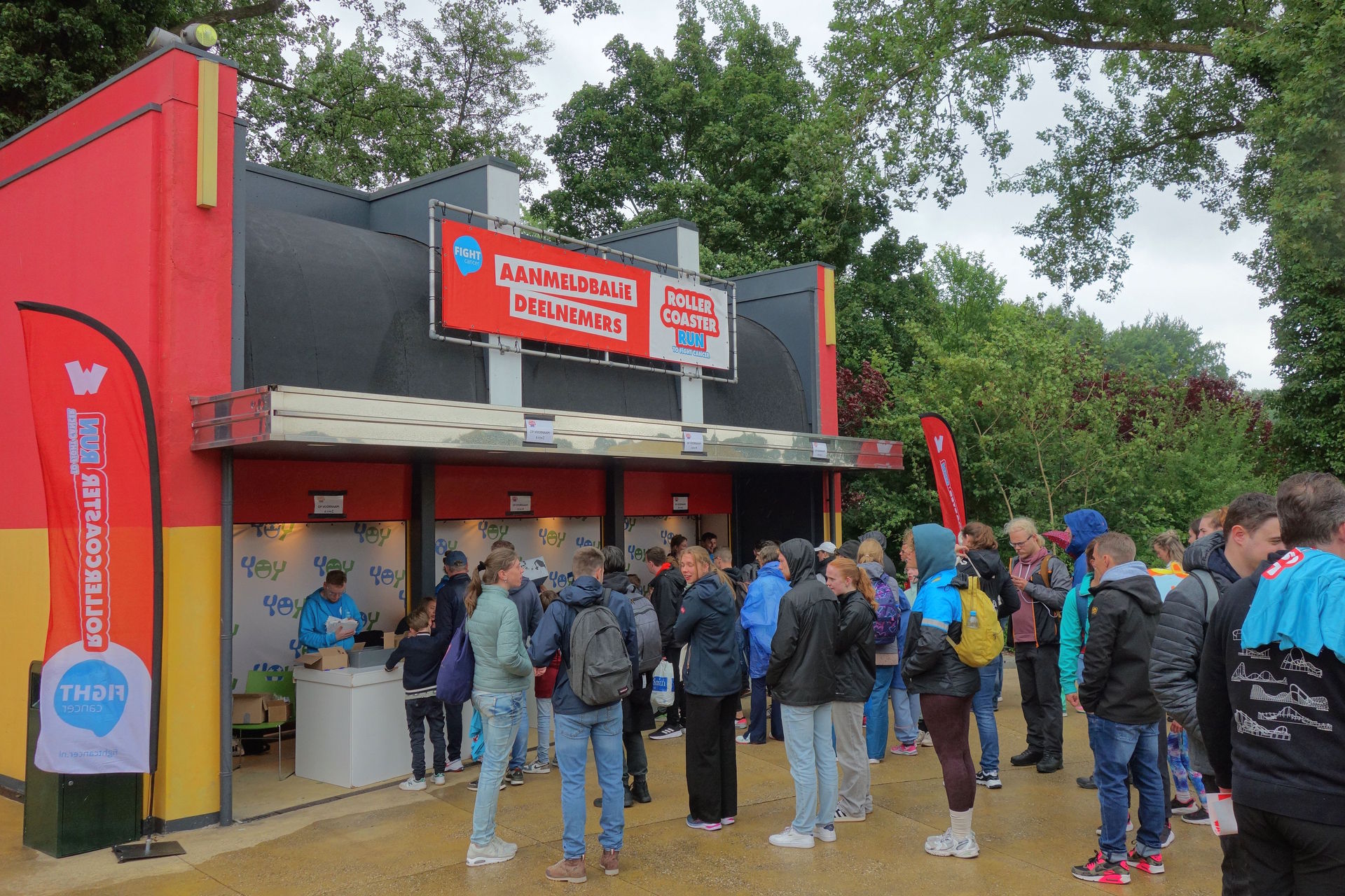Für alle, die noch nicht wissen, was es mit dem Rollercoaster Run auf sich hat, zunächst ein kurzer Exkurs: Im Jahr 1948 erhielt die damalige niederländische Königin Wilhelmina Helena Pauline Maria von Oranien-Nassau zu ihrem 50-jährigen Thronjubläum zwei Millionen Gulden - sie war zwar bereits 1890 mit dem Tod ihres Vaters Königin geworden, da sie aber erst 10 Jahre alt war, hatte zunächst ihre Mutter die Regentschaft übernommen, bis Wilhelmina 1898 volljährig und offiziell inthronisiert wurde. Den Betrag wollte sie dem Kampf gegen Krebs zur Verfügung stellen, sodass 1949 der Koningin Wilhelmina Fonds (kurz KWF) zur Verwaltung des Geldes gegründet wurde. Seither sammelt die Stiftung Spenden und unterstützt damit die Krebsforschung an Universitäten und anderen Forschungseinrichtungen. Das als Jugendlabel von KWF Kankerbestrijding gegründete Projekt Fight Cancer ist seit 2013 eine eigenständige Stiftung, die verschiedene Veranstaltungen organisiert, deren Ziel das Sammeln von Spenden zugunsten der Krebsforschung ist. So eben auch den Rollercoaster Run to Fight Cancer, der erstmals 2018 im Walibi Holland stattfand. Den zweiten Lauf gab es 2019, dann musste wegen Corona zwei Jahre pausiert werden, ehe es 2022 mit dem dritten Lauf weiterging. 2025 fand der Rollercoaster Run somit zum sechsten Mal statt.
