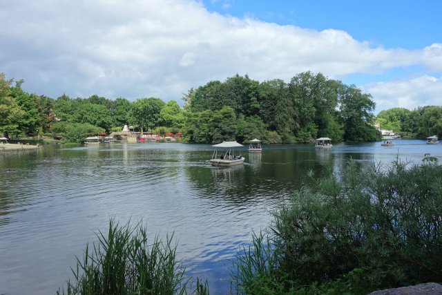 Obwohl der Park noch eine dreiviertel Stunde geöffnet war, herrschte dort schon eine leichte Feierabendstimmung. Die Queue war komplett leer, ich konnte bis zur Drehplattform der Station durchlaufen. Und auch die Boote waren allesamt komplett unbesetzt. Die Mitarbeiter nutzten diesen Umstand augenscheinlich, um schonmal klar Schiff zu machen, damit sie zum Parkschluss um 19 Uhr einfach nur noch zusperren müssten. Da hoffte ich schon fast, dass sie sich auch dran erinnern, mich noch auf die einsame Reise geschickt zu haben, und nicht vorzeitig die Bahn abschalten würden. Aber als ich ausstieg, kam tatsächlich nochmal eine Handvoll Fahrwilliger nach.